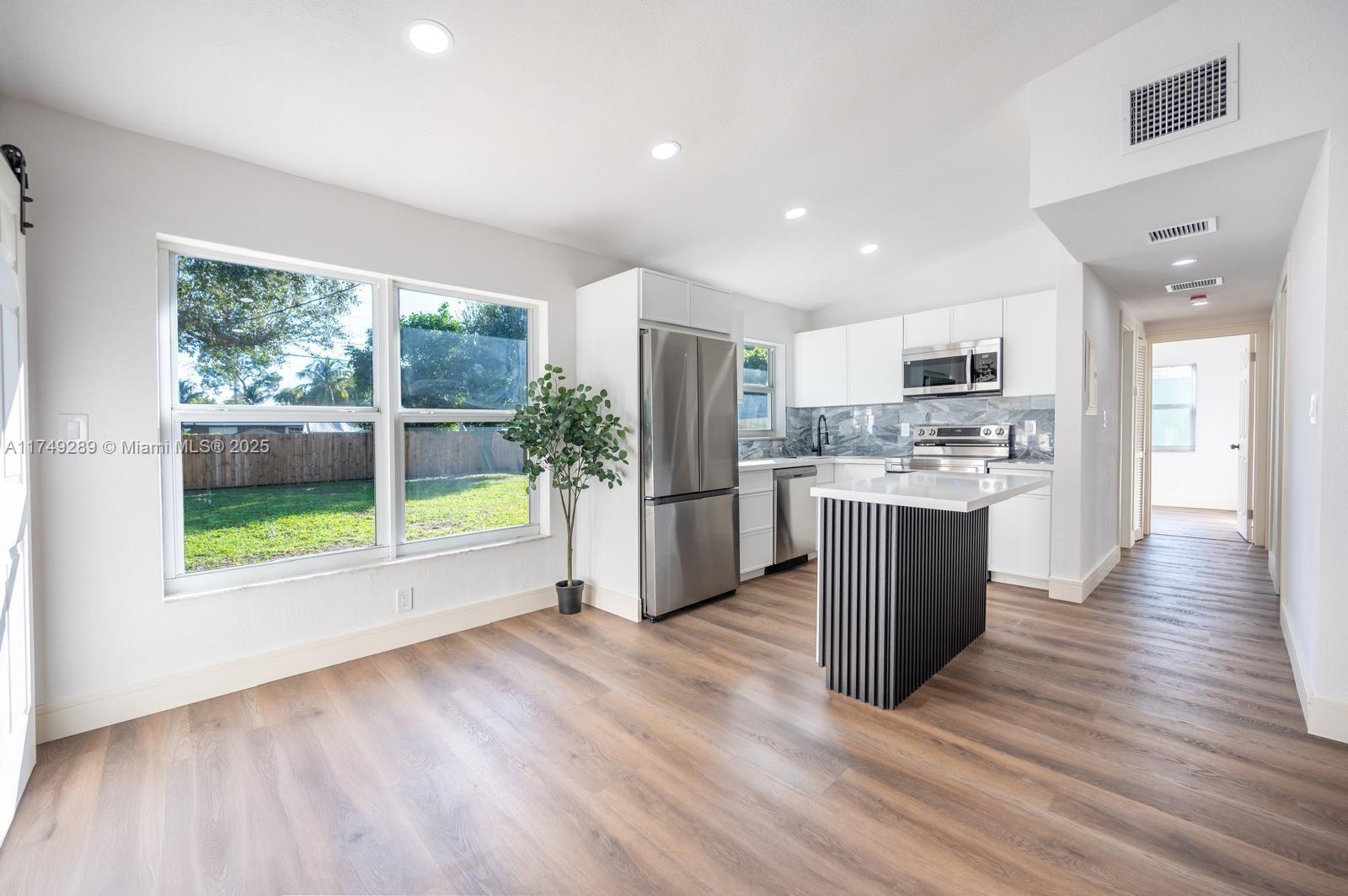 REDUCED! BEST PRICE ON AREA! Remodeled Super Nice 3 bedrooms 1 bath home. Inside, you’ll find modern laminate flooring, a stylish kitchen equipped with stainless steel appliances, granite countertops, and brand-new electric range, refrigerator, microwave, and dishwasher. A dedicated laundry/storage room adds extra convenience. Built with comfort and safety in mind, the home features impact-resistant doors and windows. The generous backyard provides ample space—perfect for adding a pool or creating your dream outdoor retreat. Located in a prime area of Fort Lauderdale with no HOA, this move-in HOME!