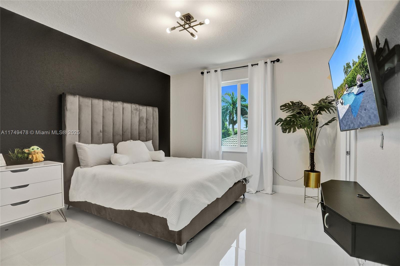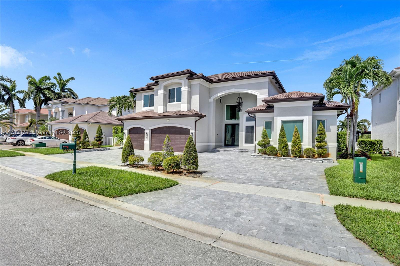 This exquisite 5-bedroom, 4-bathroom home boasts 4,512 square feet of luxurious living space and showcases meticulous renovations, including 48x48 porcelain tile, a spectacular custom kitchen equipped with top-of-the-line Dacor appliances, striking stone countertops, and sleek Italian cabinetry. The master bathroom is a serene retreat, featuring a Dual Wall-Mount Rainfall Shower and a Modern Smart Floor Mount Elongated Automatic Smart Bidet Toilet Seat. This smart home also features an Intelligent Motion Sensor LED Stairs, custom-made closets, and a picturesque pool that overlooks a tranquil canal in the prestigious Sunset Lakes community of West Miramar. Enjoy breathtaking sunsets and unparalleled upgrades in Miramar's finest community.