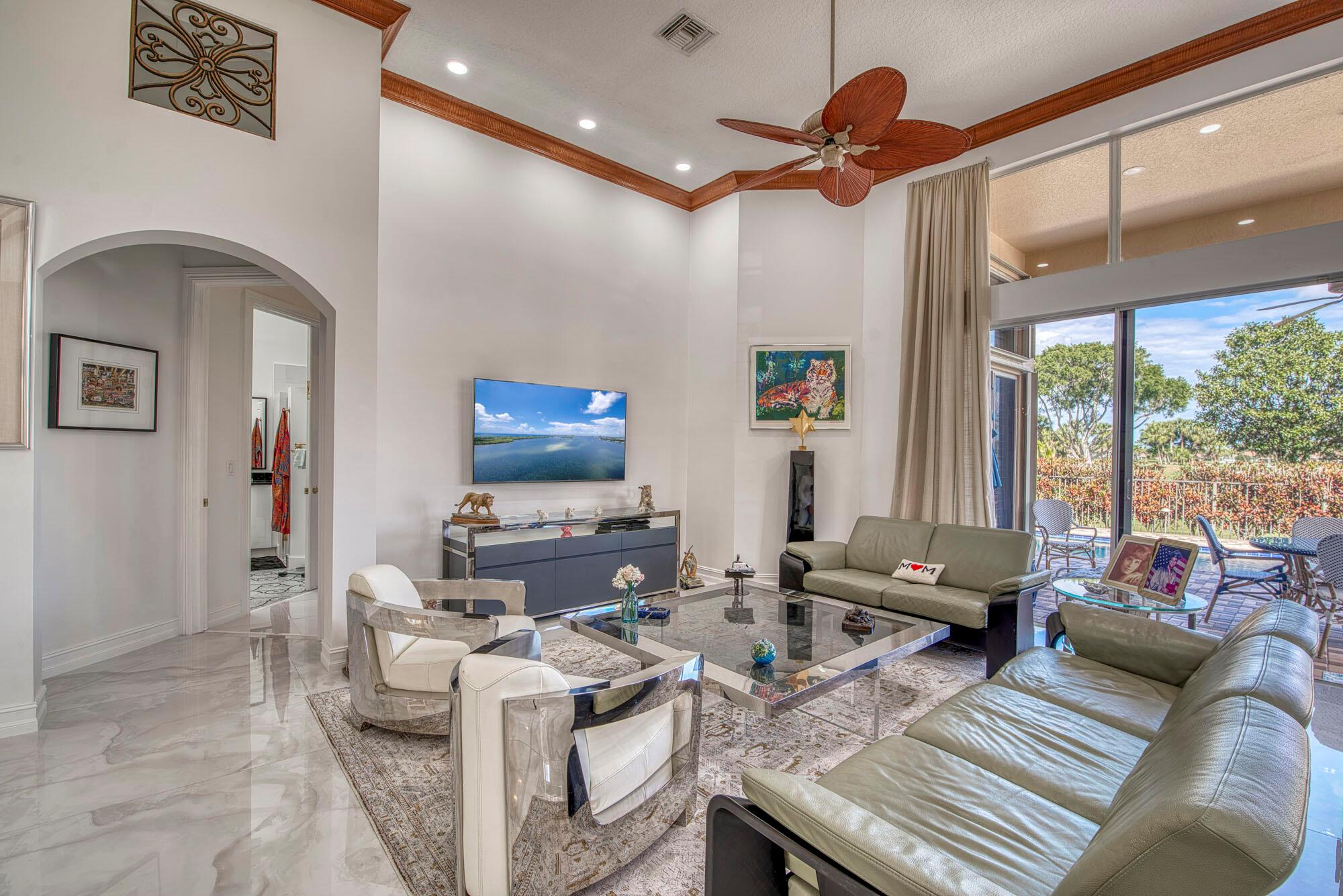 Discover the epitome of luxury living in this rarely available, fully updated, single-story pool home in Villagio, one of the most sought-after enclaves within the award-winning Country Club of Ibis. Just steps from the world-class clubhouse, this stunning former model home offers an unparalleled lifestyle with spectacular golf course views overlooking the first hole of the prestigious Tradition Golf Course. Designed for both elegance and comfort, this 3-bedroom, 3-bathroom residence also features an enclosed den and an open-concept floor plan, seamlessly blending indoor and outdoor living. Every inch of this home has been meticulously updated, boasting: custom crown moldings throughout the main rooms, coffered ceilings, new kitchen and bathrooms, new large porcelain tile throughout,