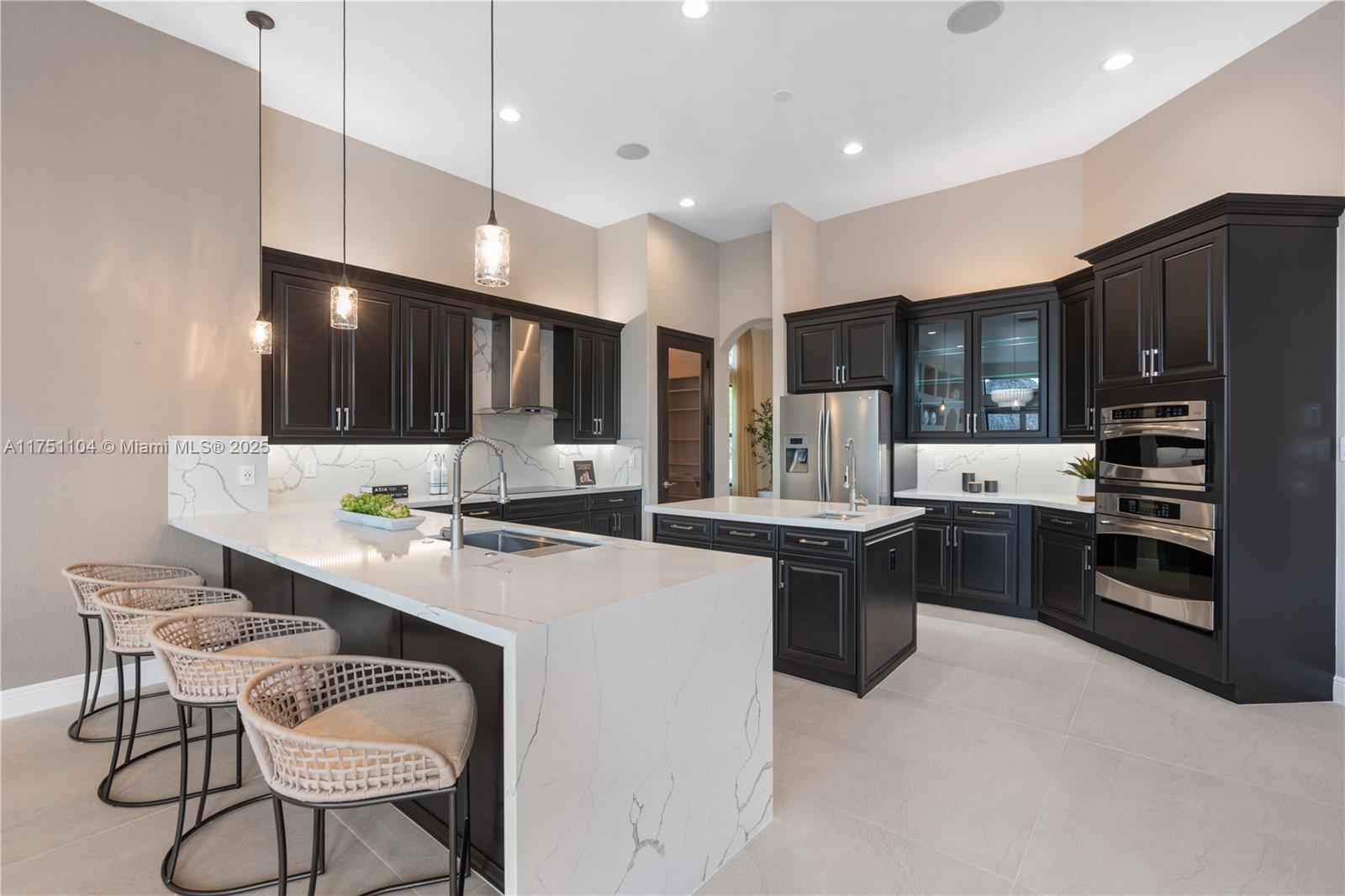 Welcome to an exquisite estate nestled within Davie's prestigious gated community of Riverstone! This renovated home sits on the lake, and consists of 5 bd's, an office, and media room (7 total). Stunning chefs kitchen, custom Italian flooring, custom primary closets, renovated bathrooms (including his/hers baths), and a perfect entertainment space outdoors with a pool, outdoor kitchen, and tiki hut! Impact windows/doors. Truly a gem in such a sought after community! TOP rated schools, close access to all major highways, shopping, grocery stores and dining, as well as a well maintained community. Community amenities include tennis, basketball and pickleball courts, in addition to pavilion & playgrounds for kids. Easy to show! Call listing agent for all questions!