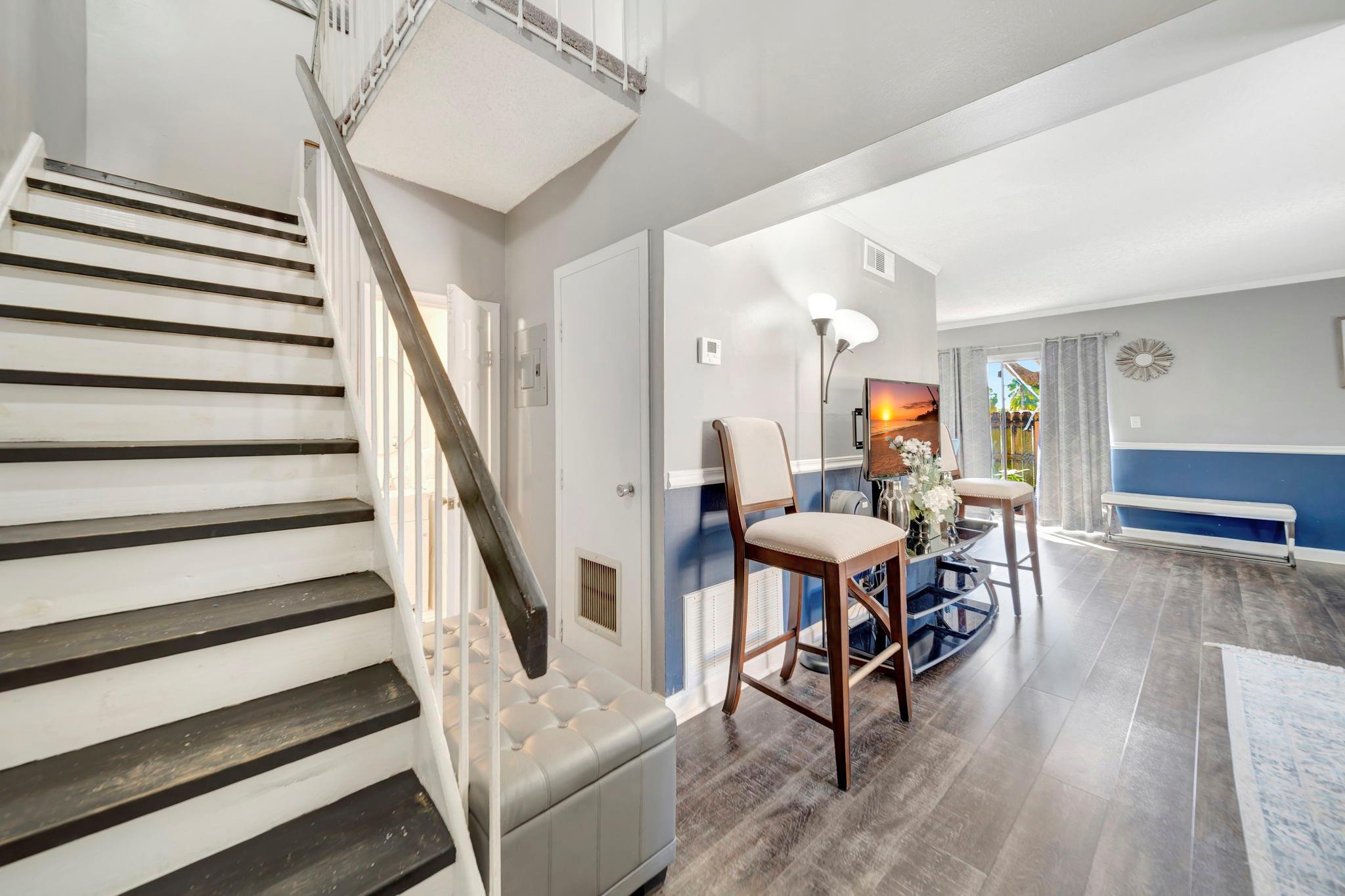 WATERVIEW & LAKEFRONT 2 Story TOWNHOUSE CONDO with 1 CAR GARAGE, 2 Bed, 1.5 Bath, PLUS Bonus Space (6 x 8) in Garage along with Private Fenced Patio. Washer/Dryer in Garage. 1 Assigned Parking Spot, Garage & Ample Guest Parking. Volume Ceilings, Primary Bed includes Walk-In Closet, 2024 Roof, Shutters, Equipped with Gas Appliances (Stove, Dryer and W/H). A/C is 2008 and H/W is 2021. Upstairs: 2 Bedrooms & 1 Bathroom. Community amenities include lake, playground, tennis, pool & clubhouse. Condo Fees of $300 per month include: building insurance, pool, tennis, playground. Note: Financing Loan Options include: VA approved, FHA & Conventional. Buyers will only need H06 or "walls-in" insurance policy, which is approx. $1500 to $2000 per year.