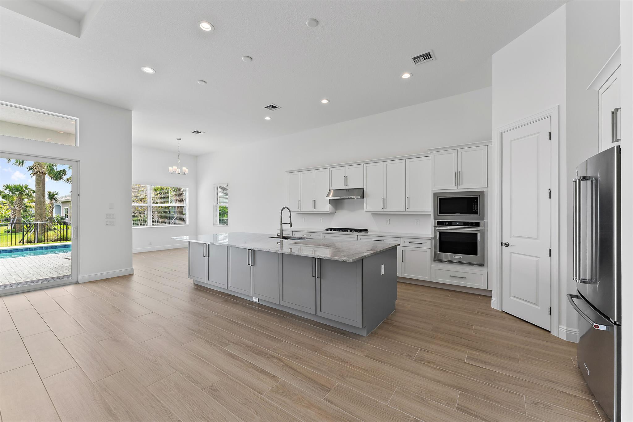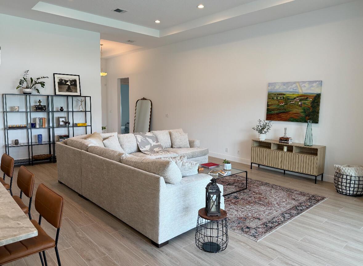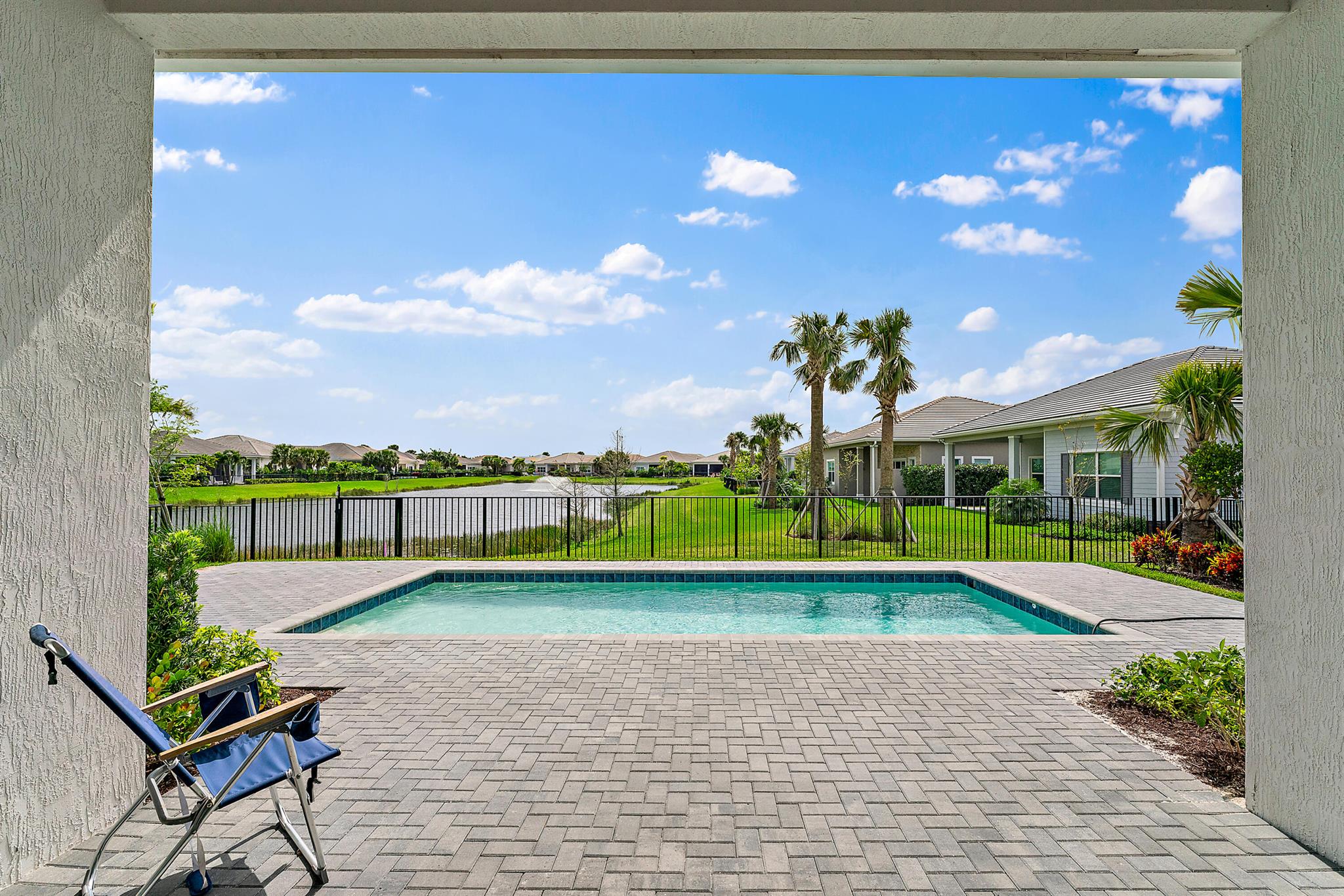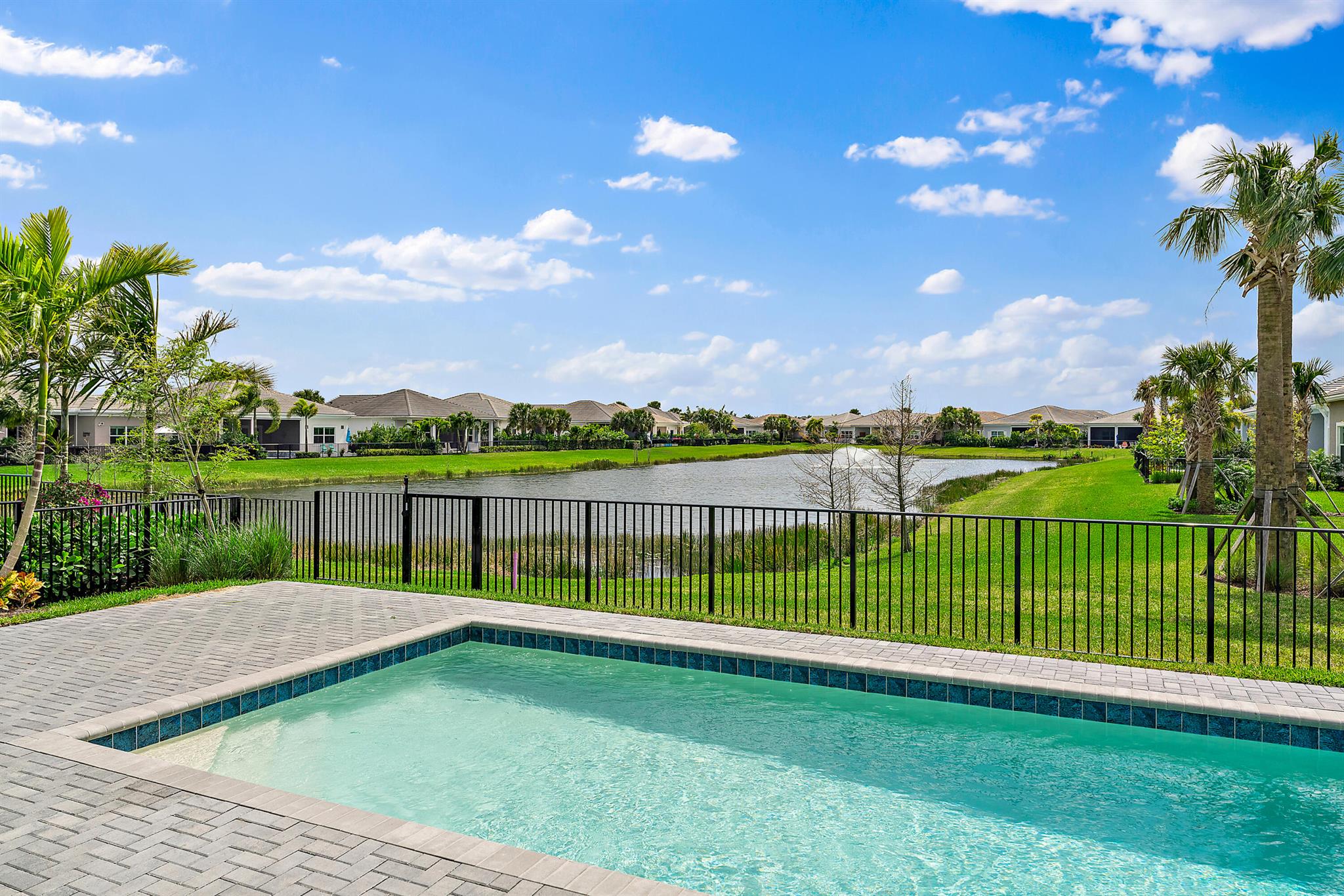Welcome to this incredible opportunity to purchase a BRAND NEW HOME WITH OUT all the waiting time for a new build. Move in ready and NEVER LIVED IN 4 bedroom 3 full bath with on beautiful lot with BREATHTAKING long Lake views in the exclusive community of REGENCY AT AVENIR. GATED 55 plus neighborhood with an incredible private clubhouse offering a lifestyle dreams are made of. Resort style amenities including golf simulator, fitness center, pickle ball, tennis, firepit, card rooms, and art room all in a tropical resort setting. The Salerno model offers an open floor plan featuring a gorgeous kitchen with huge center island, dining nook, beautiful primary suite, inviting foyer and side load garage. Custom pool and patio overlooking lake with long unobstructed view
