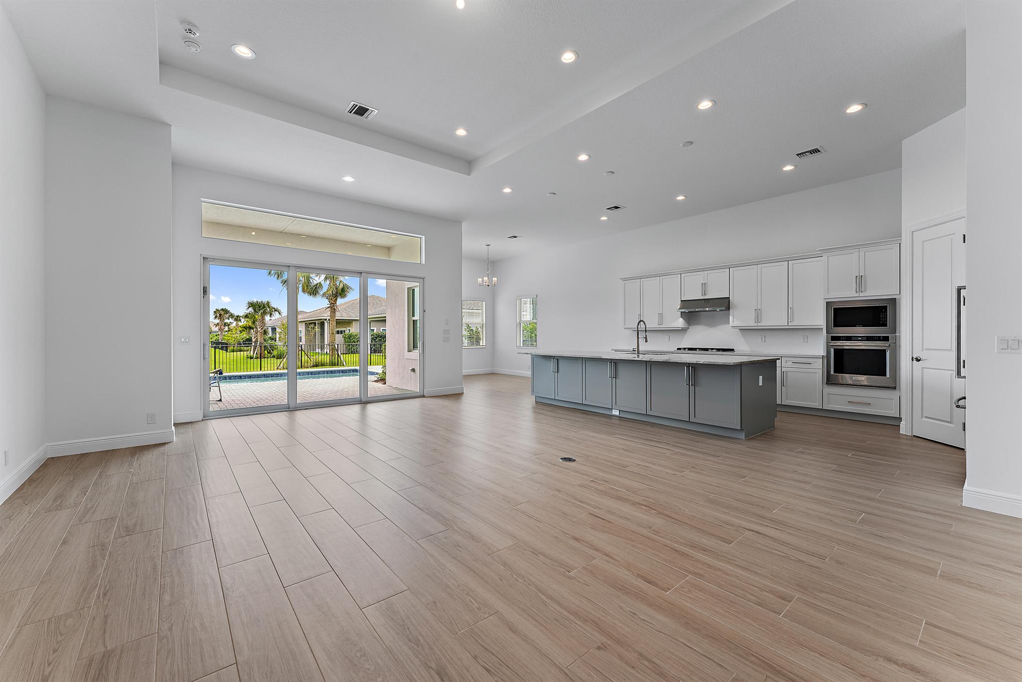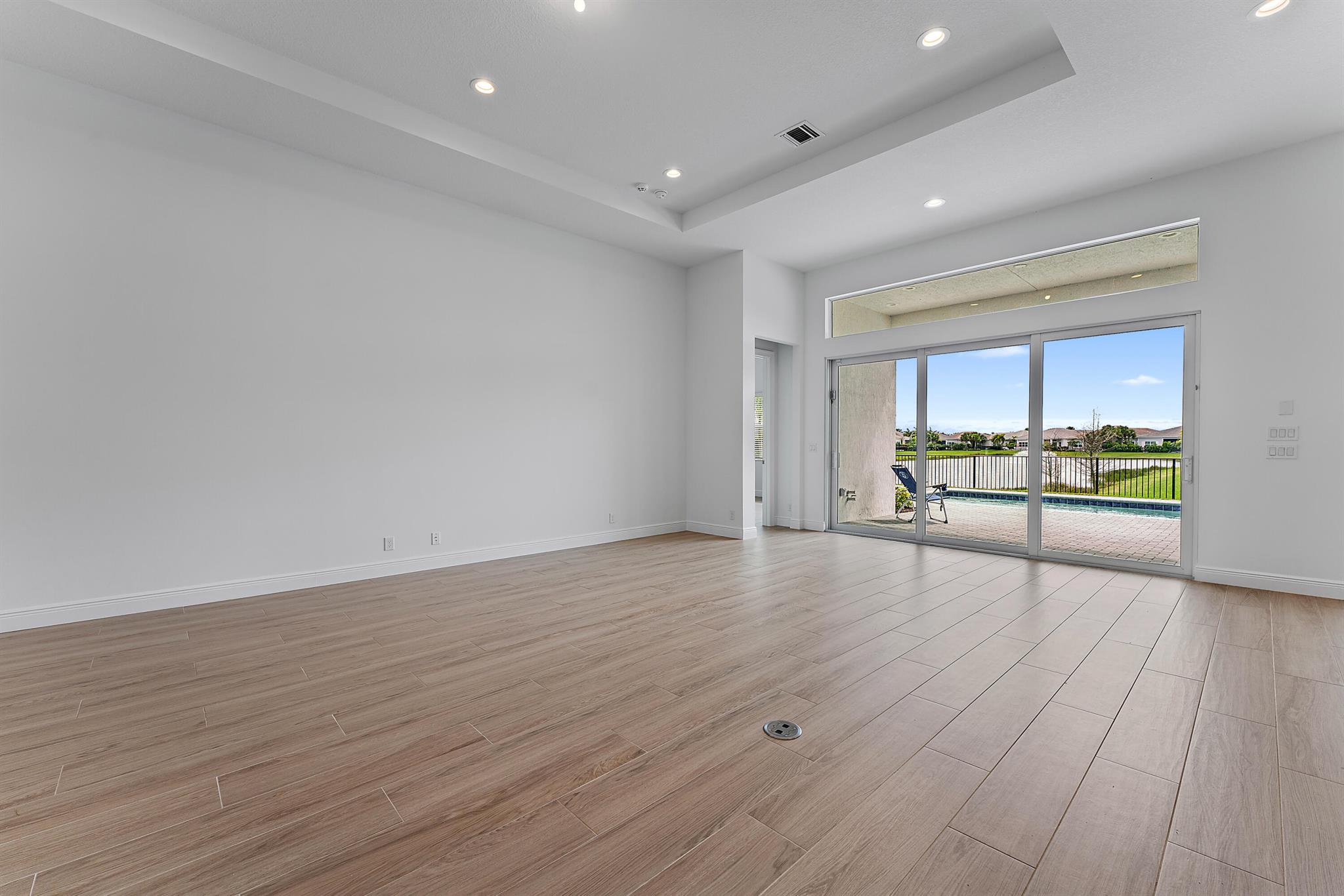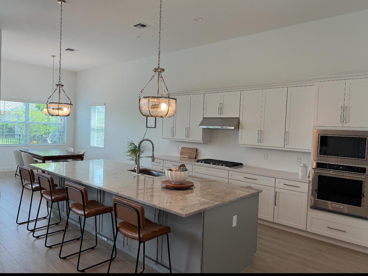 Welcome to this incredible opportunity to purchase a BRAND NEW HOME WITH OUT all the waiting time for a new build. Move in ready and NEVER LIVED IN 4 bedroom 3 full bath with on beautiful lot with BREATHTAKING long Lake views in the exclusive community of REGENCY AT AVENIR. GATED 55 plus neighborhood with an incredible private clubhouse offering a lifestyle dreams are made of. Resort style amenities including golf simulator, fitness center, pickle ball, tennis, firepit, card rooms, and art room all in a tropical resort setting. The Salerno model offers an open floor plan featuring a gorgeous kitchen with huge center island, dining nook, beautiful primary suite, inviting foyer and side load garage. Custom pool and patio overlooking lake with long unobstructed view