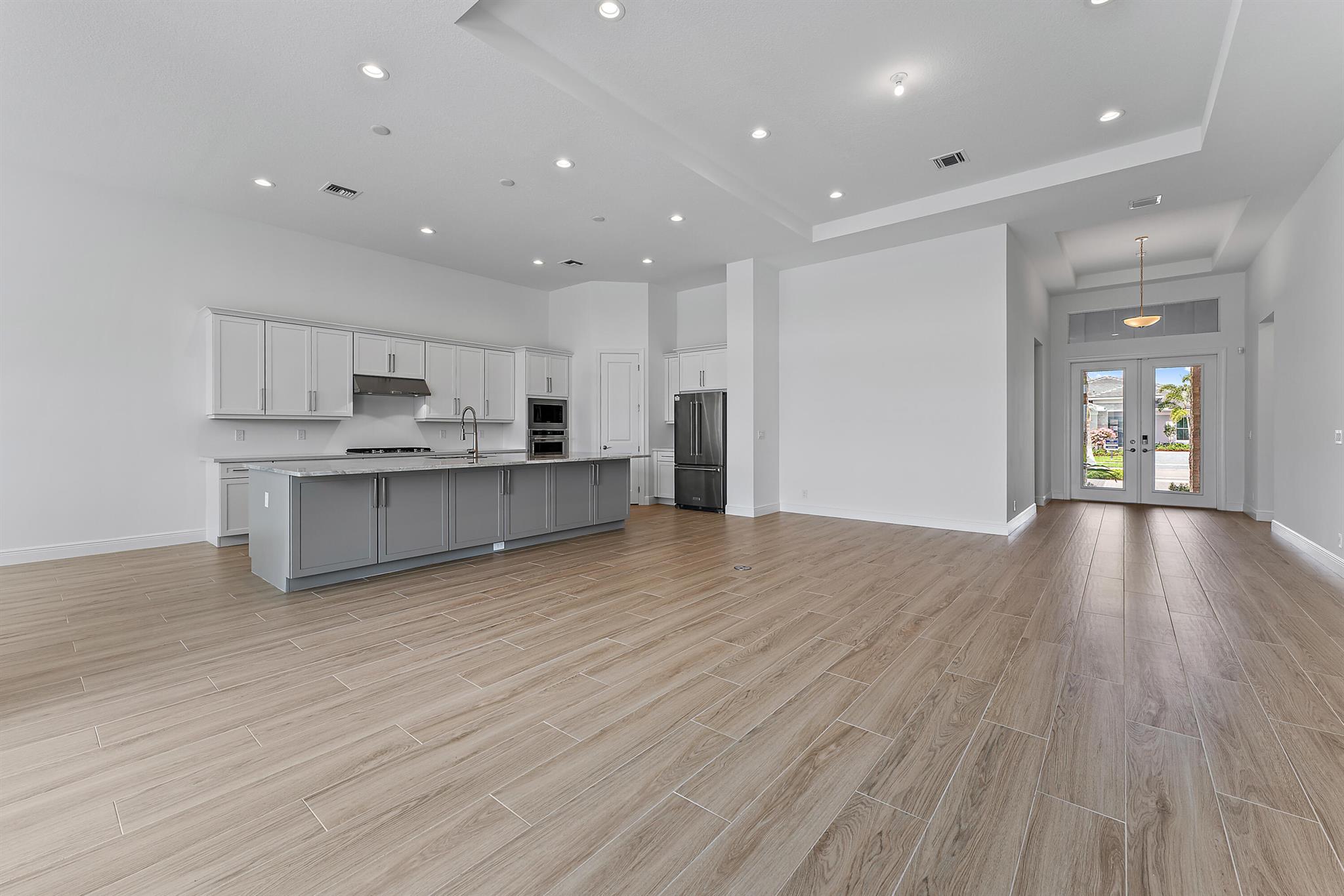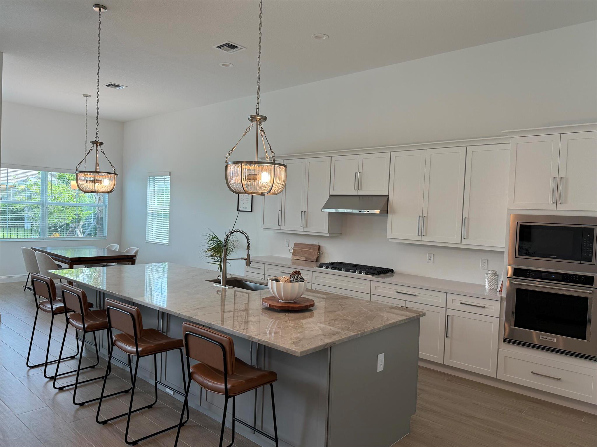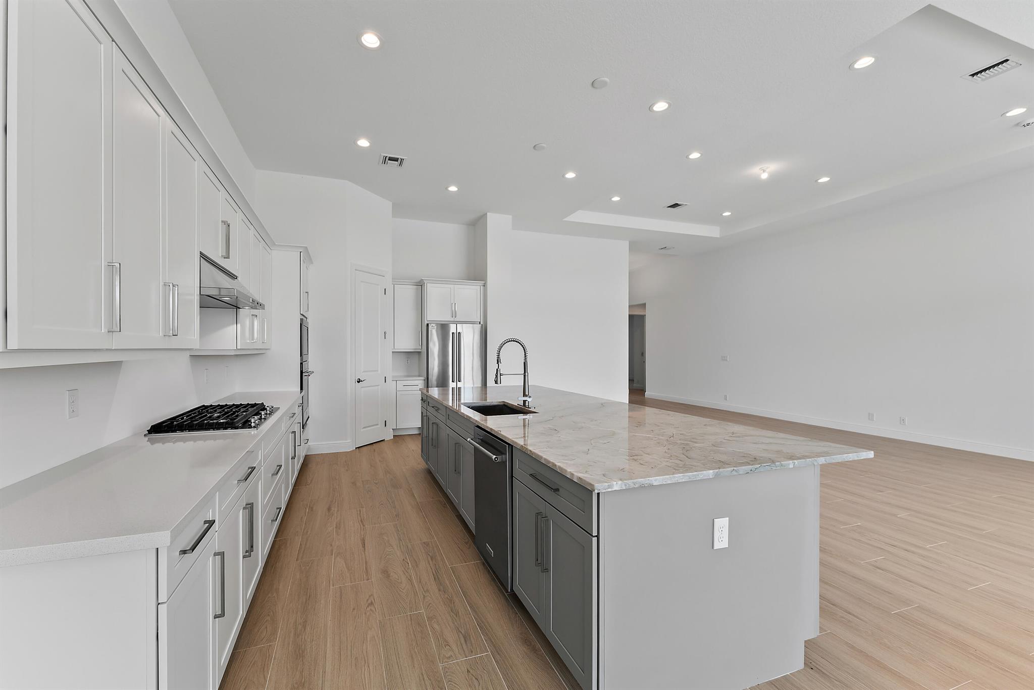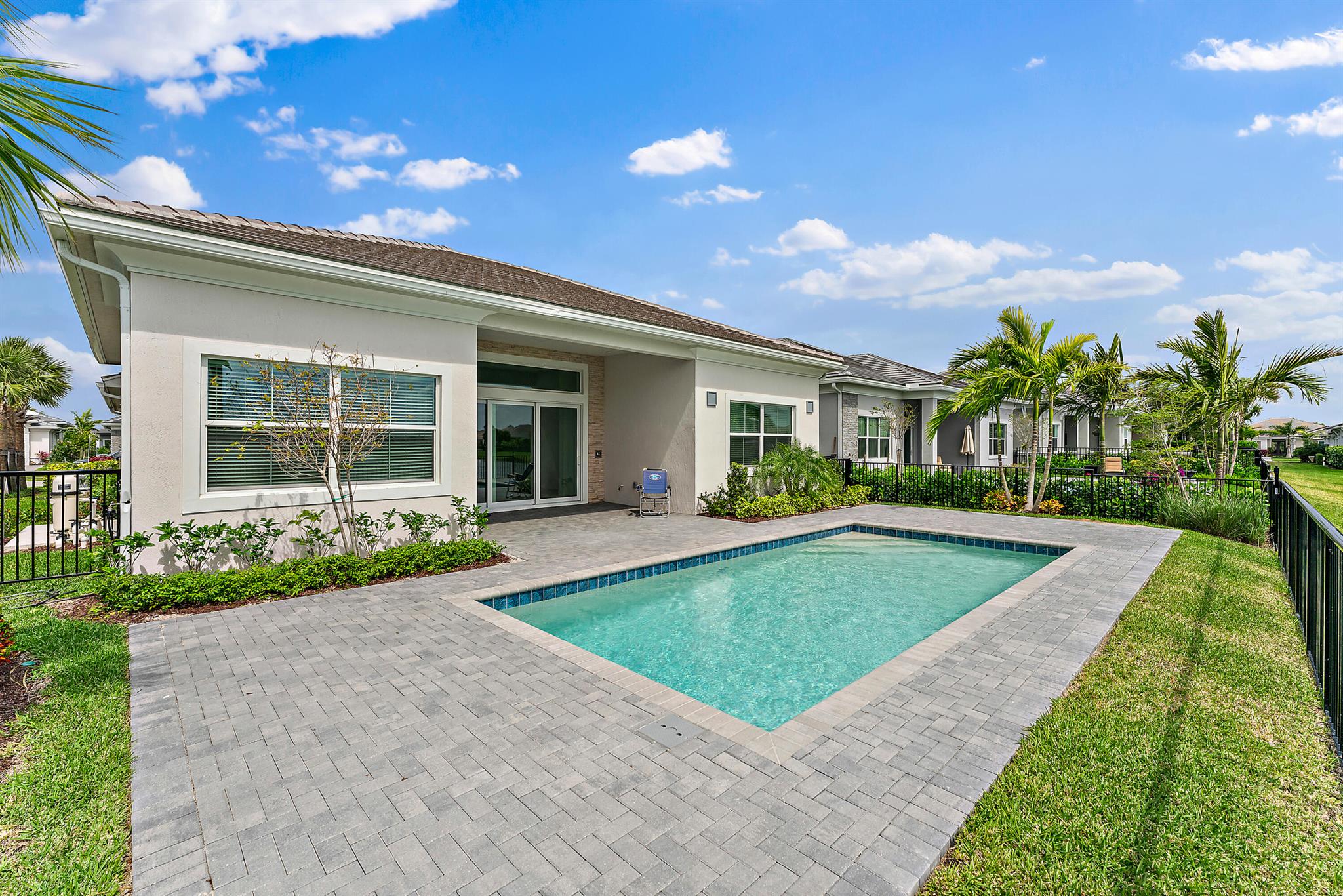 Welcome to this incredible opportunity to purchase a BRAND NEW HOME WITH OUT all the waiting time for a new build. Move in ready and NEVER LIVED IN 4 bedroom 3 full bath with on beautiful lot with BREATHTAKING long Lake views in the exclusive community of REGENCY AT AVENIR. GATED 55 plus neighborhood with an incredible private clubhouse offering a lifestyle dreams are made of. Resort style amenities including golf simulator, fitness center, pickle ball, tennis, firepit, card rooms, and art room all in a tropical resort setting. The Salerno model offers an open floor plan featuring a gorgeous kitchen with huge center island, dining nook, beautiful primary suite, inviting foyer and side load garage. Custom pool and patio overlooking lake with long unobstructed view