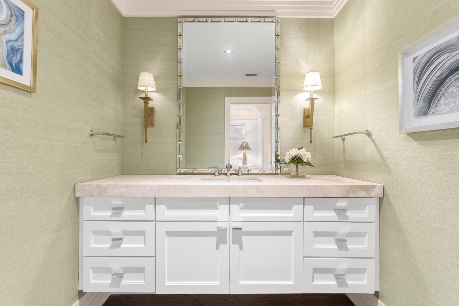 Located on a quiet street in Palm Beach's North End, this modern beach house offers 3,803+/- total square feet with four bedrooms and four and a half bathrooms. Set on a 12,206+/- square foot lot, the property features a large pool, spacious yard, and an air-conditioned two-car garage.The interior blends comfort and coastal style, with wood flooring throughout the main living areas and marble finishes in the bathrooms. The living room opens through sliding glass doors to the pool and patio area, creating a natural flow between indoor and outdoor spaces. The kitchen includes a breakfast area, full-size Sub-Zero refrigerator and freezer, double ovens, and an electric cooktop. The adjacent dining room overlooks the lushly landscaped grounds.