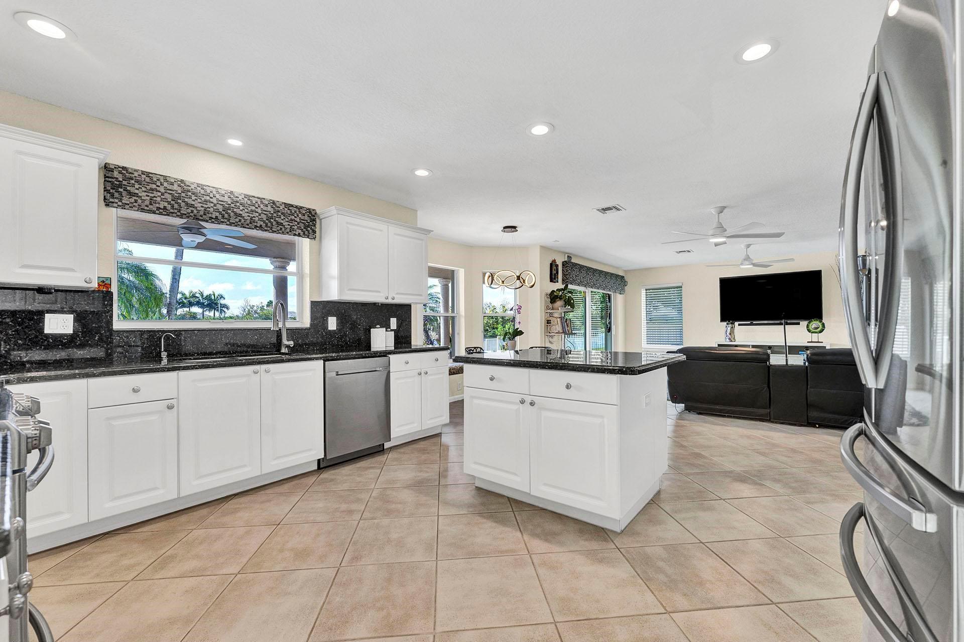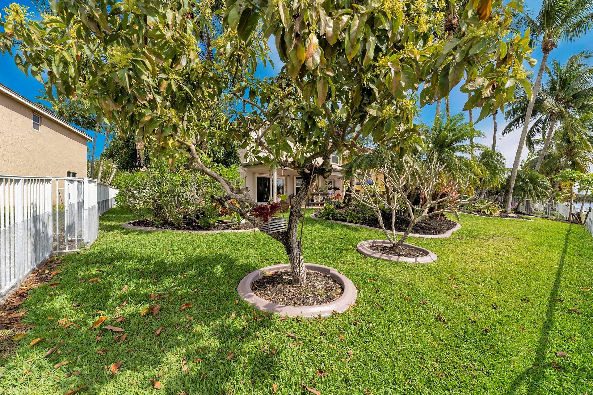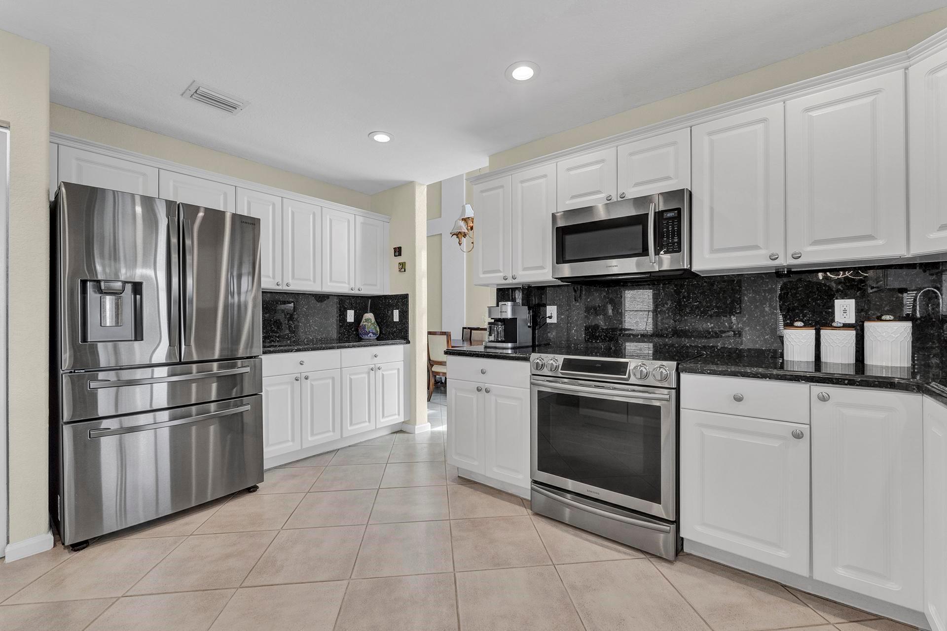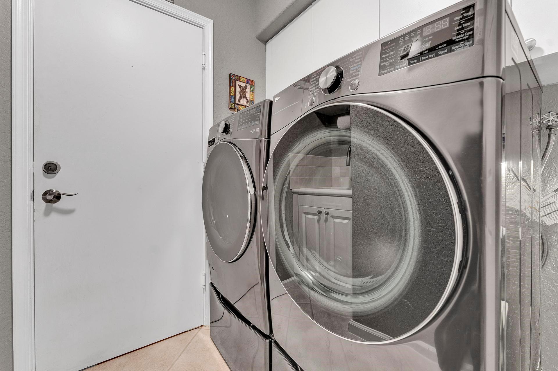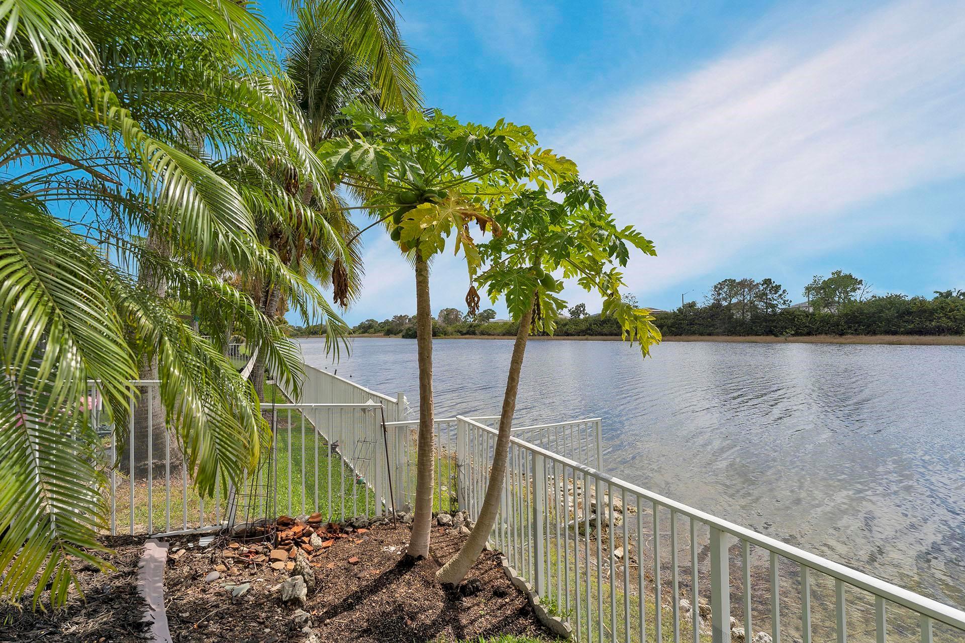 Enter this beautiful home & find high ceilings, ceramic tile floors throughout, & beautiful natural light! Large kitchen features granite counters, white cabinets, stainless steel appliances including 2023 refrigerator, & oversized pantry! Relax in this ideal backyard! Salt water pool (new pool pump) overlooks lake w no neighbors visible across. Avocado, papaya, mango, coconut & orange trees! Large covered patio! Fully fenced yard! Self watering bowl for furry friends! New irrigation pump & system uses water from lake! 1 bedroom 1 updated full bath on 1st floor. Primary bedroom features sitting area, 2 walk in closets, ensuite bath w shower and tub! Loft/bonus area upstairs. Two 2021 Trane ACs w UV lights, WH=2023, W/D 2023, & exterior just painted! HOA includes cable, trash, & internet!