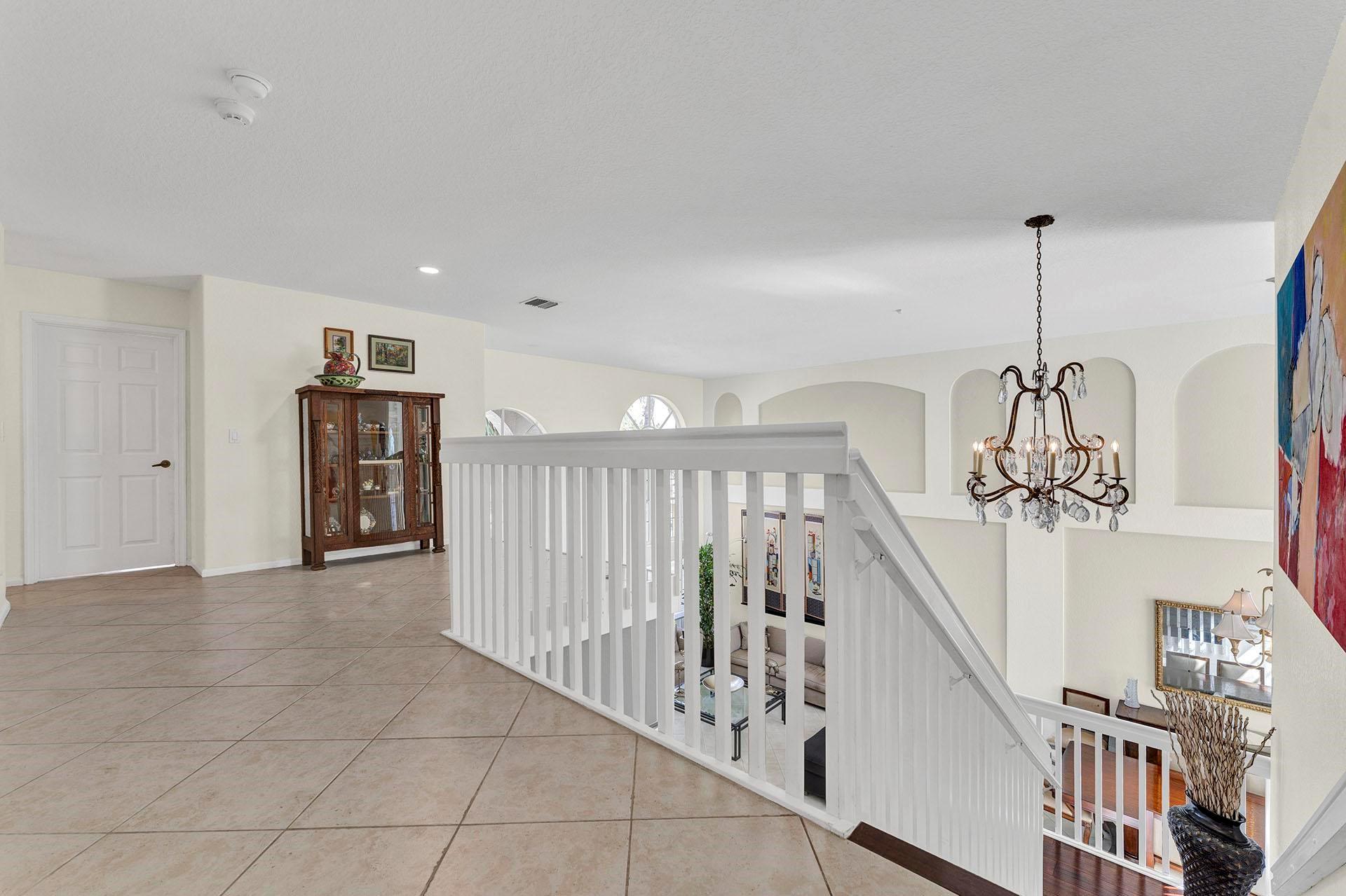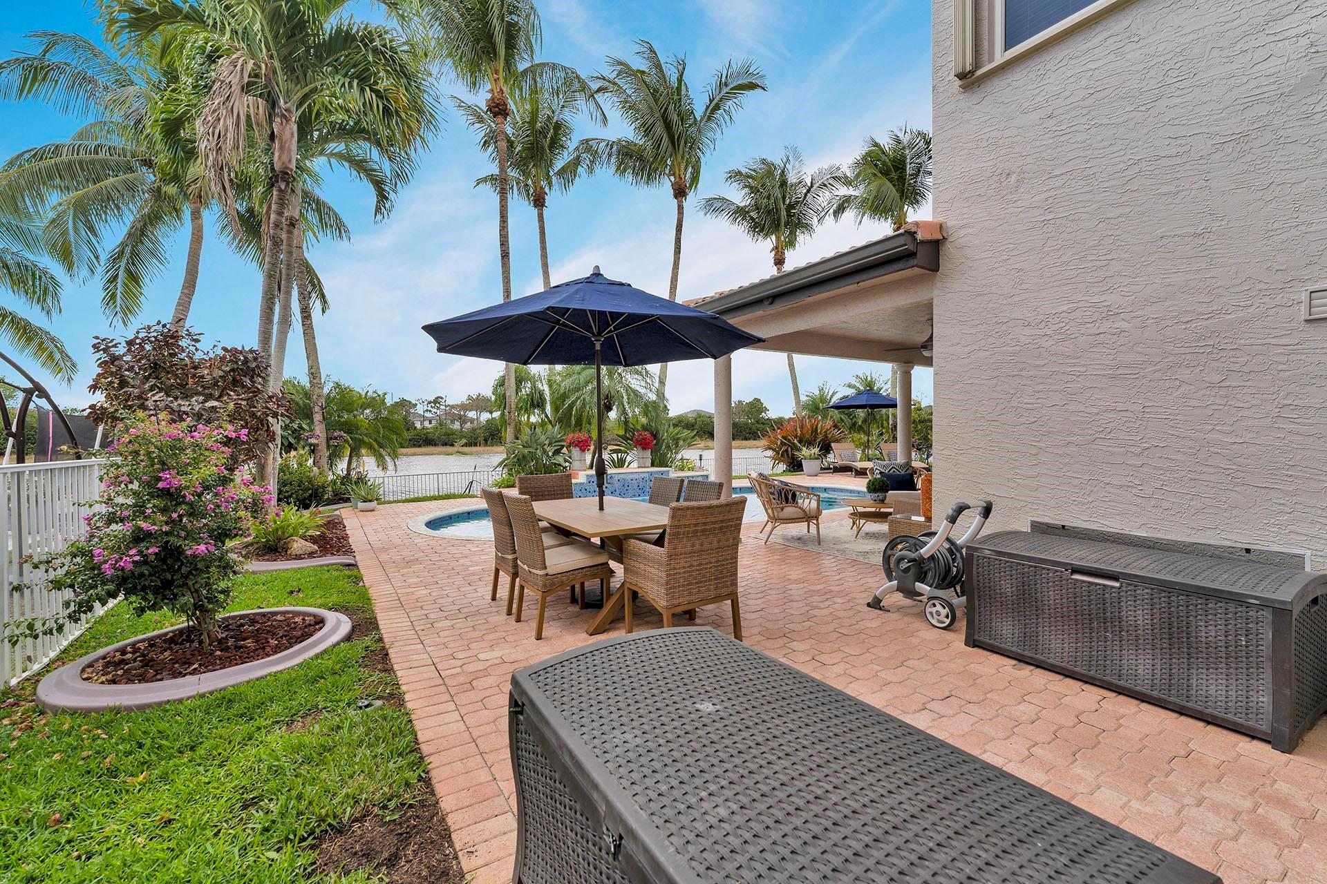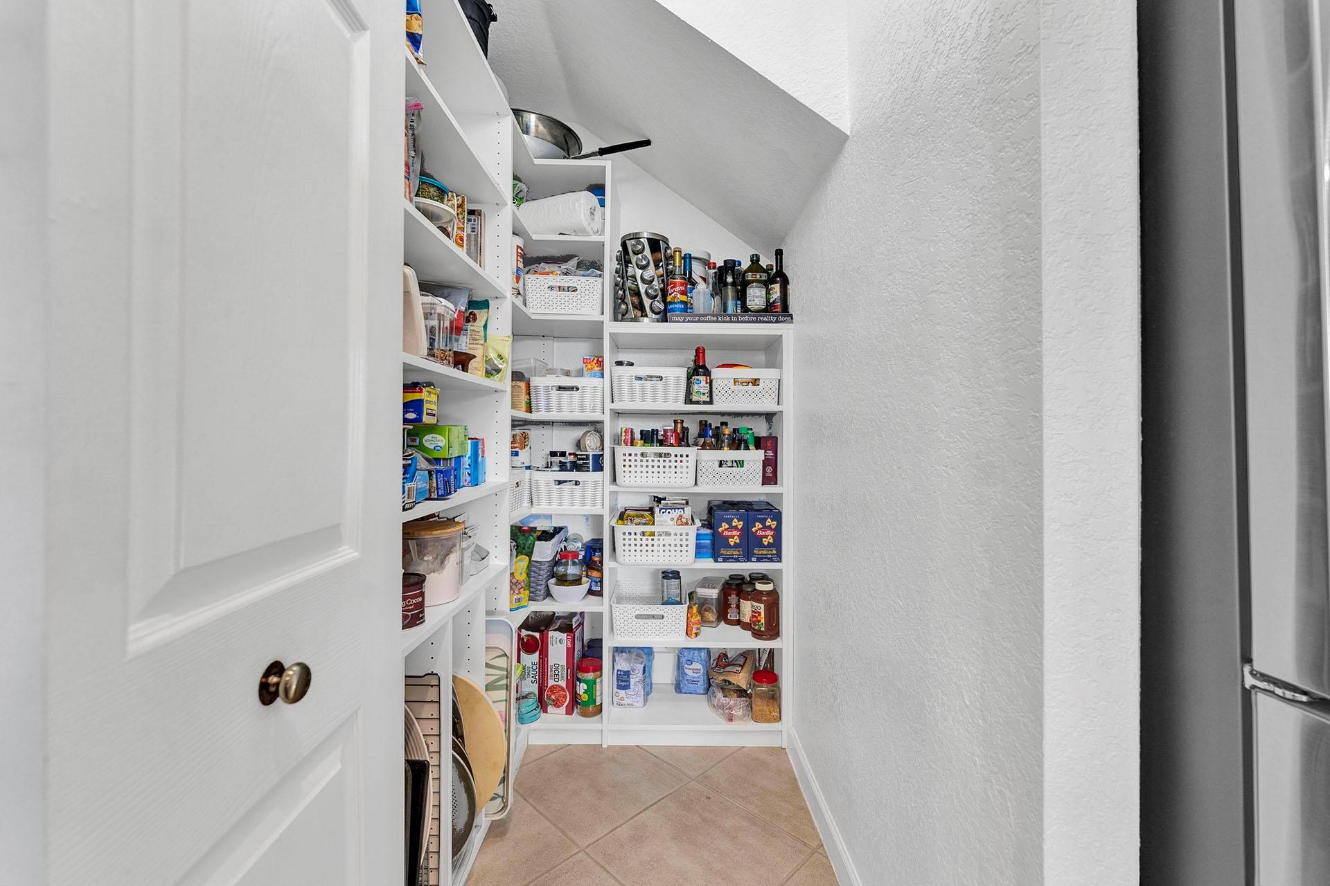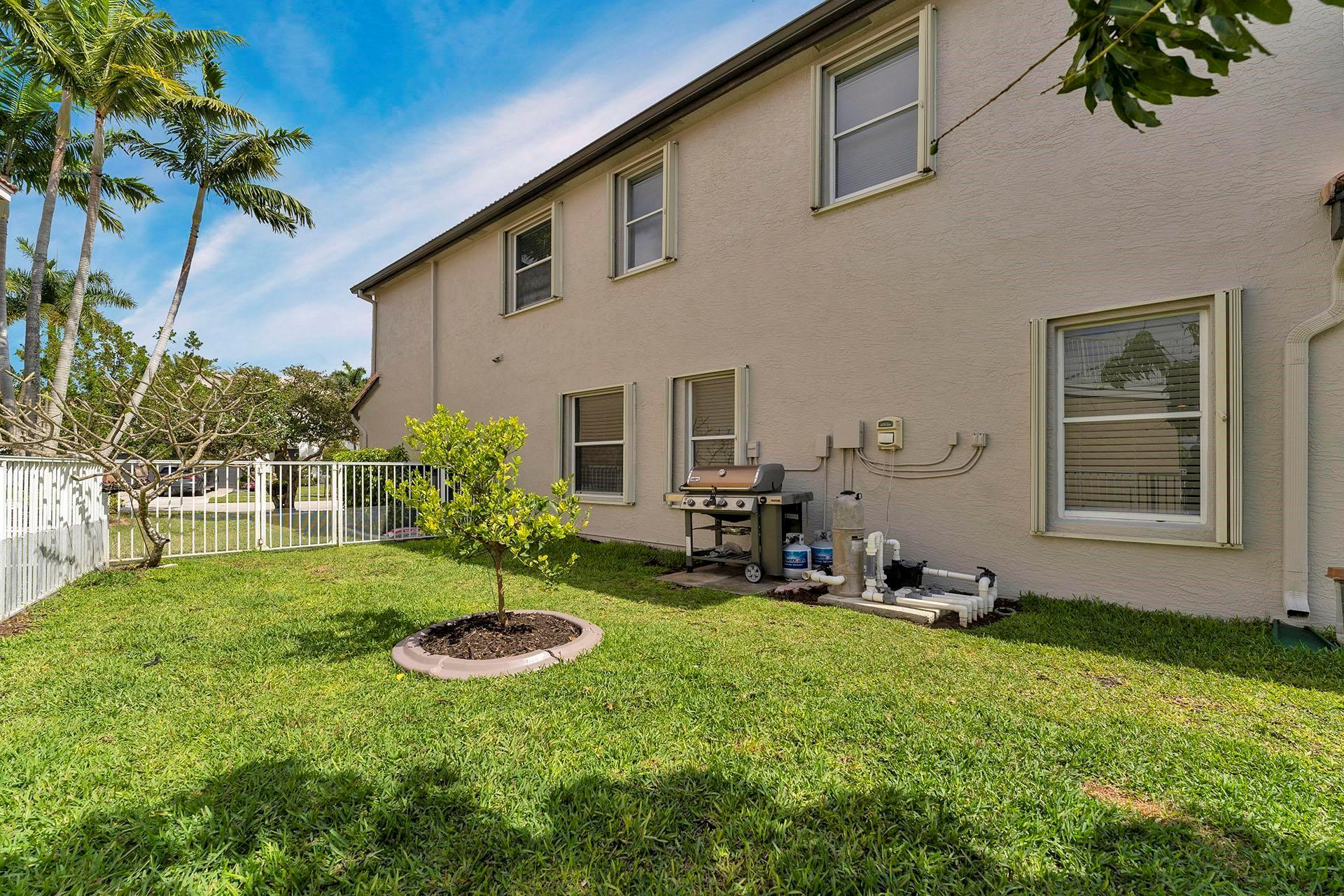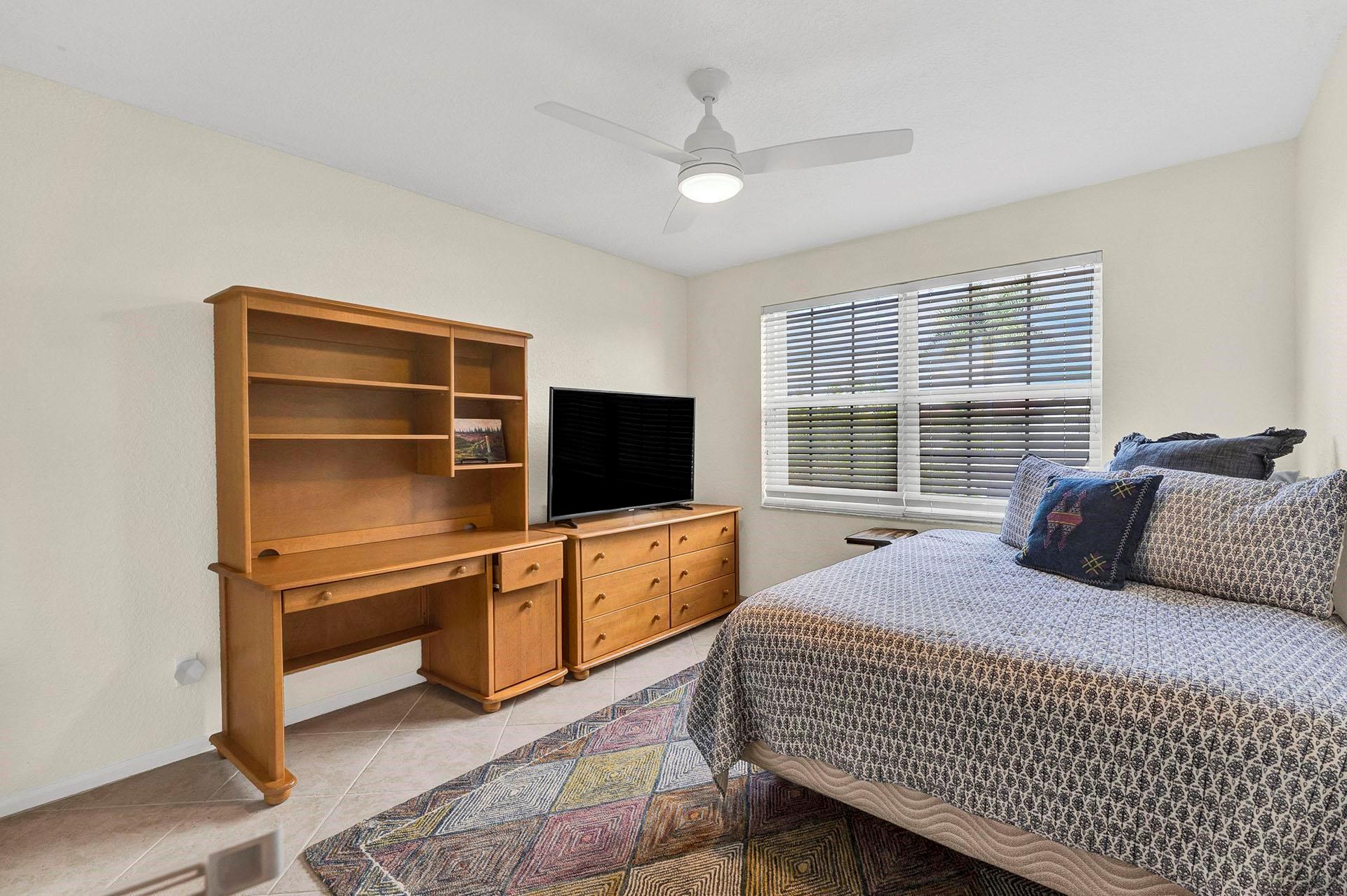 Enter this beautiful home & find high ceilings, ceramic tile floors throughout, & beautiful natural light! Large kitchen features granite counters, white cabinets, stainless steel appliances including 2023 refrigerator, & oversized pantry! Relax in this ideal backyard! Salt water pool (new pool pump) overlooks lake w no neighbors visible across. Avocado, papaya, mango, coconut & orange trees! Large covered patio! Fully fenced yard! Self watering bowl for furry friends! New irrigation pump & system uses water from lake! 1 bedroom 1 updated full bath on 1st floor. Primary bedroom features sitting area, 2 walk in closets, ensuite bath w shower and tub! Loft/bonus area upstairs. Two 2021 Trane ACs w UV lights, WH=2023, W/D 2023, & exterior just painted! HOA includes cable, trash, & internet!