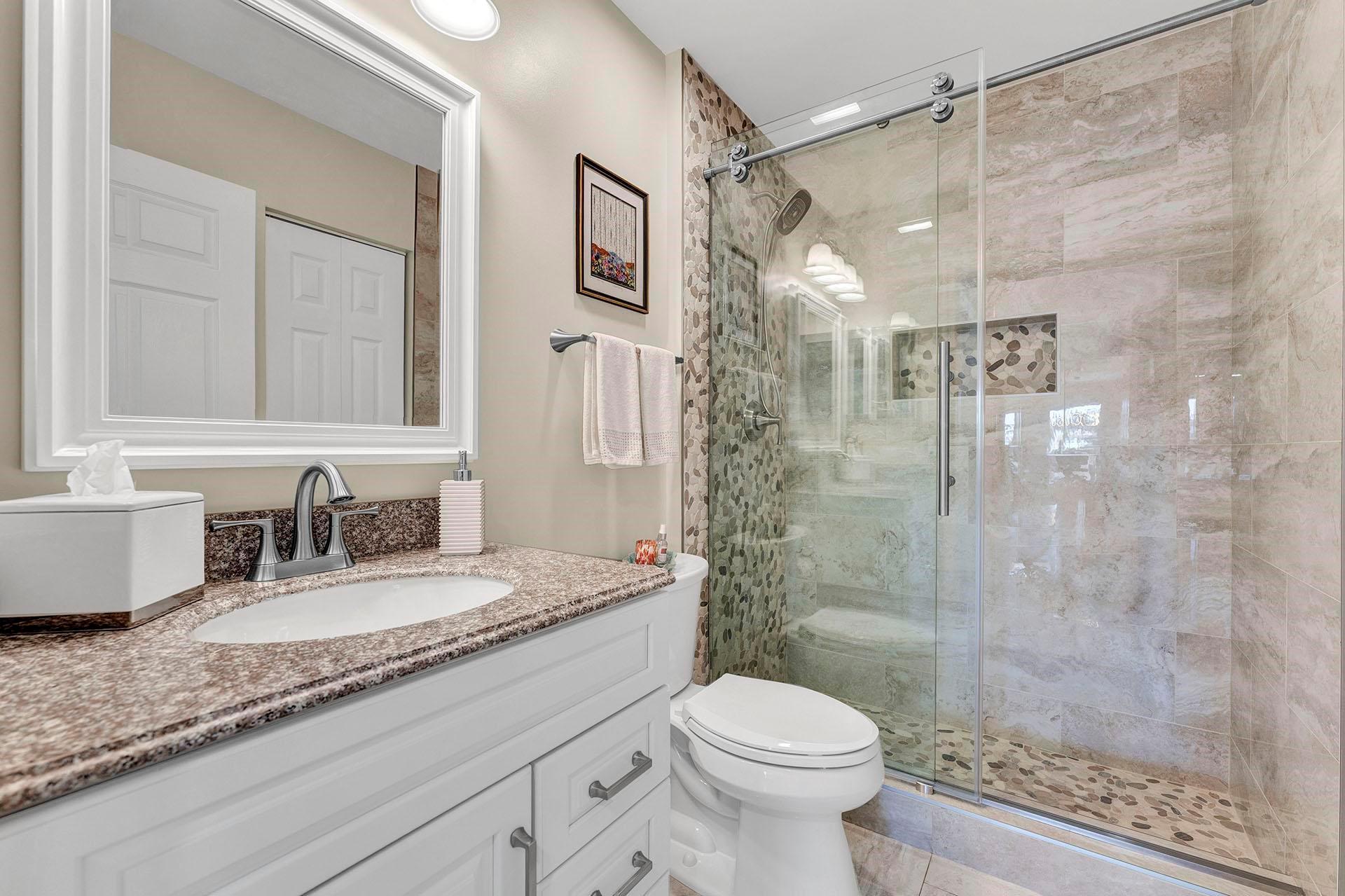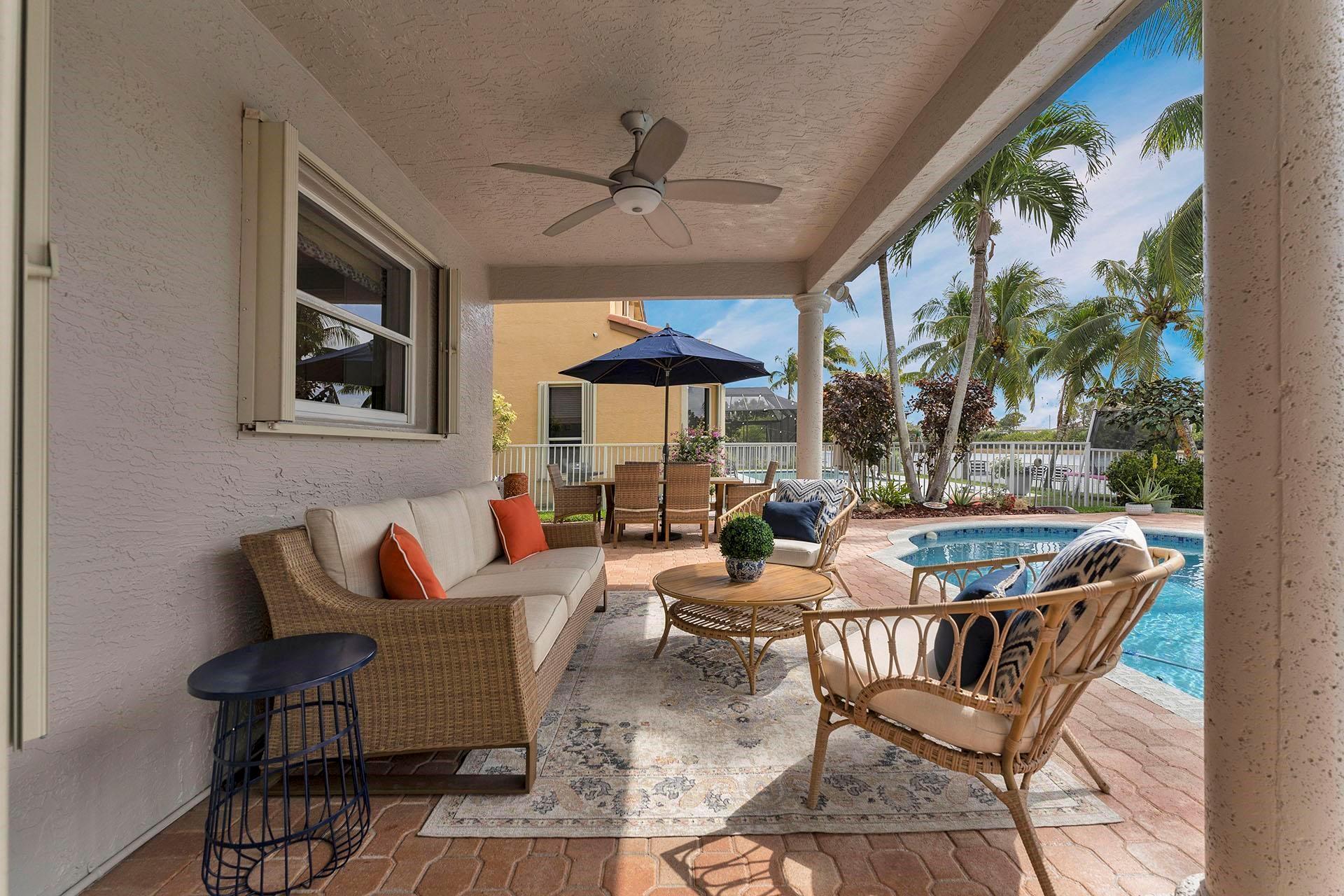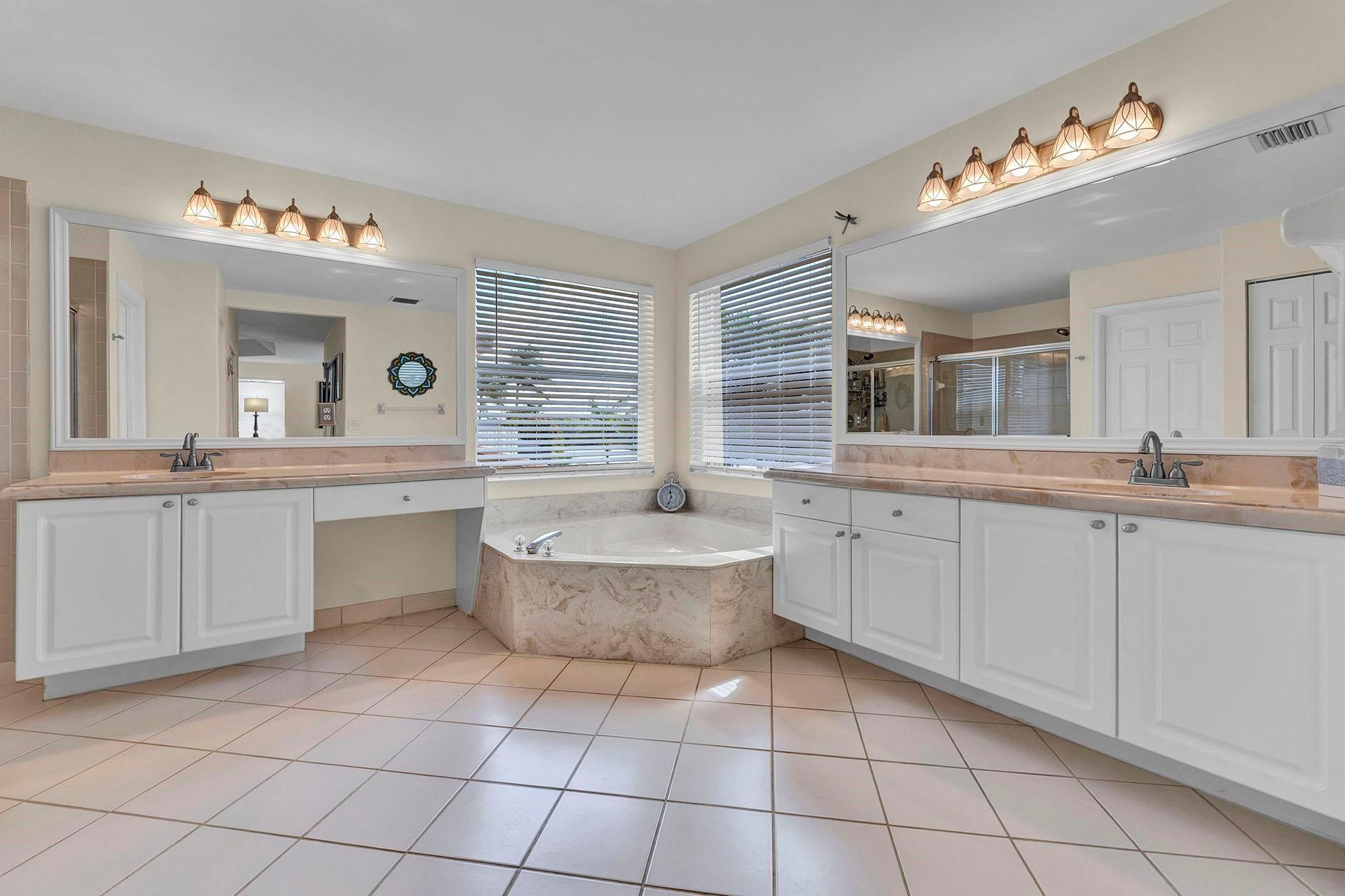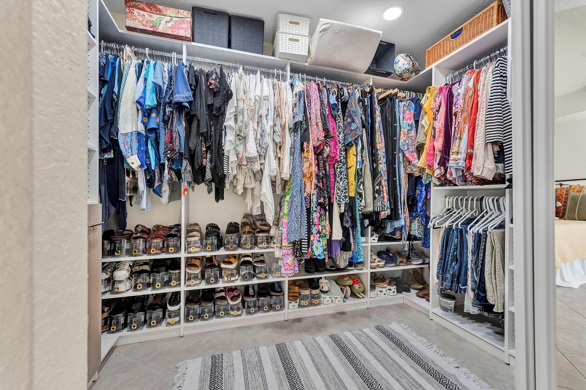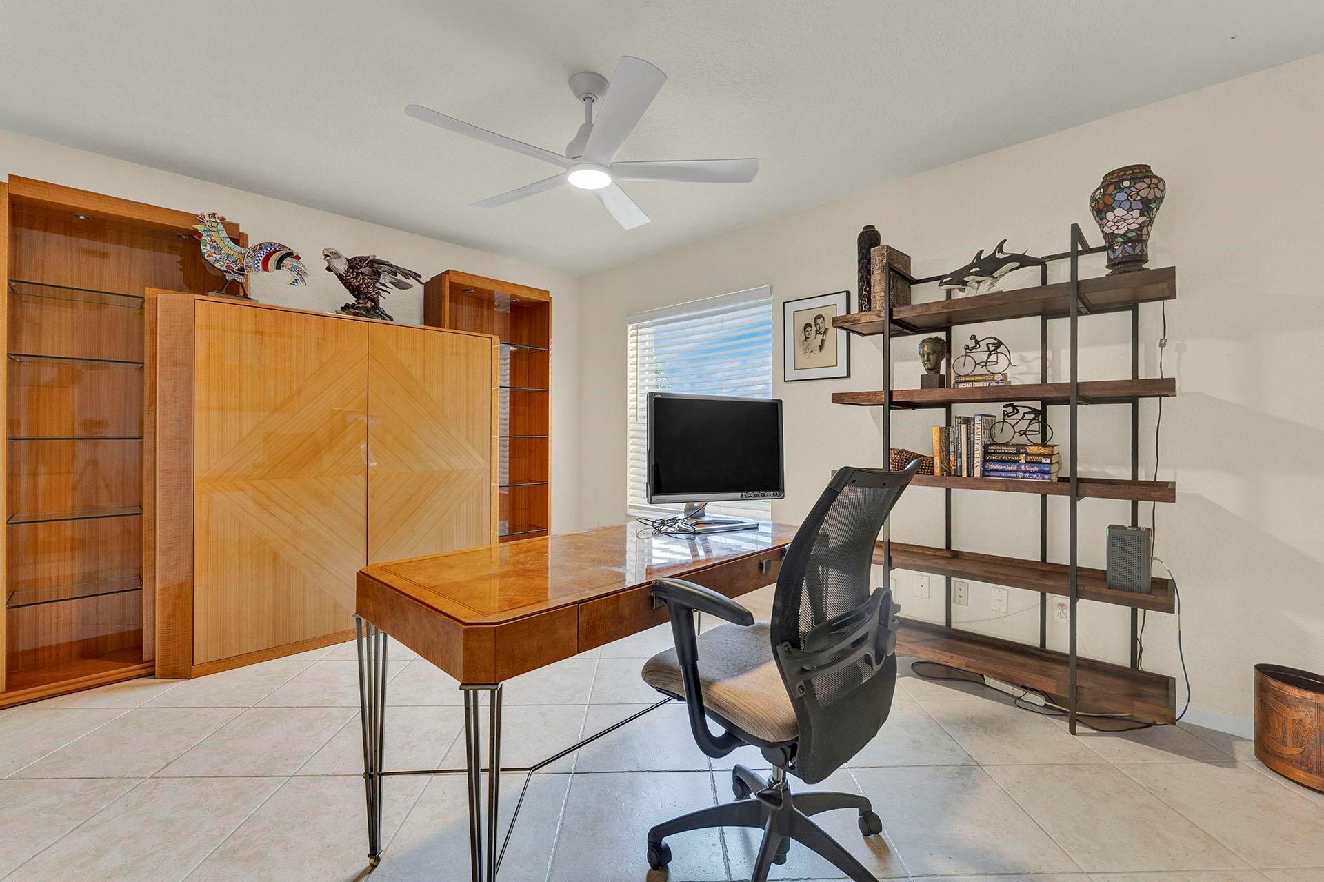 Enter this beautiful home & find high ceilings, ceramic tile floors throughout, & beautiful natural light! Large kitchen features granite counters, white cabinets, stainless steel appliances including 2023 refrigerator, & oversized pantry! Relax in this ideal backyard! Salt water pool (new pool pump) overlooks lake w no neighbors visible across. Avocado, papaya, mango, coconut & orange trees! Large covered patio! Fully fenced yard! Self watering bowl for furry friends! New irrigation pump & system uses water from lake! 1 bedroom 1 updated full bath on 1st floor. Primary bedroom features sitting area, 2 walk in closets, ensuite bath w shower and tub! Loft/bonus area upstairs. Two 2021 Trane ACs w UV lights, WH=2023, W/D 2023, & exterior just painted! HOA includes cable, trash, & internet!