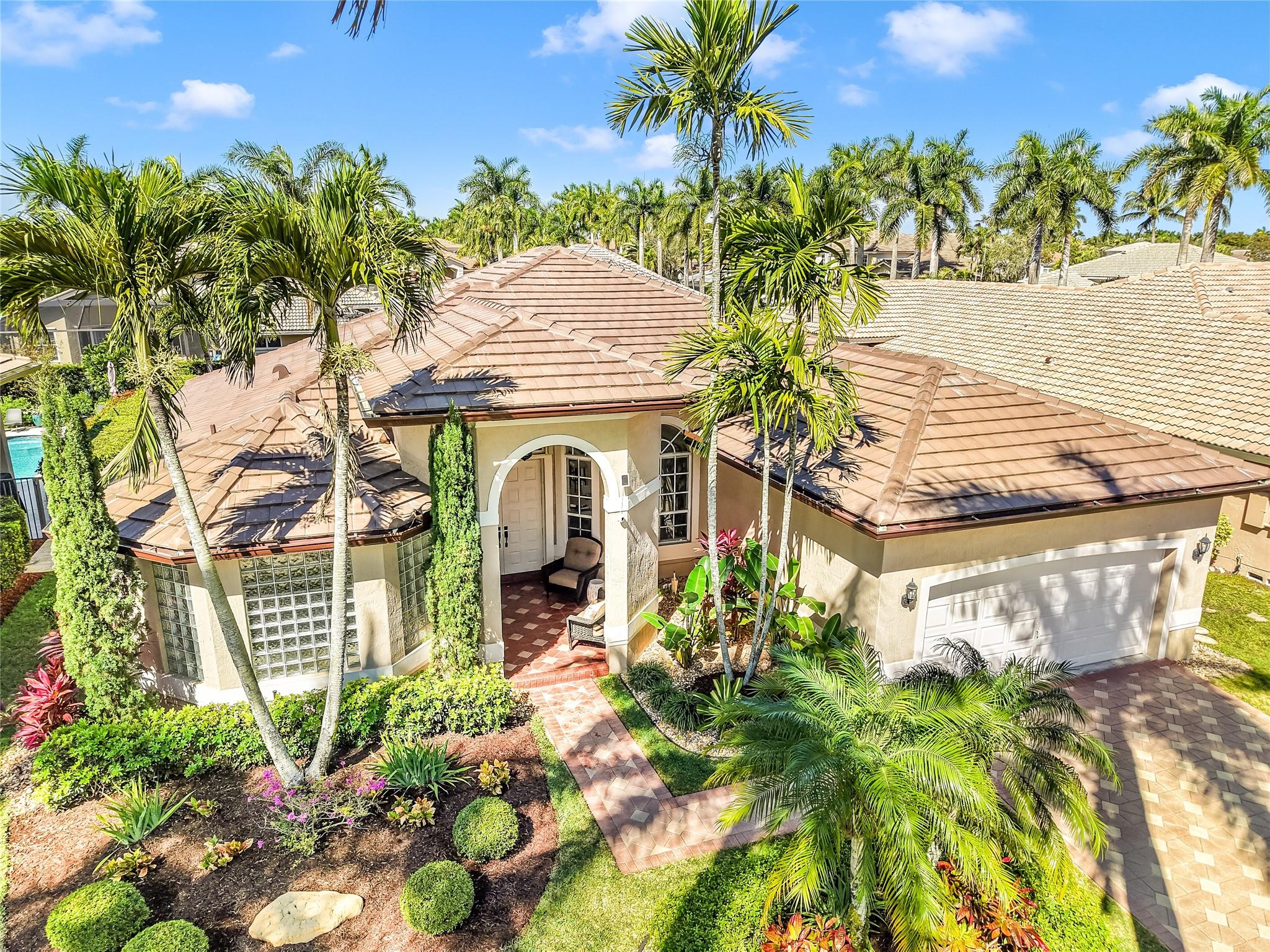 Welcome to Weston Hills! This meticulously maintained one-story pool home sits on a quiet cul-de-sac street, where every visitor is a neighbor. Lined with majestic Royal Palms, the community offers a lifestyle of elegance and convenience. Enjoy an updated kitchen with 42” cabinets, granite counters, and SS appliances, plus a stylish wet bar. The triple-split 4/3 floor plan boasts vaulted ceilings, bright living areas, and a spacious master suite with tray ceiling, sitting area, and dual walk-ins. Step outside to a private patio with a sparkling pool. With a new roof (Sept.2024) and walking distance to a park with pickleball, basketball, and a playground, this is Weston living at its finest!