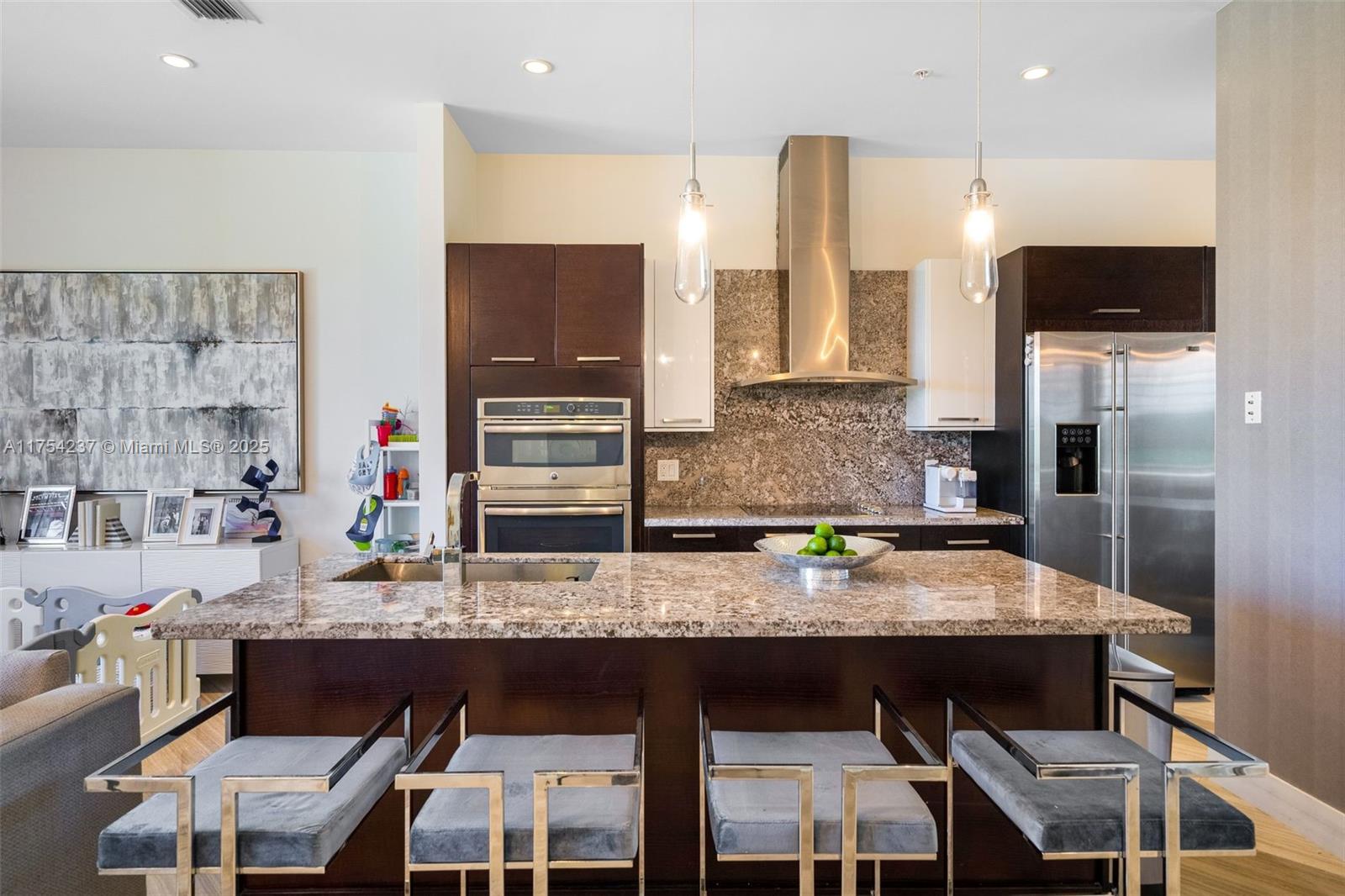 Интерьер:BuiltInFeatures, BedroomOnMainLevel, BreakfastArea, ClosetCabinetry, DualSinks, FamilyDiningRoom, FirstFloorEntry, Fireplace, KitchenIsland, LivingDiningRoom, Pantry, UpperLevelPrimary, Bar, Elevator