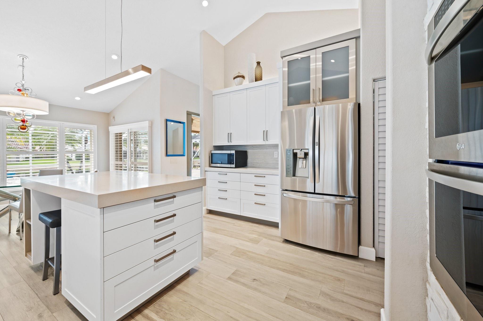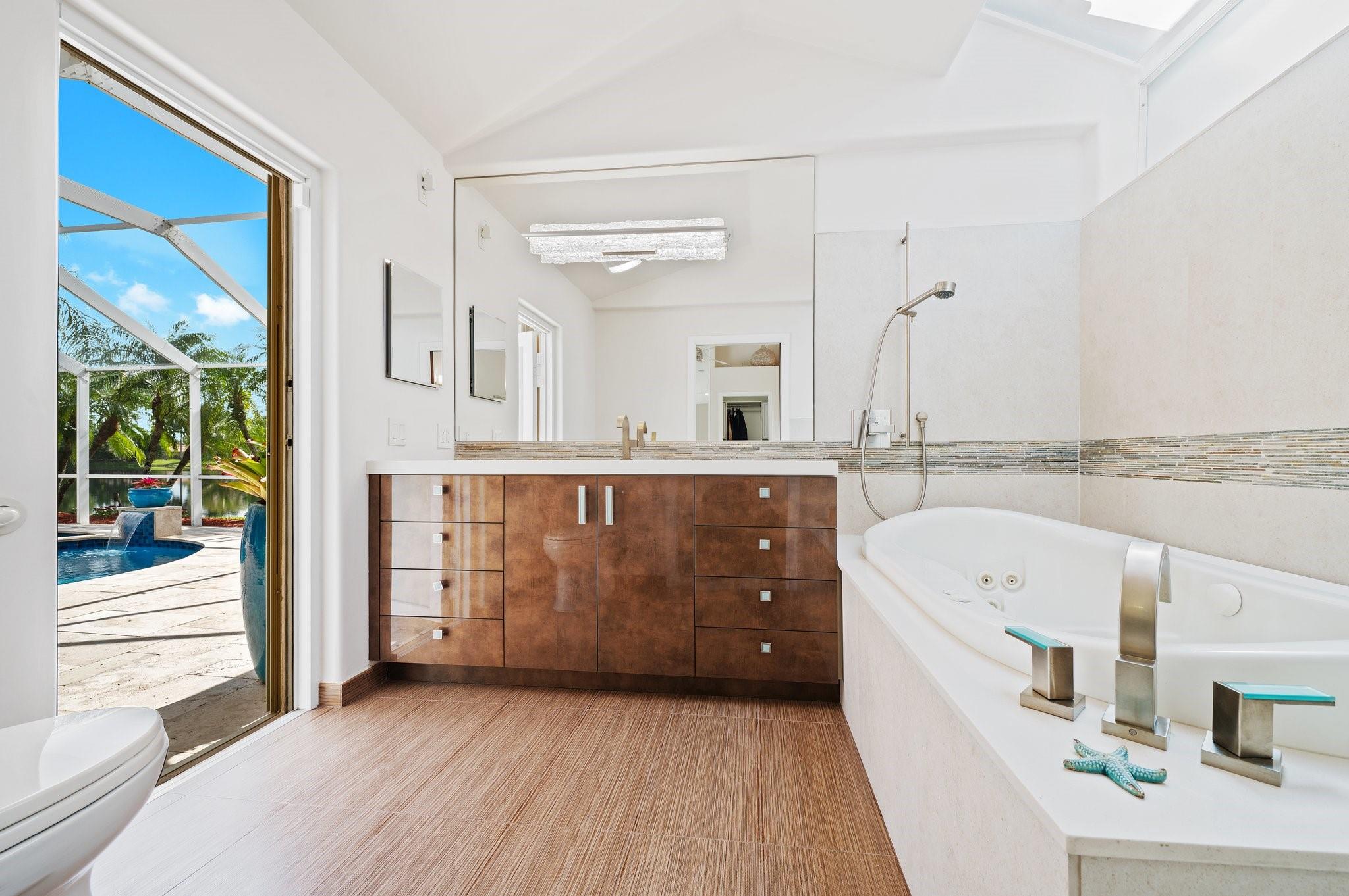 As you step inside this meticulously maintained residence, you're welcomed by breathtaking water views that span the entire back of the home. Sliding glass doors open wide to let the outside in. Every room offers functional upgrades with great attention to detail. This custom designed kitchen features wooden pullout cabinet organizers, stainless steel doors, and real marble countertops. The pantry and all closets provide ample storage with sturdy custom-built shelving and drawers. Both bathrooms have been upgraded with luxurious finishes, including a spacious jetted tub in the primary. The fenced enclosure beside the screened pool area is perfect for children and pets. Full hurricane protection and security system for your comfort. This beautiful home is ready for you to move right in!