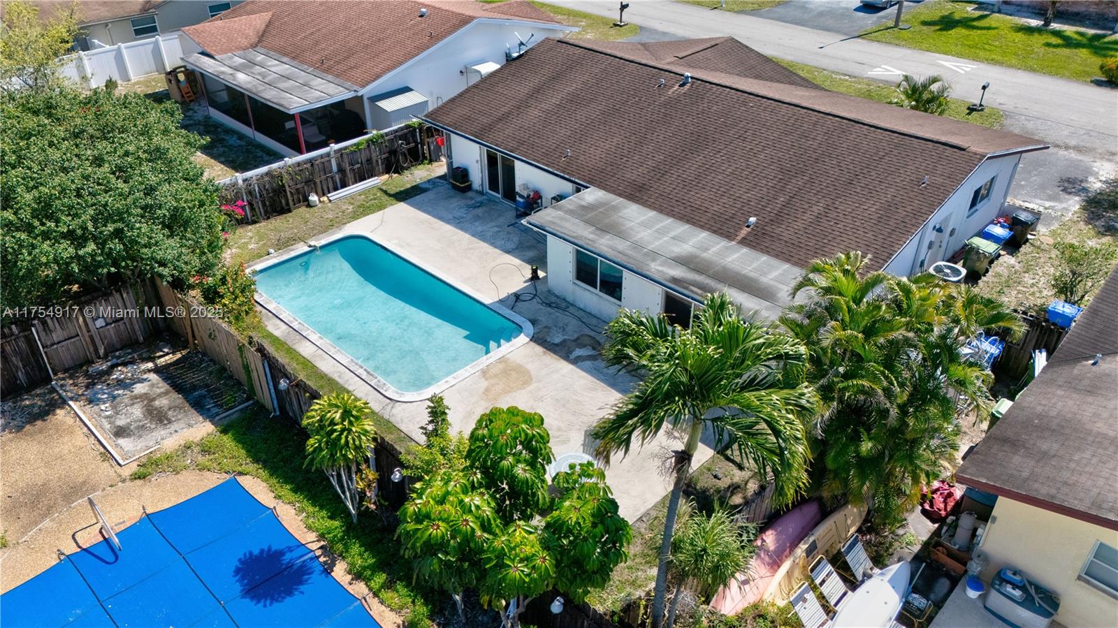A fantastic brick home in a beautiful, well established neighborhood. This is a diamond in the rough, with great bones and lines. Four bedrooms, and two full bath, Florida room, all impact windows, extended garage, new A/C and electrical panel. Large lot with low maintenance back yard, and concrete patio surrounding pool.
