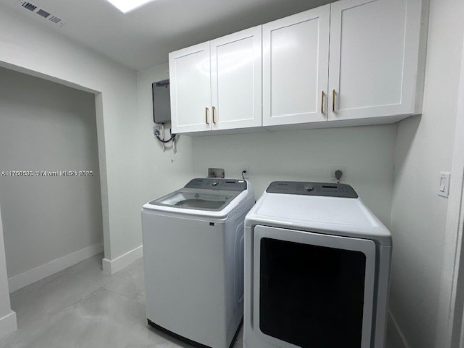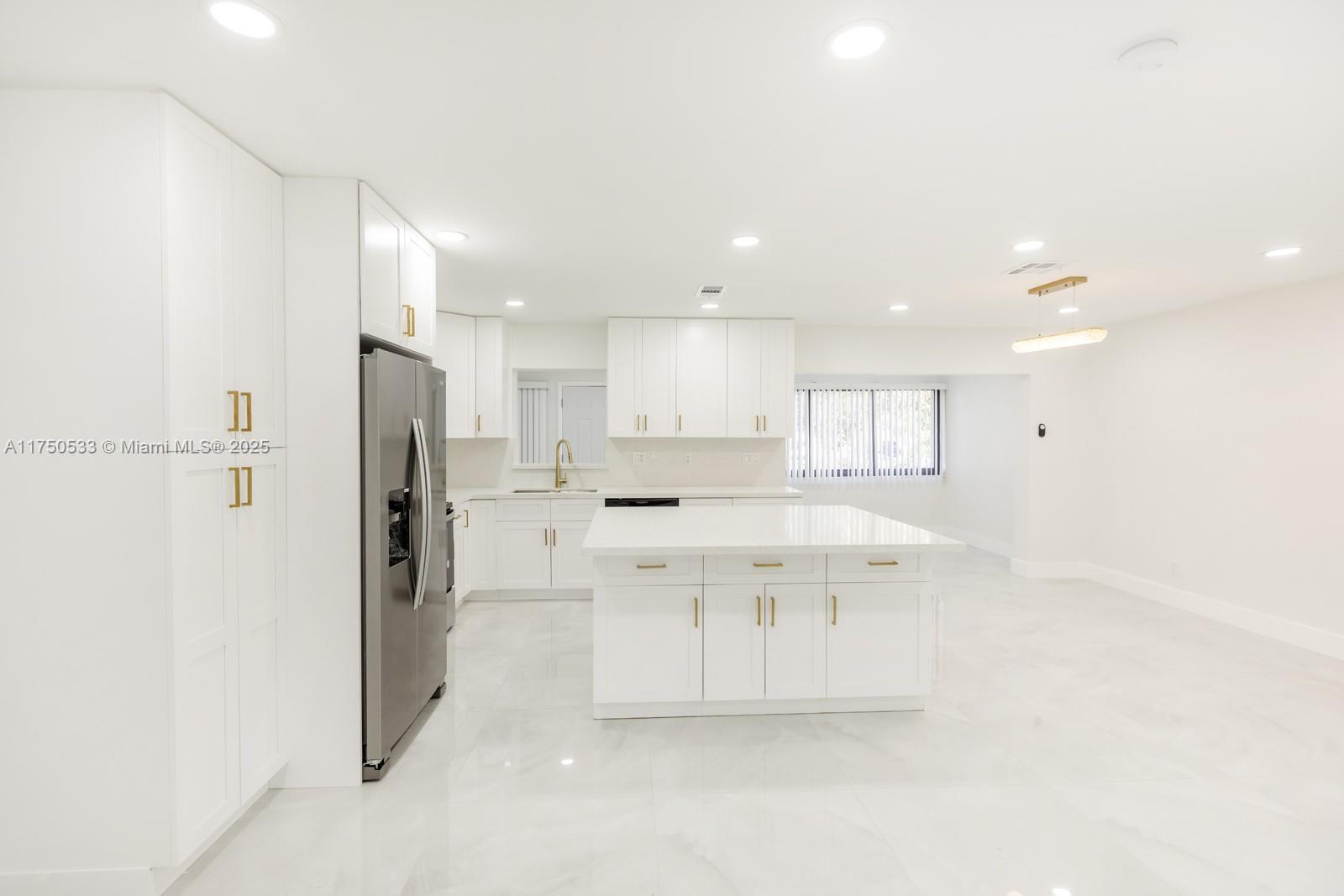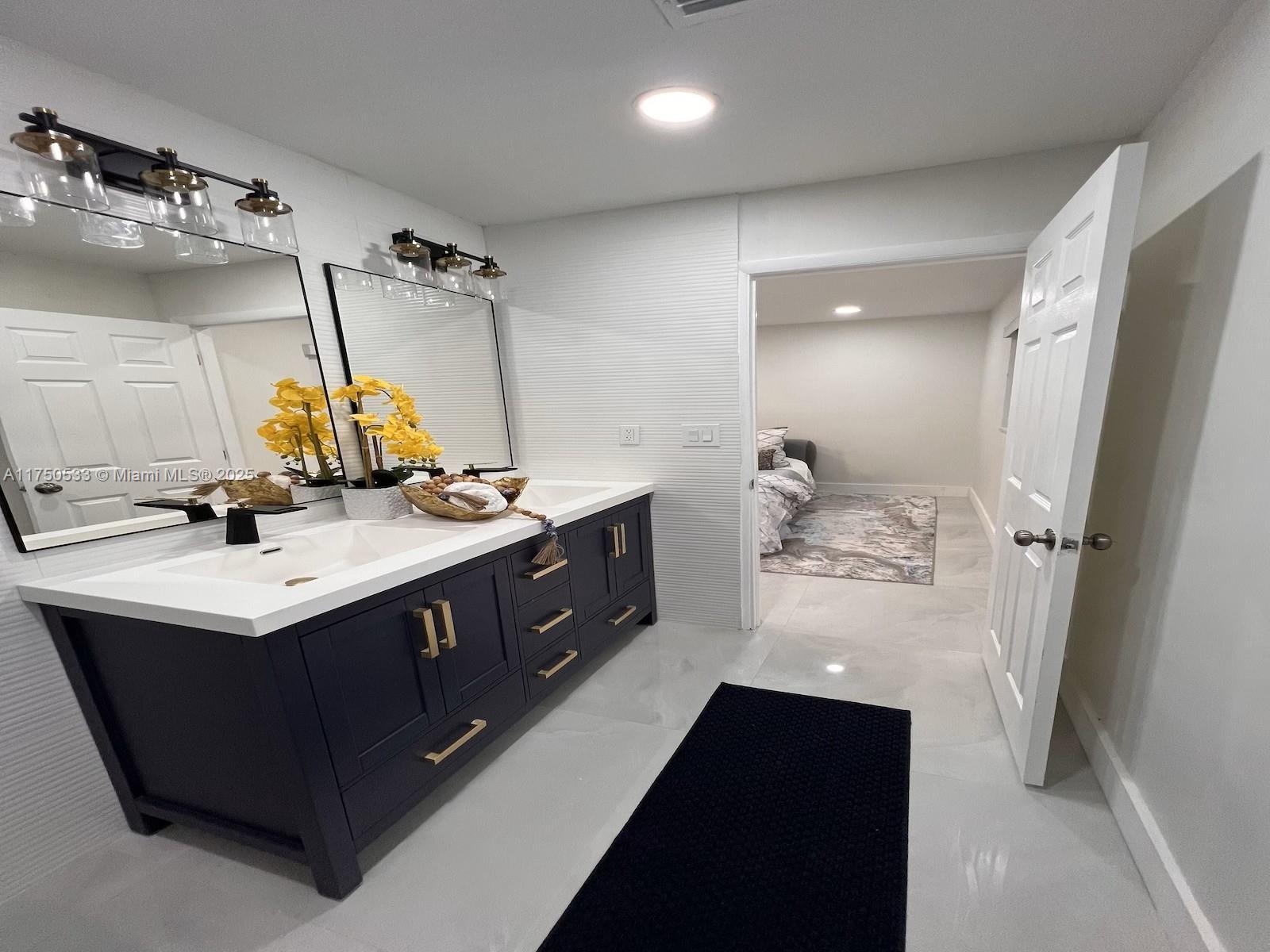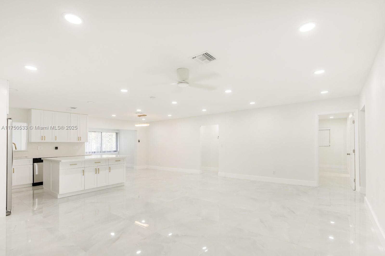 This breathtaking 4-bedroom, 2-bathroom home boasts a 2-car garage and has been meticulously remodeled with high-end finishes throughout. Elegant porcelain tile flooring graces every room, complemented by modern color tones that create a luxurious ambiance. The home features a 2012 roof, inpact windows and doors, New A/C, brand-new appliances, and custom solid wood cabinetry with exquisite gold fixtures, a true retreat, featuring a spacious walk-in shower and his-and-hers sinks. With a thoughtfully designed split floor plan, this home offers both privacy and convenience. Ideally located with easy access to major highways, the beach, and the airport, this home is the perfect blend of style and function.