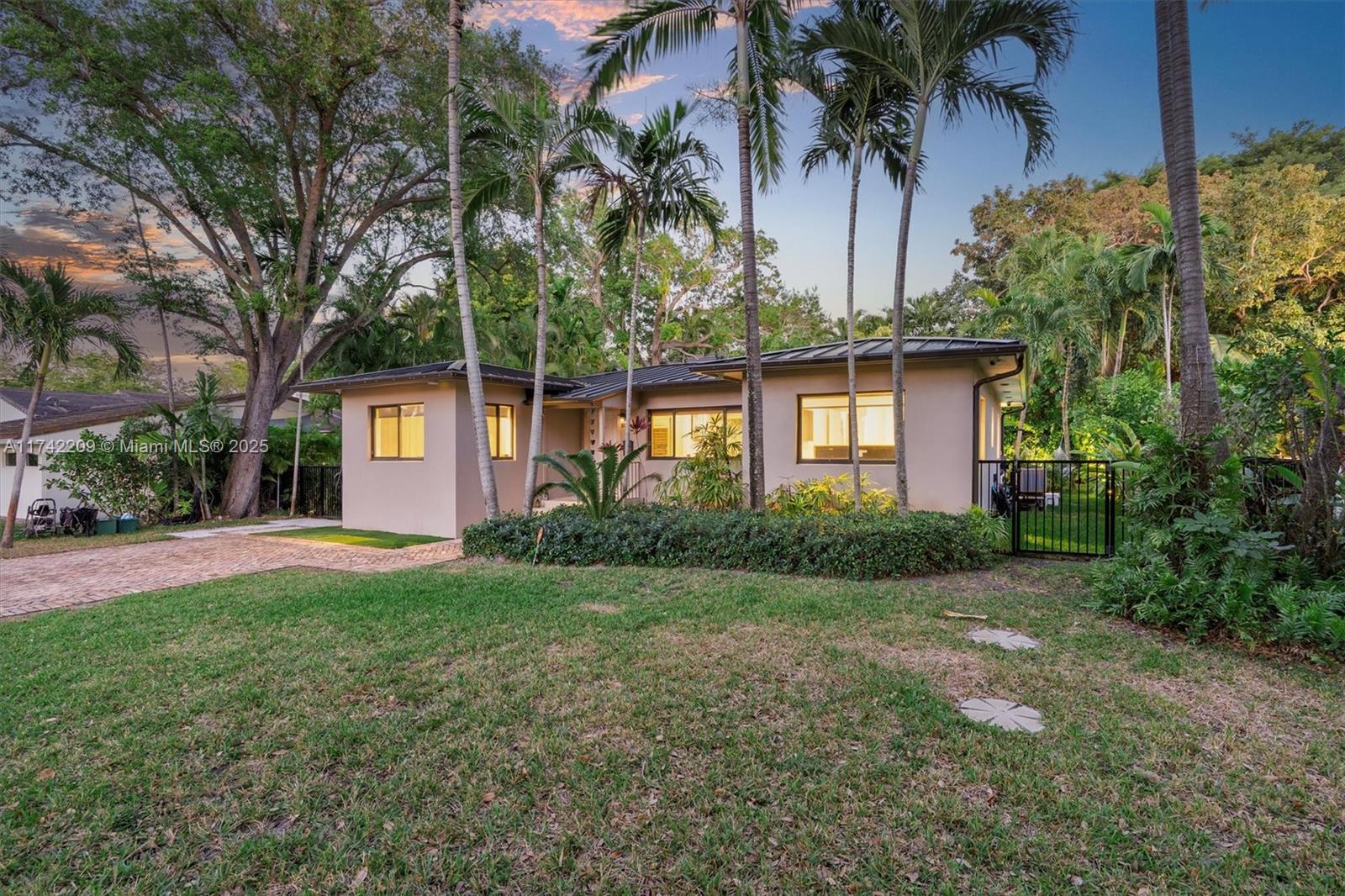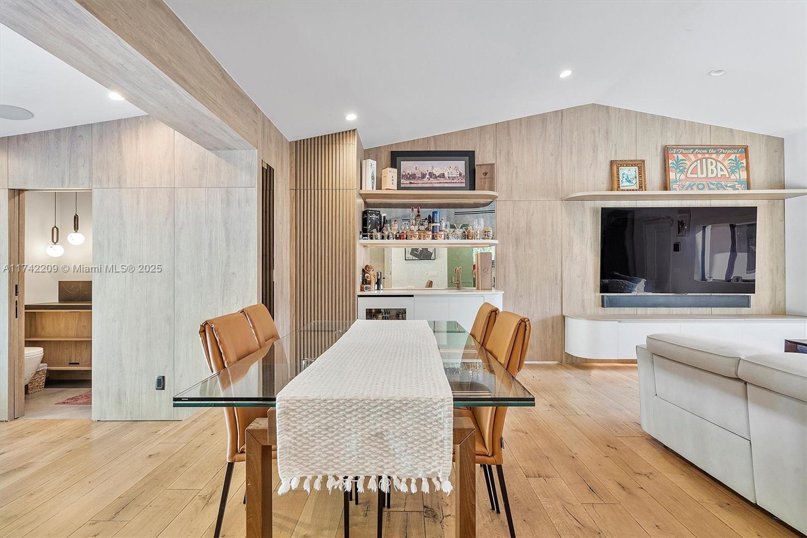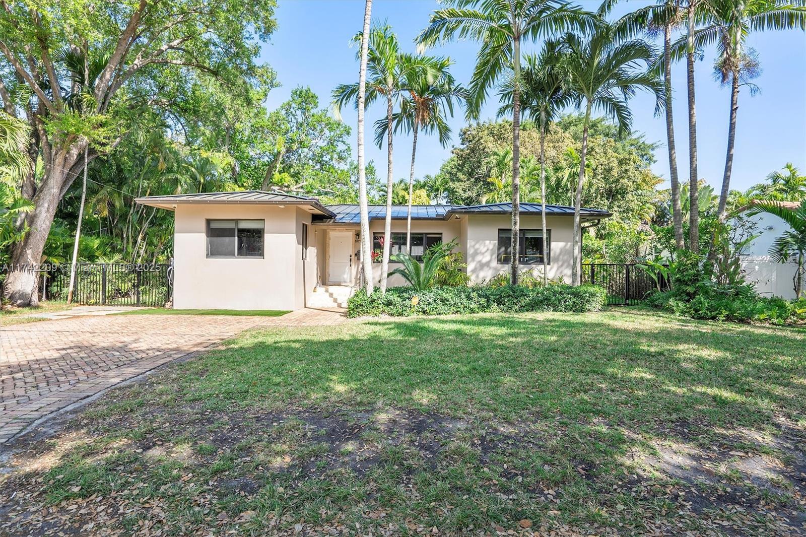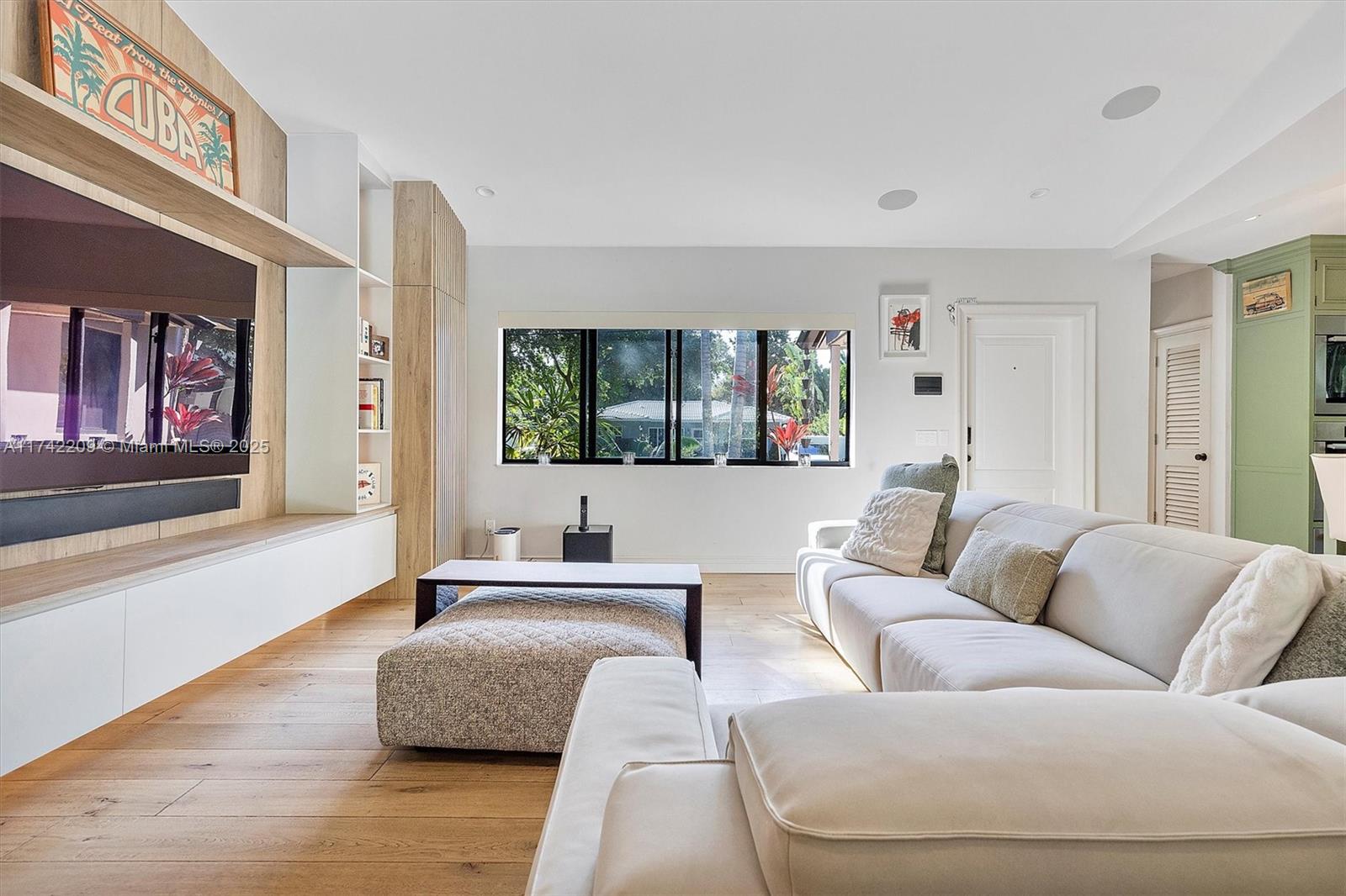 Welcome to a hidden paradise in Miami Shores! An absolutely stunning, newly upgraded home. Step inside to discover beautiful Florida pine wood floors throughout and soaring pitched ceilings that create an airy, open feel. A sleek wood-paneled wall adds a touch of sophistication and conceals hidden access to two of the bedrooms and a bathroom. The spacious primary suite boasts a gorgeous soaking tub set against a large picture window, inviting you to relax while overlooking lush greenery. Steam shower in second bath! Designed for comfort and convenience, this smart home is fully equipped with cutting-edge technology. Outside, your private oasis awaits— a brand-new pool w/heater + chiller, and hot tub, surrounded by pristine white tile, with outdoor lighting and sound system.