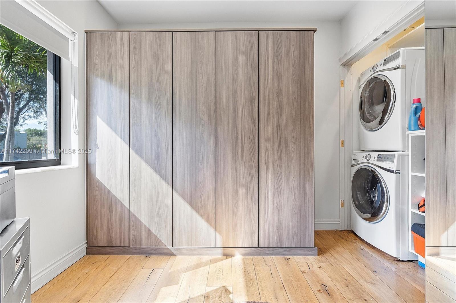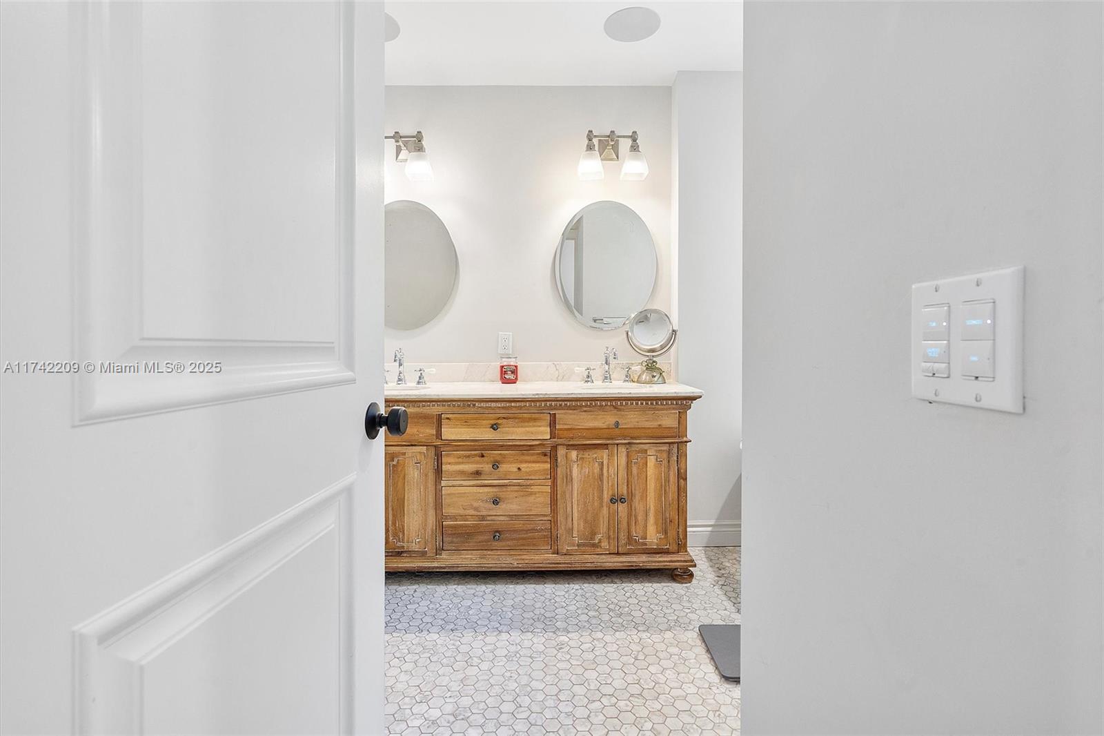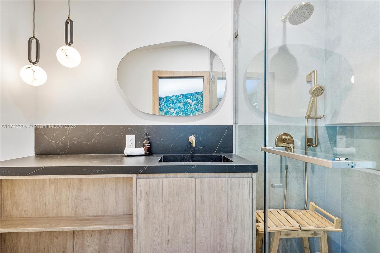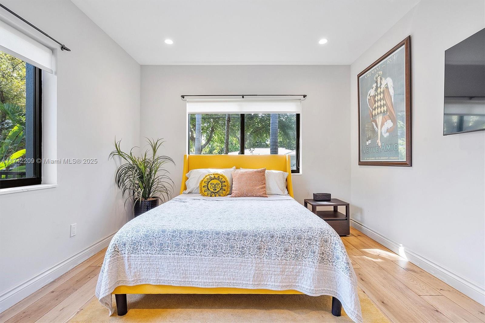 Welcome to a hidden paradise in Miami Shores! An absolutely stunning, newly upgraded home. Step inside to discover beautiful Florida pine wood floors throughout and soaring pitched ceilings that create an airy, open feel. A sleek wood-paneled wall adds a touch of sophistication and conceals hidden access to two of the bedrooms and a bathroom. The spacious primary suite boasts a gorgeous soaking tub set against a large picture window, inviting you to relax while overlooking lush greenery. Steam shower in second bath! Designed for comfort and convenience, this smart home is fully equipped with cutting-edge technology. Outside, your private oasis awaits— a brand-new pool w/heater + chiller, and hot tub, surrounded by pristine white tile, with outdoor lighting and sound system.