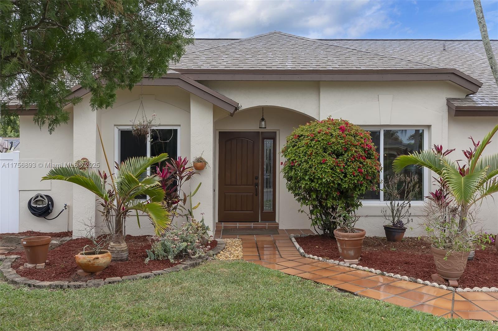 Walk into this beautifully-maintained 3 Bedroom, 2 Bathroom home to enjoy the high ceilings and wrap-around view of the tiled swimming pool patio in a tranquil west Davie neighborhood. Elegant wood and marble floors throughout the house. Master Bedroom includes a walk-in closet and cabana bathroom. Updated and cozy kitchen with great appliances; partially-updated bathrooms; all windows and doors are impact-proof except for the 2-car garage door. No HOA! Close to parks, shopping centers, Weston, Pembroke Pines, 1-75, 1-595.