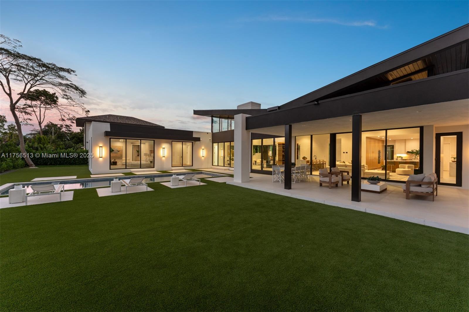 Discover mid-century modern in this brand-new 1-story estate, completed in 2025 in the exclusive cul-de-sac community of The Grove at Pinecrest. This architectural gem boasts a seamless open-concept layout, elegant finishes, and expansive impact windows. Enter through a sleek foyer with porcelain floors flowing into formal living and dining areas. A custom wet bar complements the spacious family room. The chef’s kitchen features custom cabinetry, top-of-the-line Thermidor appliances, gas stove, and Quartz countertops. Step outside to a private oasis with a stunning pool, tanning ledge, and lush landscaping. Use GPS: 6901 SW 91 St.