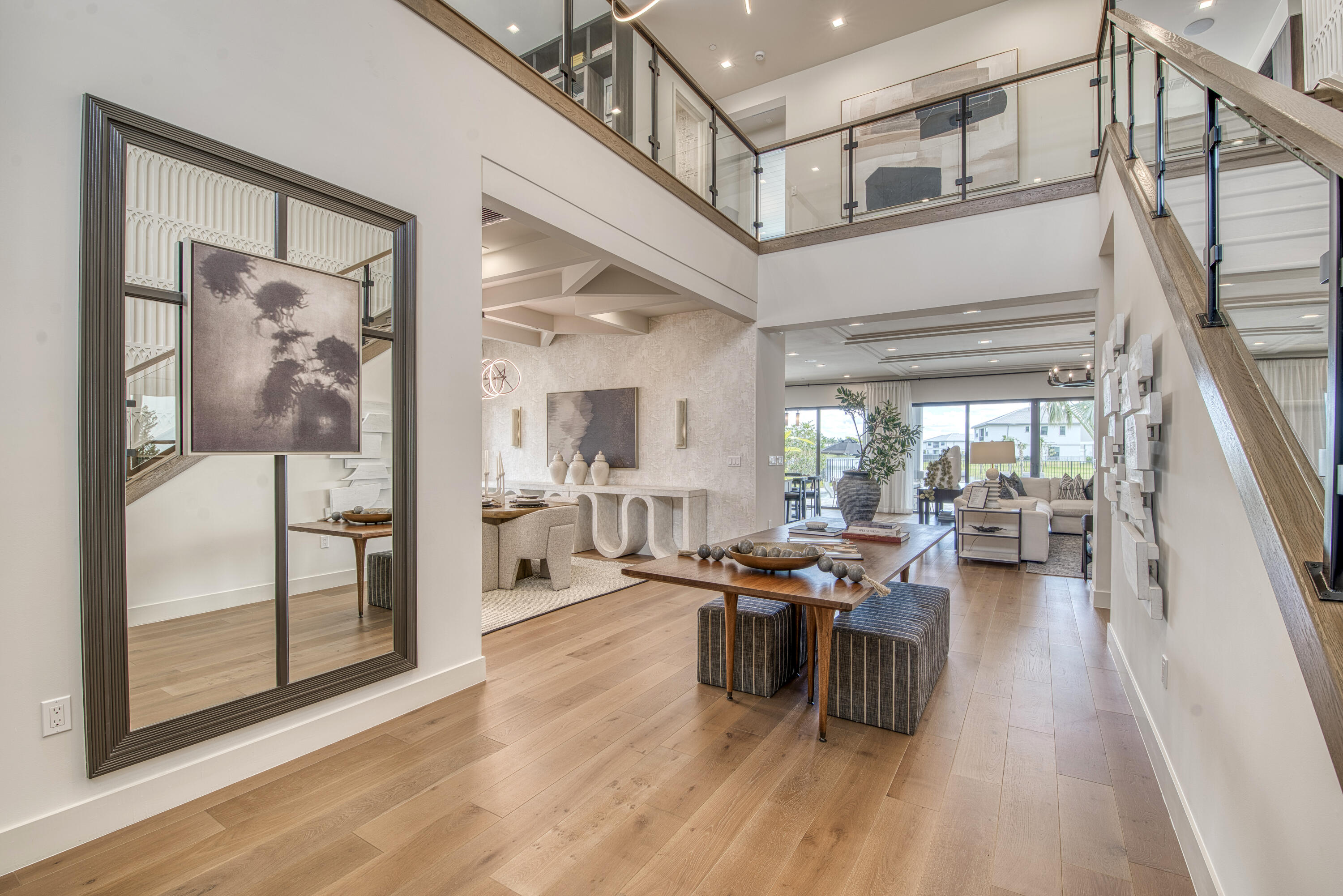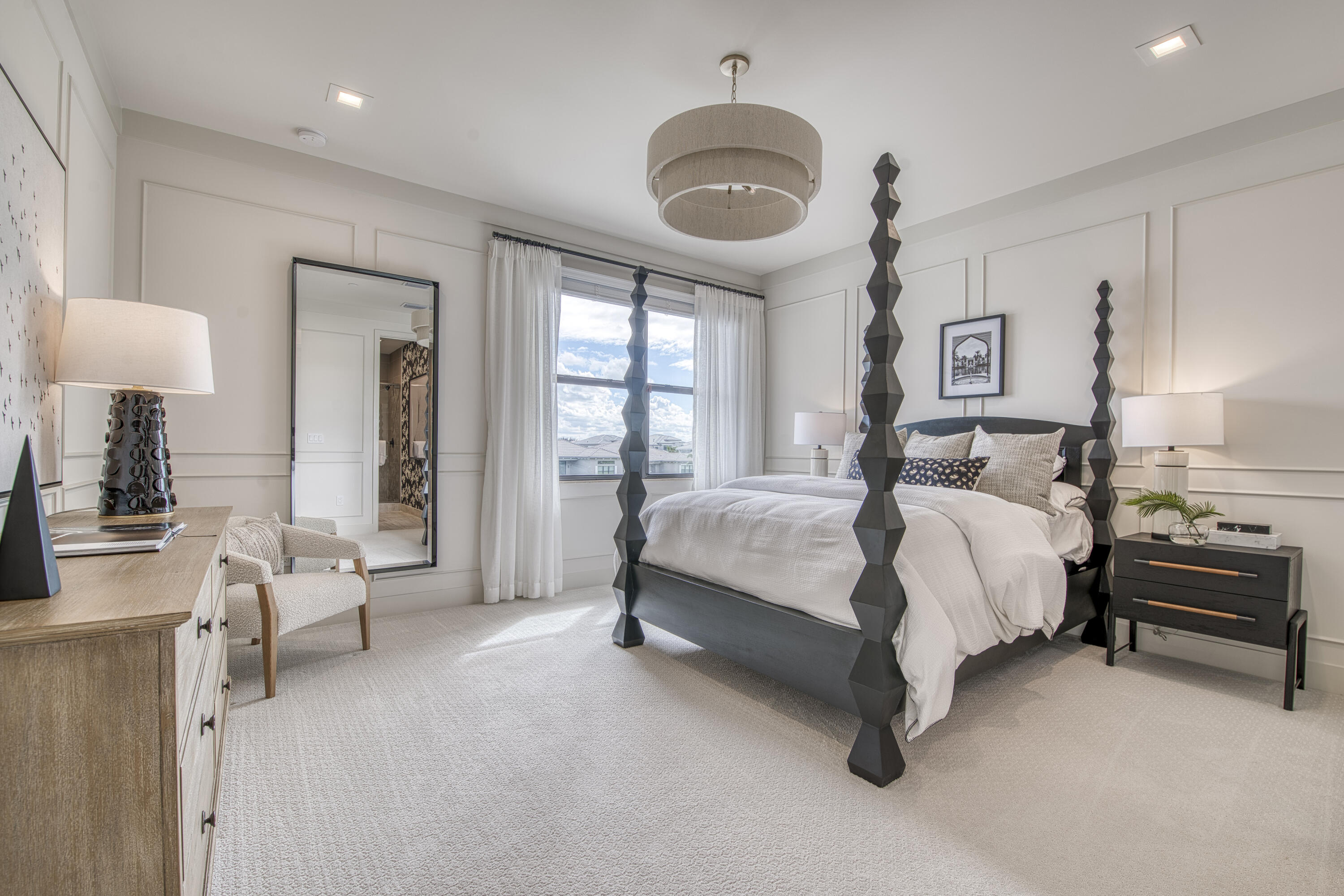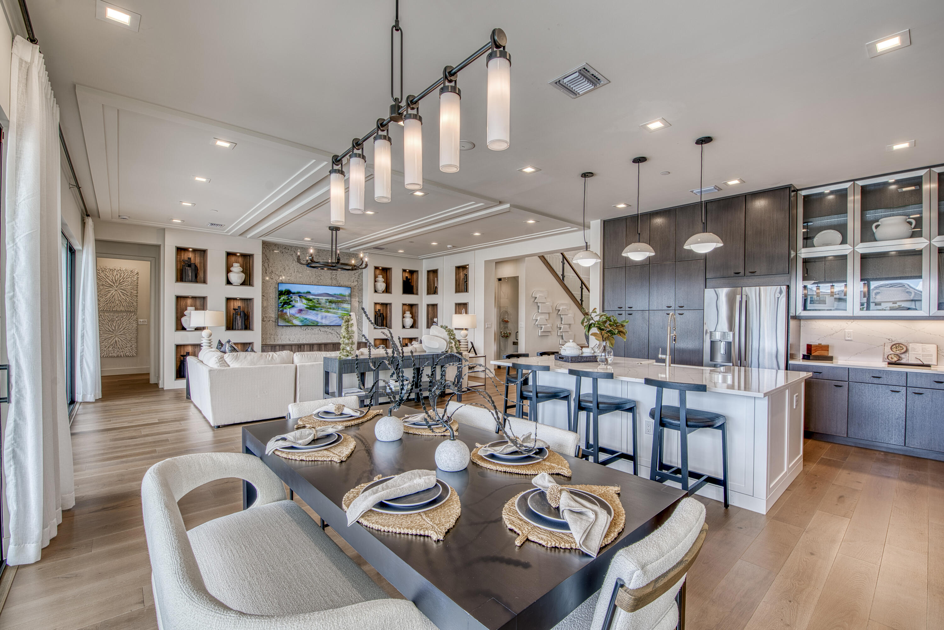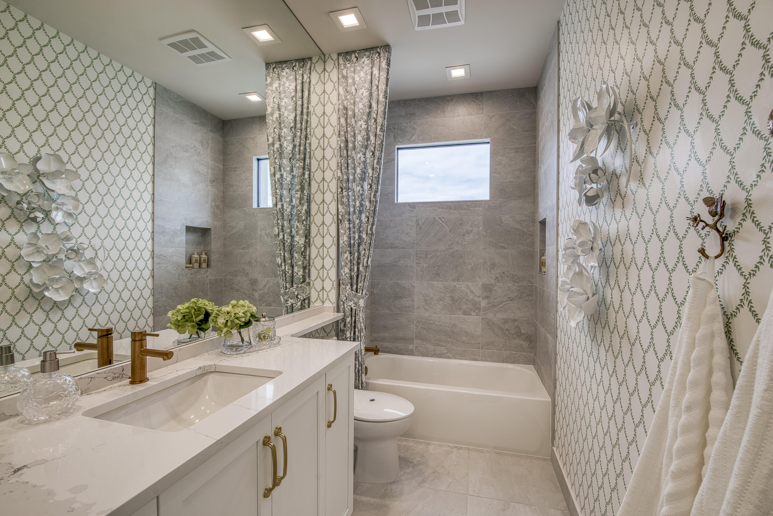 Modern Luxury in Apex at Avenir. Highly desirable Olympus model this 5 Bedrooms, 5.5 Baths, Den, Loft, Media Room, Split 3-car garage estate has all the features you need including a luxurious porcelain floor tile package in key areas, grand staircase, gourmet kitchen featuring upgraded cabinetry and sleek quartz countertops with a flat polished edge, complemented by a full backsplash. This culinary haven is equipped with a GE appliance package, including a gas cooktop, and boasts a spacious kitchen island with seating, making it perfect for both cooking and entertaining. The laundry room offers an upgraded cabinet package with quartz countertops, and a built-in laundry sink for added convenience.
