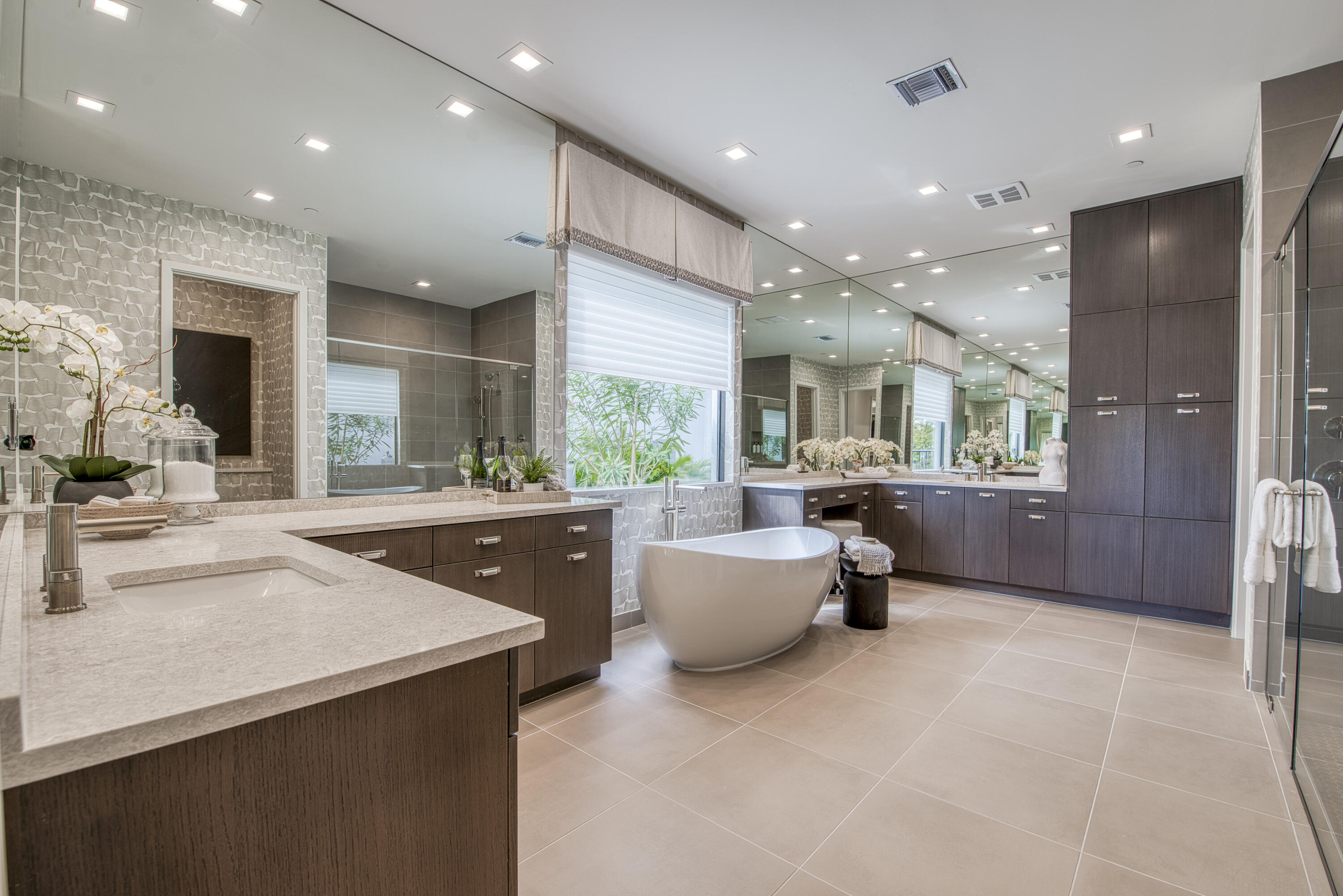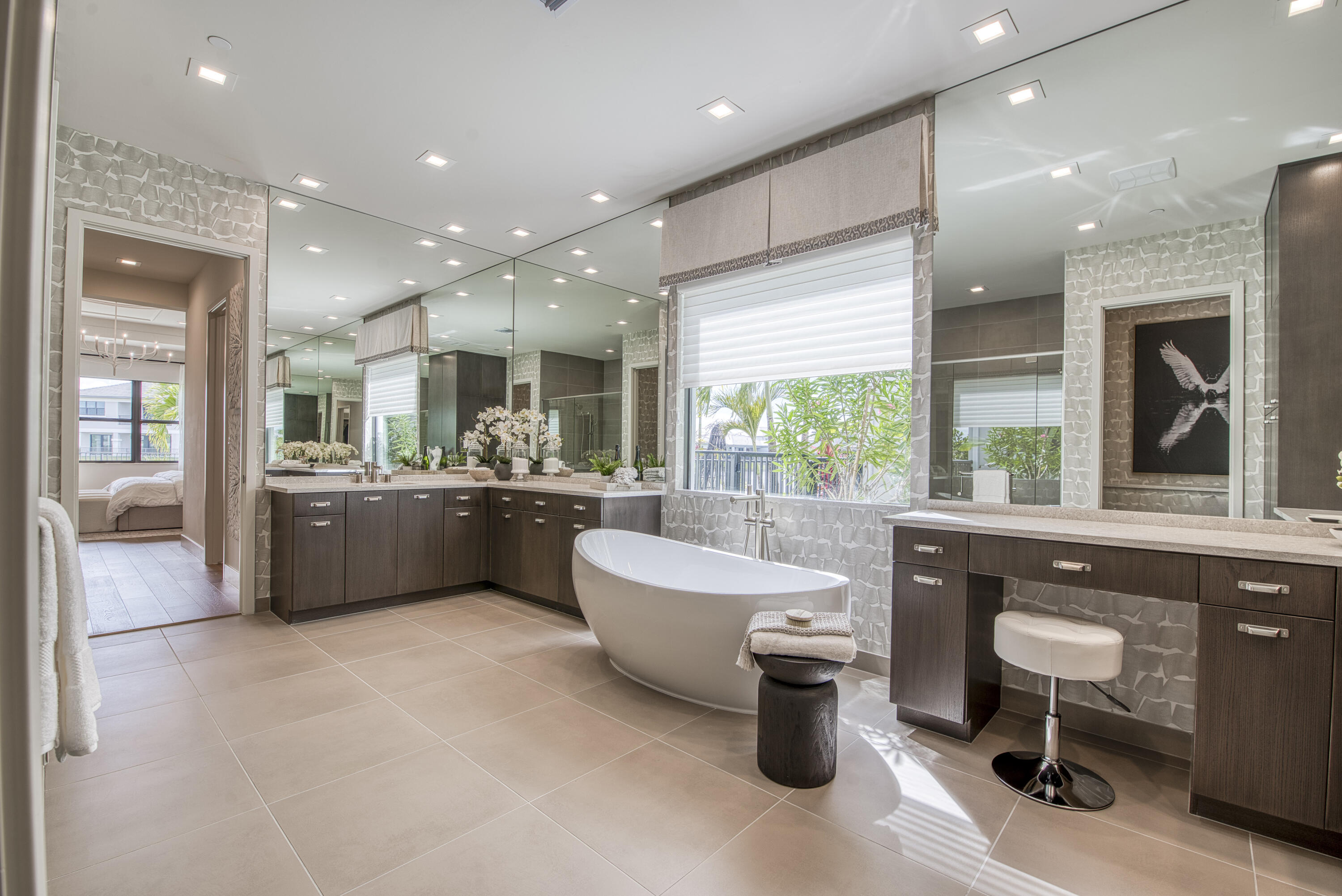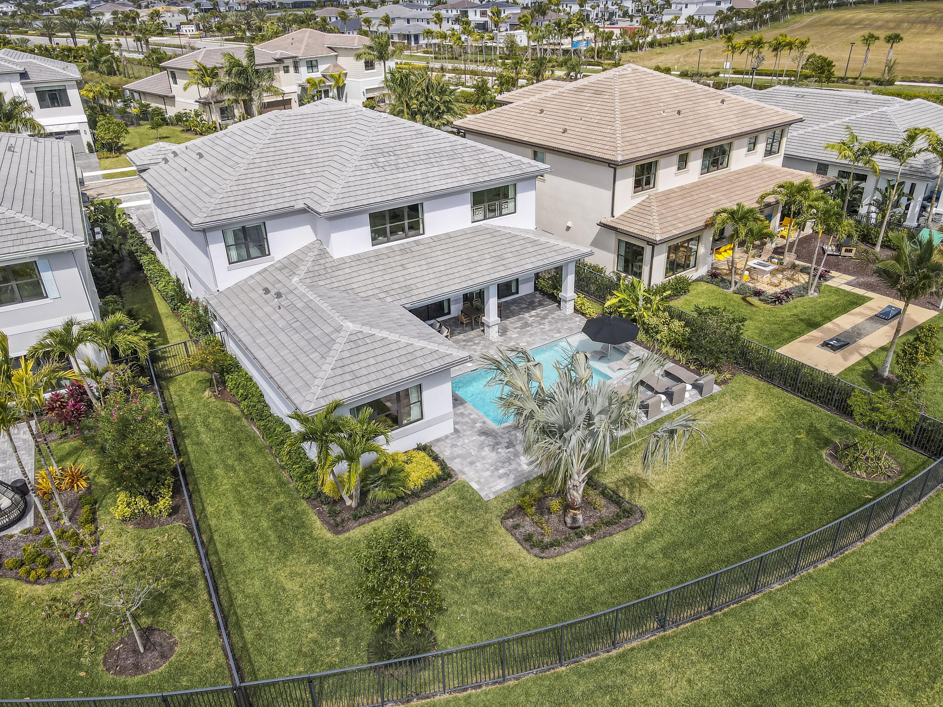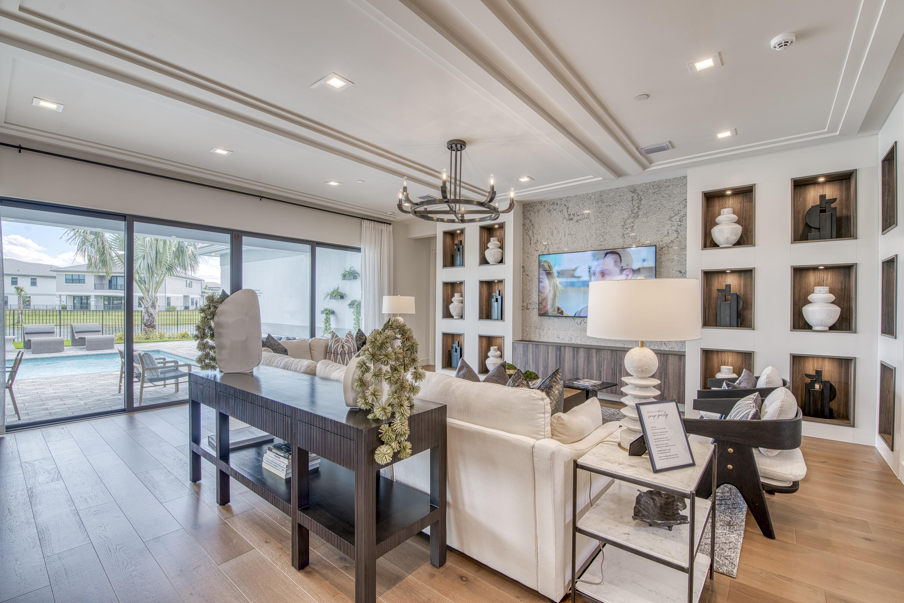 Modern Luxury in Apex at Avenir. Highly desirable Olympus model this 5 Bedrooms, 5.5 Baths, Den, Loft, Media Room, Split 3-car garage estate has all the features you need including a luxurious porcelain floor tile package in key areas, grand staircase, gourmet kitchen featuring upgraded cabinetry and sleek quartz countertops with a flat polished edge, complemented by a full backsplash. This culinary haven is equipped with a GE appliance package, including a gas cooktop, and boasts a spacious kitchen island with seating, making it perfect for both cooking and entertaining. The laundry room offers an upgraded cabinet package with quartz countertops, and a built-in laundry sink for added convenience.