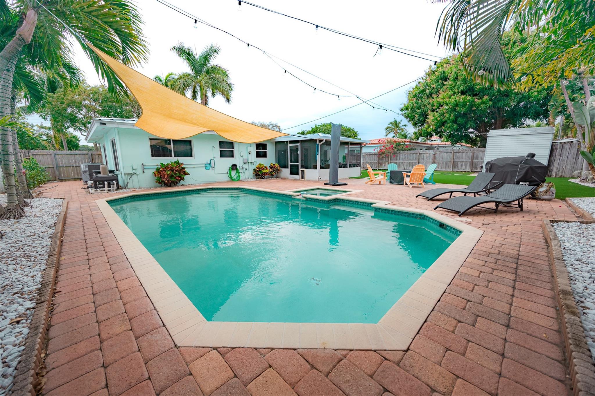 Discover your dream home in the desirable Lyons Park neighborhood. A stunning 3-bedroom, 3-bathroom residence featuring a spectacular backyard oasis. At the heart of this property is a spacious pool/spa deck, perfect for summer barbecues, evening swims, or simply lounging in the sun. The adjoining astro turf backyard provides a maintenance-free green area ideal for safe play and relaxation. Convenience is key, with ample parking space for a boat or golf cart on the west side of the house, as well as a shed offering significant storage for pool toys, furniture, and more. The fully fenced side and rear spaces ensure your privacy, creating a serene environment for entertaining or quiet evenings under the stars. Come see your next home!