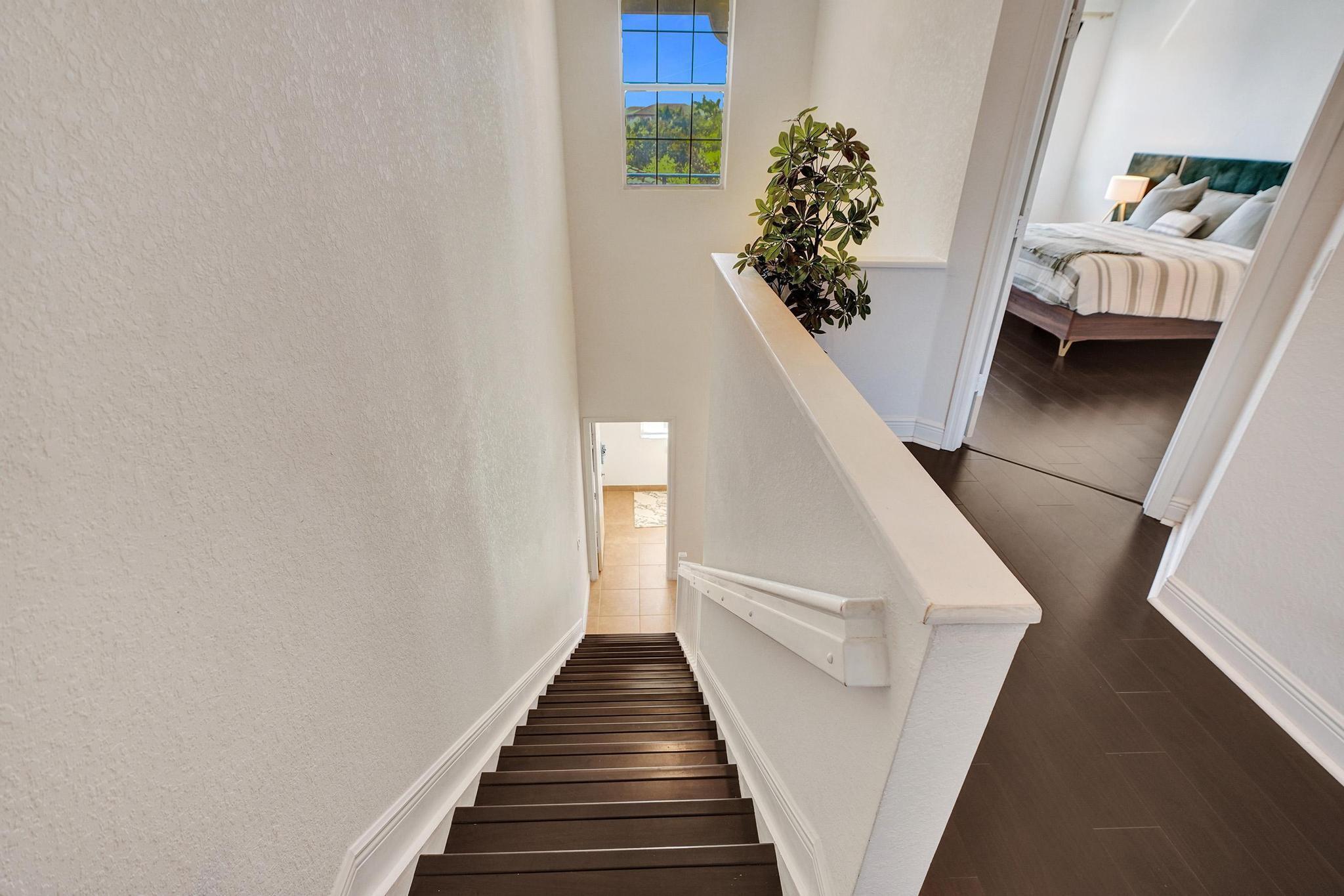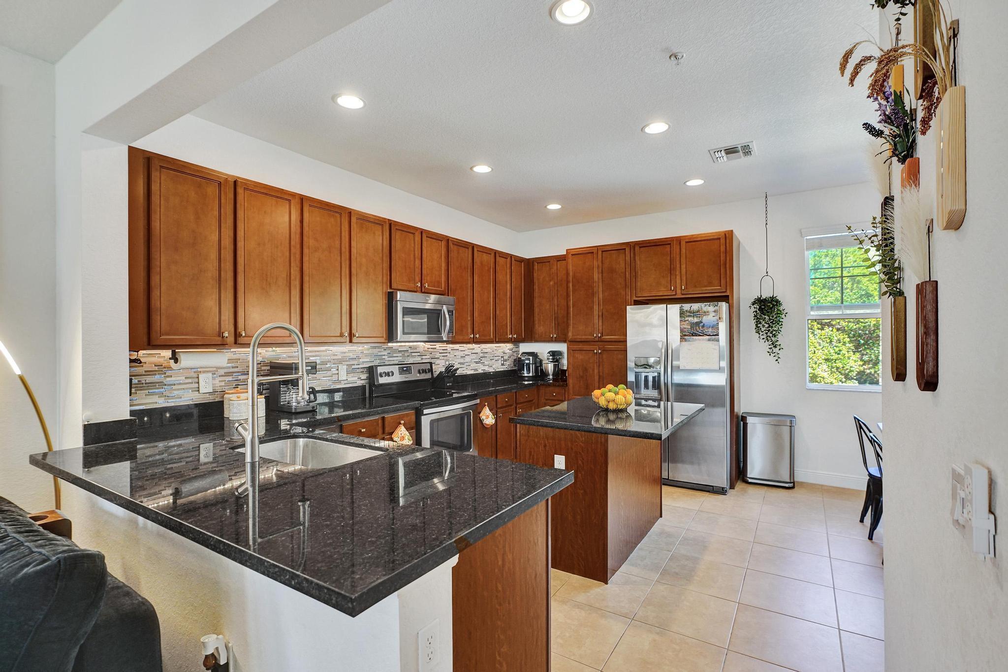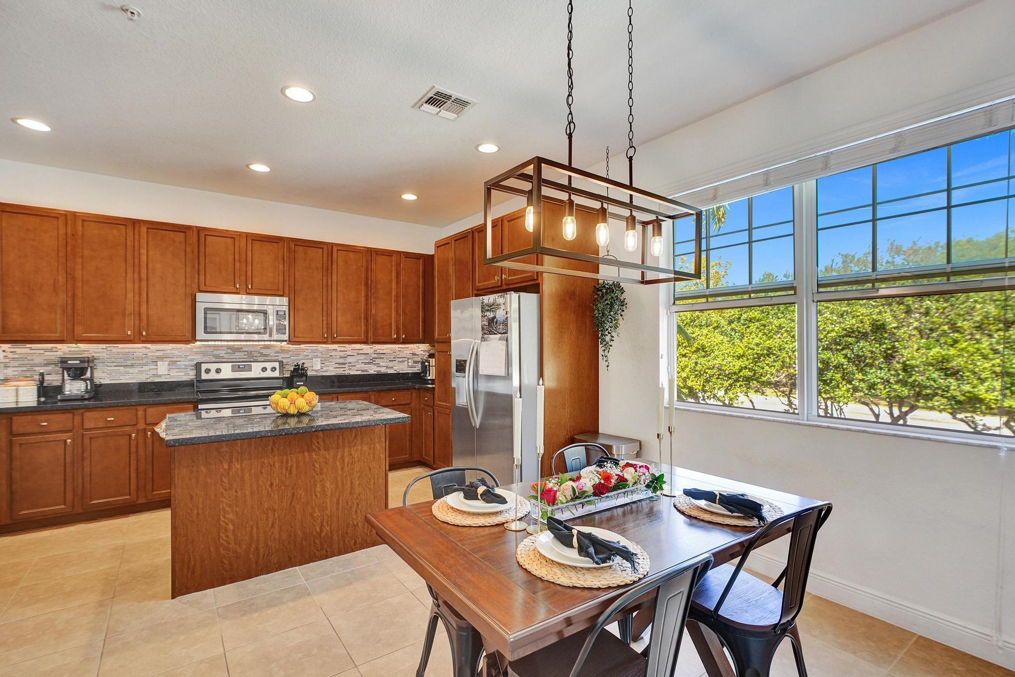 Nestled in the heart of Montclair, a coveted gated community, this pristine tri-level townhome offers 3 BR, 3.1 BA, and a 2-car garage (with EV Charger) with almost 2,100 sqft under air; one of the largest homes in the community. The gourmet kitchen boasts 42'' solid wood cabinetry, a large island, granite counters, and SS appliances.High-impact doors and windows provide security and peace. Enjoy two private balconies--one off the main living area, another off the primary suite--overlooking a serene courtyard and play area.Voluminous ceilings with sprinklers on each floor, two en-suite guest bedrooms, ample storage, wood flooring upstairs, and tile throughout. Low HOA includes cable, internet, clubhouse, gym, pool & walking paths. Schedule your showing today!
