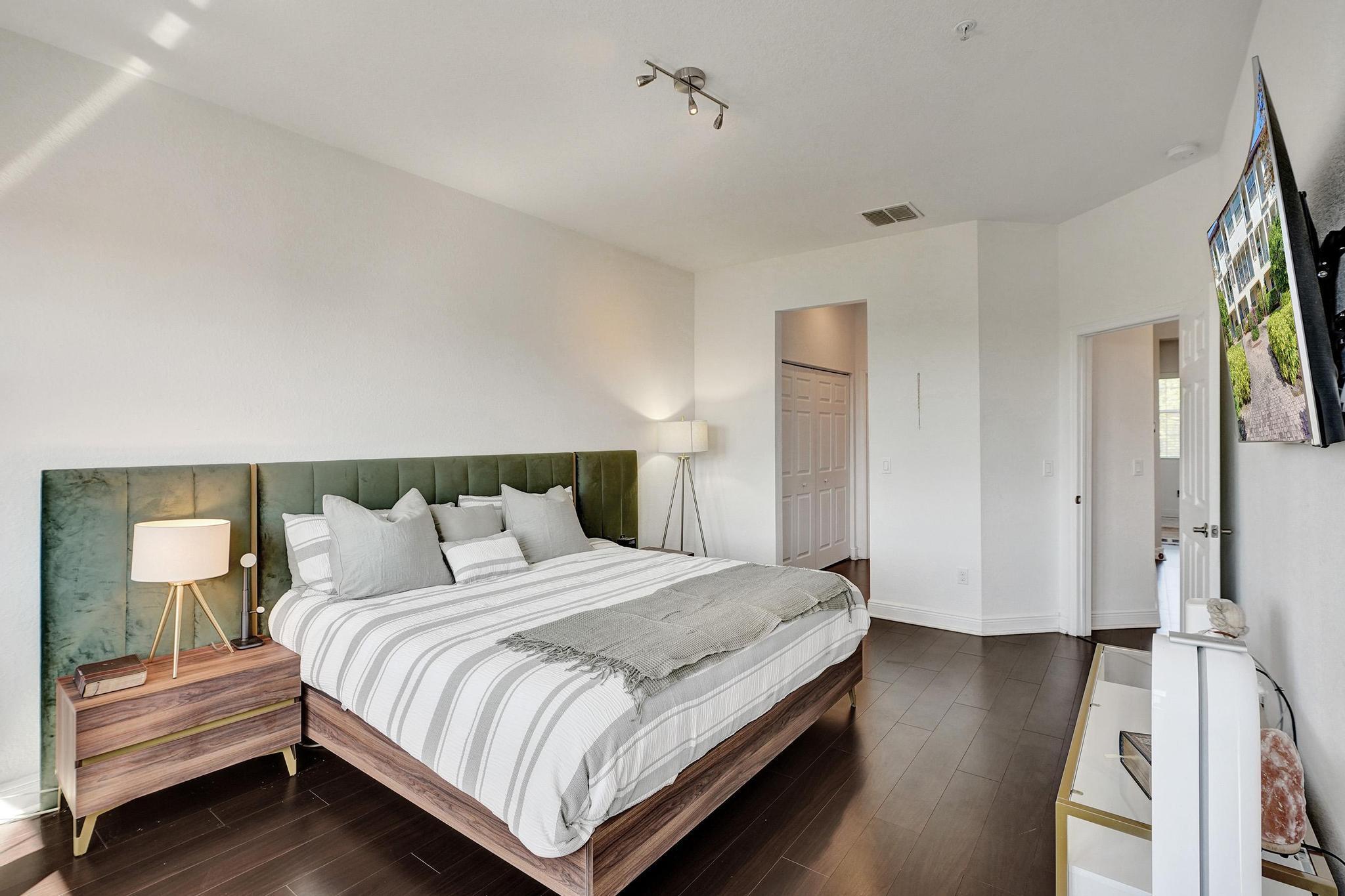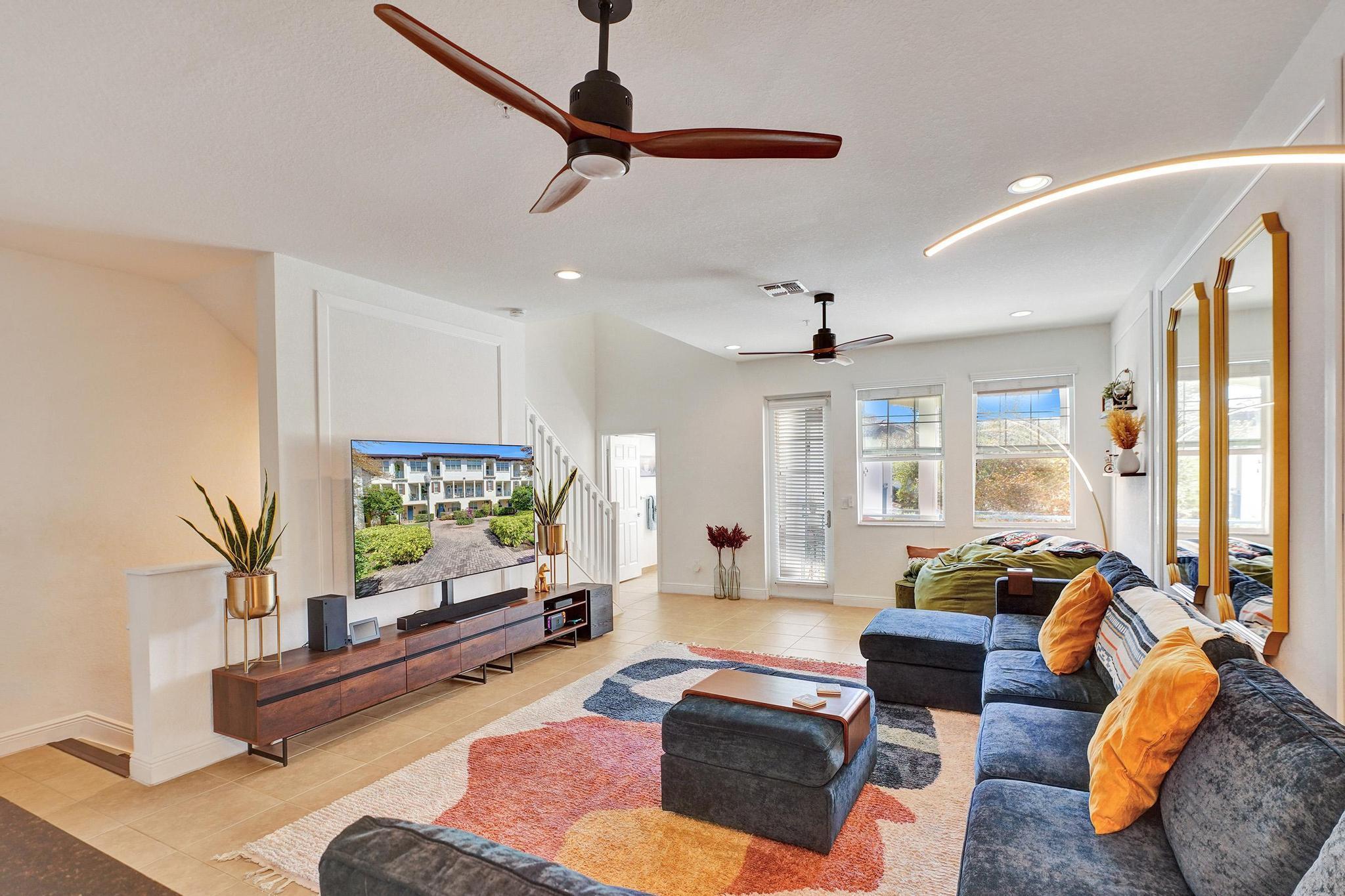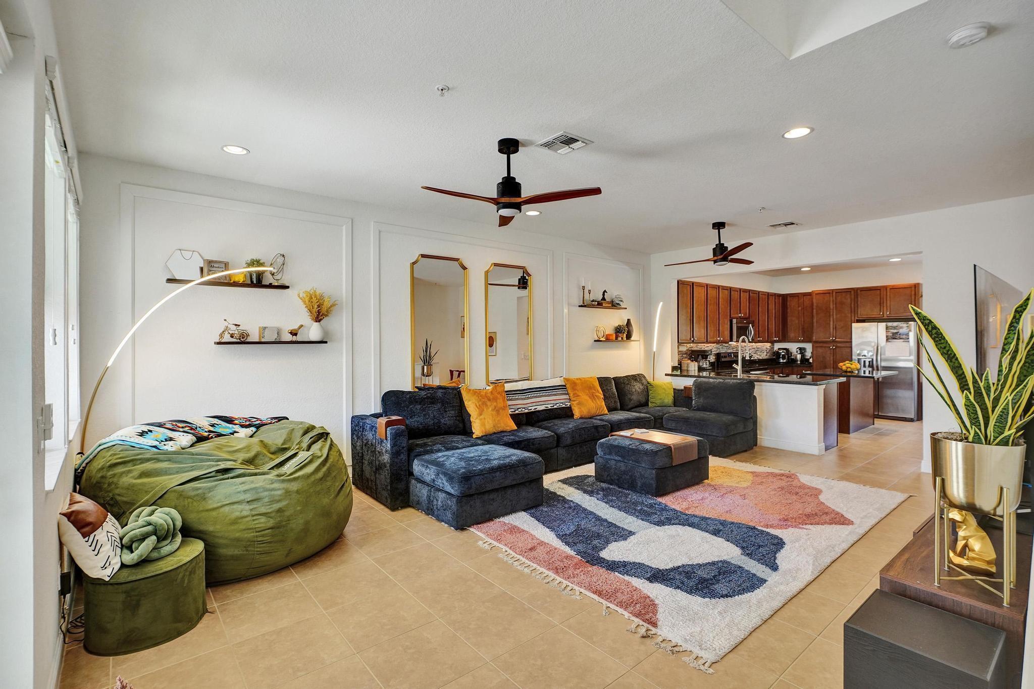 Nestled in the heart of Montclair, a coveted gated community, this pristine tri-level townhome offers 3 BR, 3.1 BA, and a 2-car garage (with EV Charger) with almost 2,100 sqft under air; one of the largest homes in the community. The gourmet kitchen boasts 42'' solid wood cabinetry, a large island, granite counters, and SS appliances.High-impact doors and windows provide security and peace. Enjoy two private balconies--one off the main living area, another off the primary suite--overlooking a serene courtyard and play area.Voluminous ceilings with sprinklers on each floor, two en-suite guest bedrooms, ample storage, wood flooring upstairs, and tile throughout. Low HOA includes cable, internet, clubhouse, gym, pool & walking paths. Schedule your showing today!