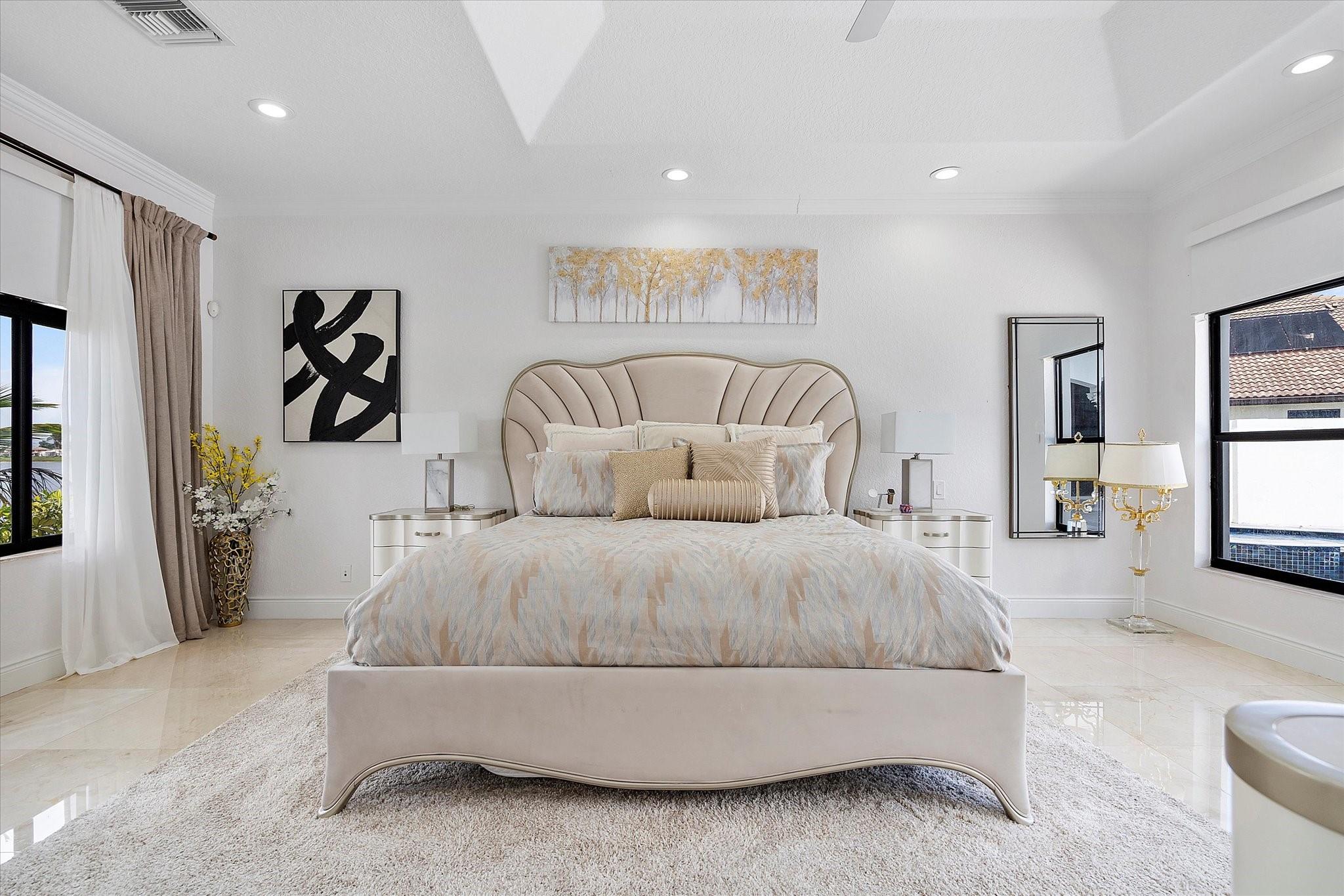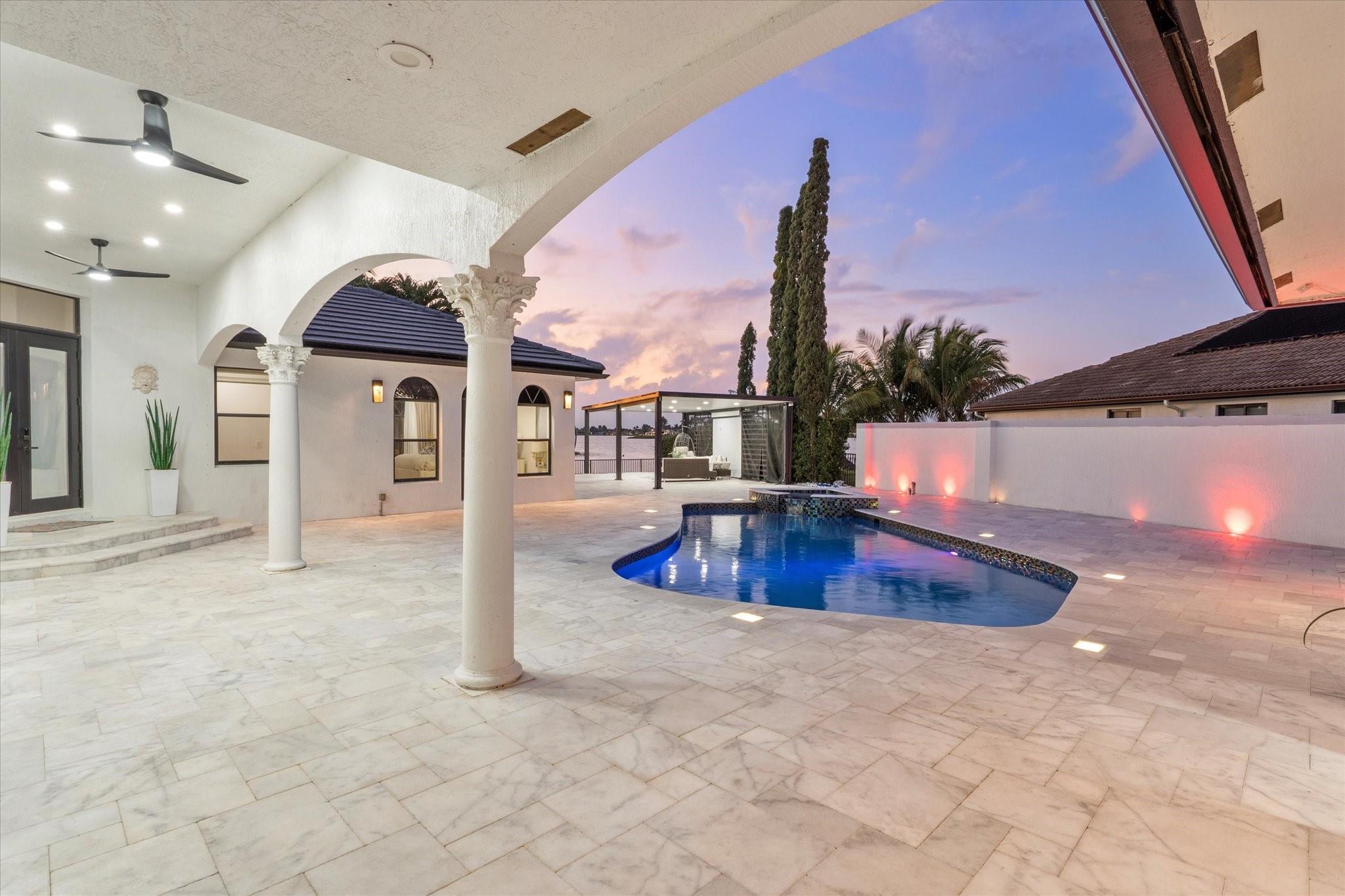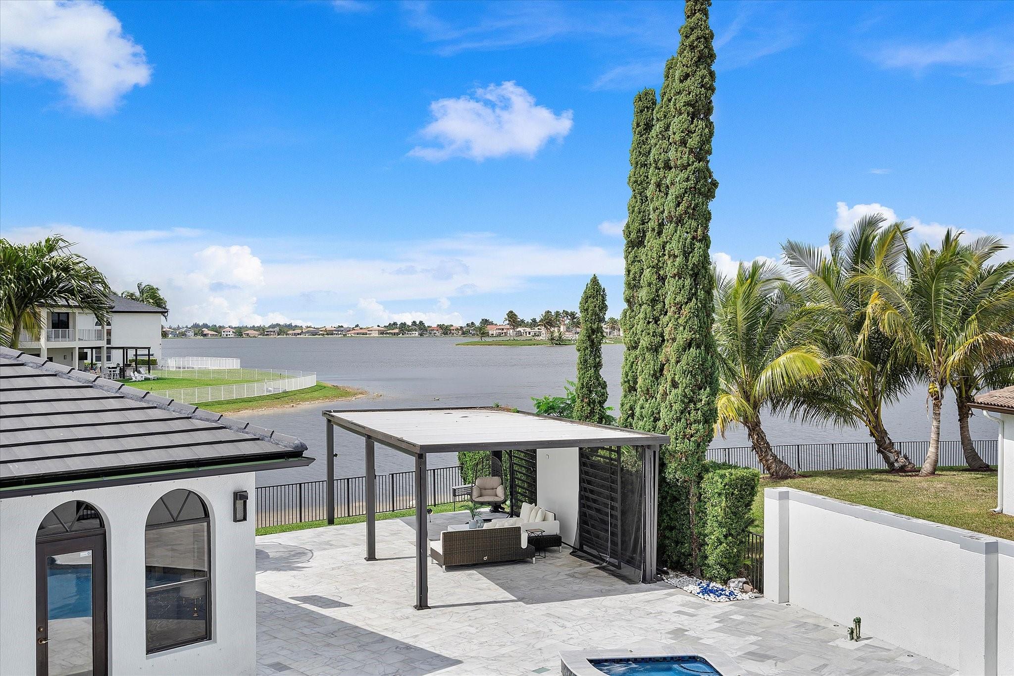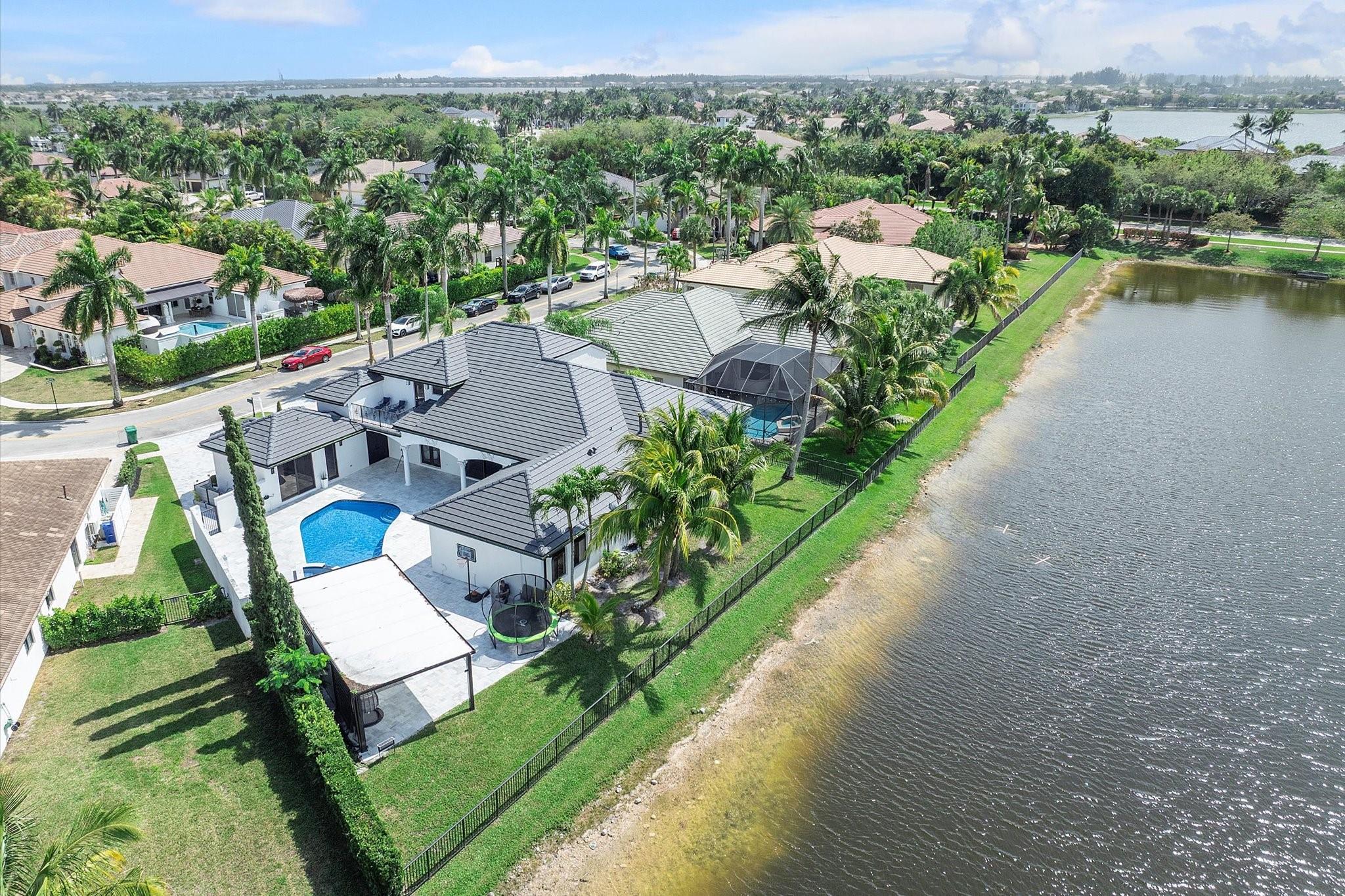 Experience luxury living in the prestigious Sunset Lakes community! This beautifully remodeled lake front home features 7-bedroom, 5-bath, an inviting courtyard with an open floor plan and elegant marble flooring throughout. Recent upgrades include NEW interior and exterior paint, a NEW tile roof, and NEW gutters. Enjoy breathtaking lake and pool views from the NEW balcony. The chef-inspired kitchen boasts modern appliances and Calcutta quartz countertops. An attached guest house with a full bath offers privacy for guests. Attached 3 car garage. Relax in the exquisite marble patio & pergola or the NEW Saltwater pool. Don’t miss this incredible opportunity! See additional features list in photos.