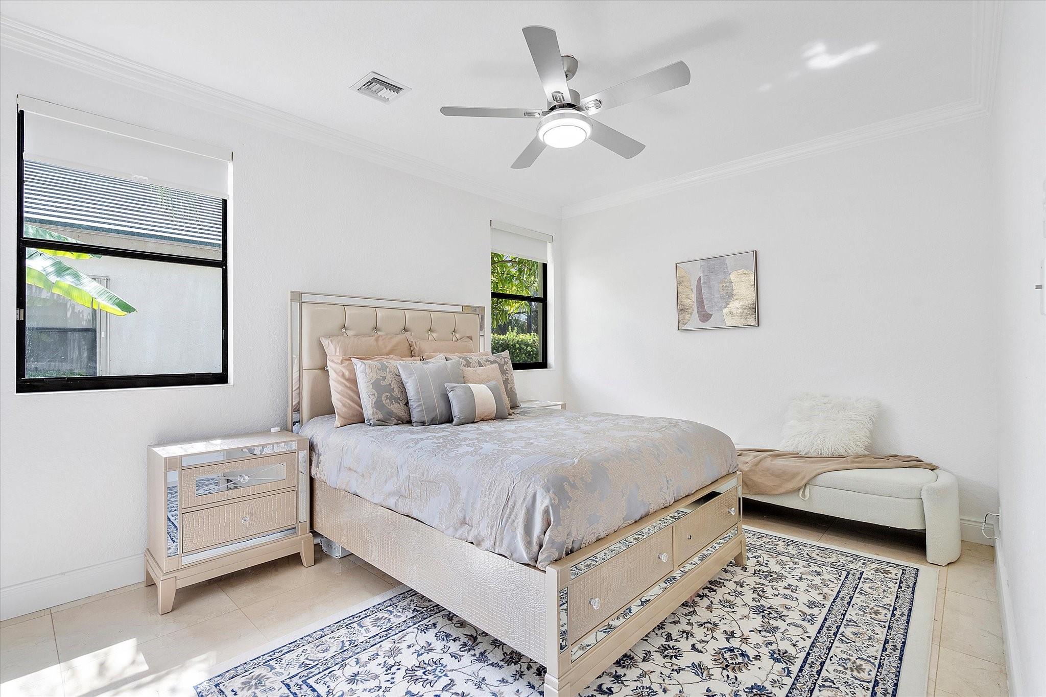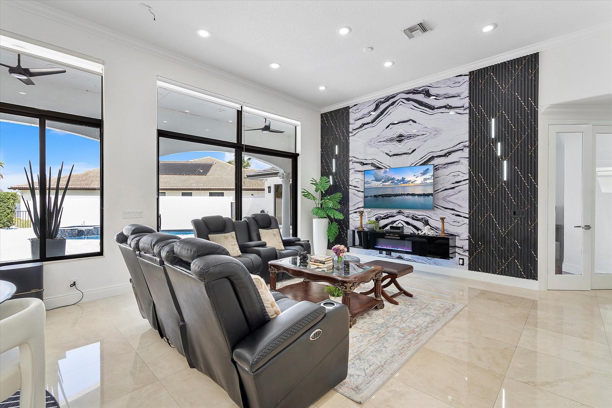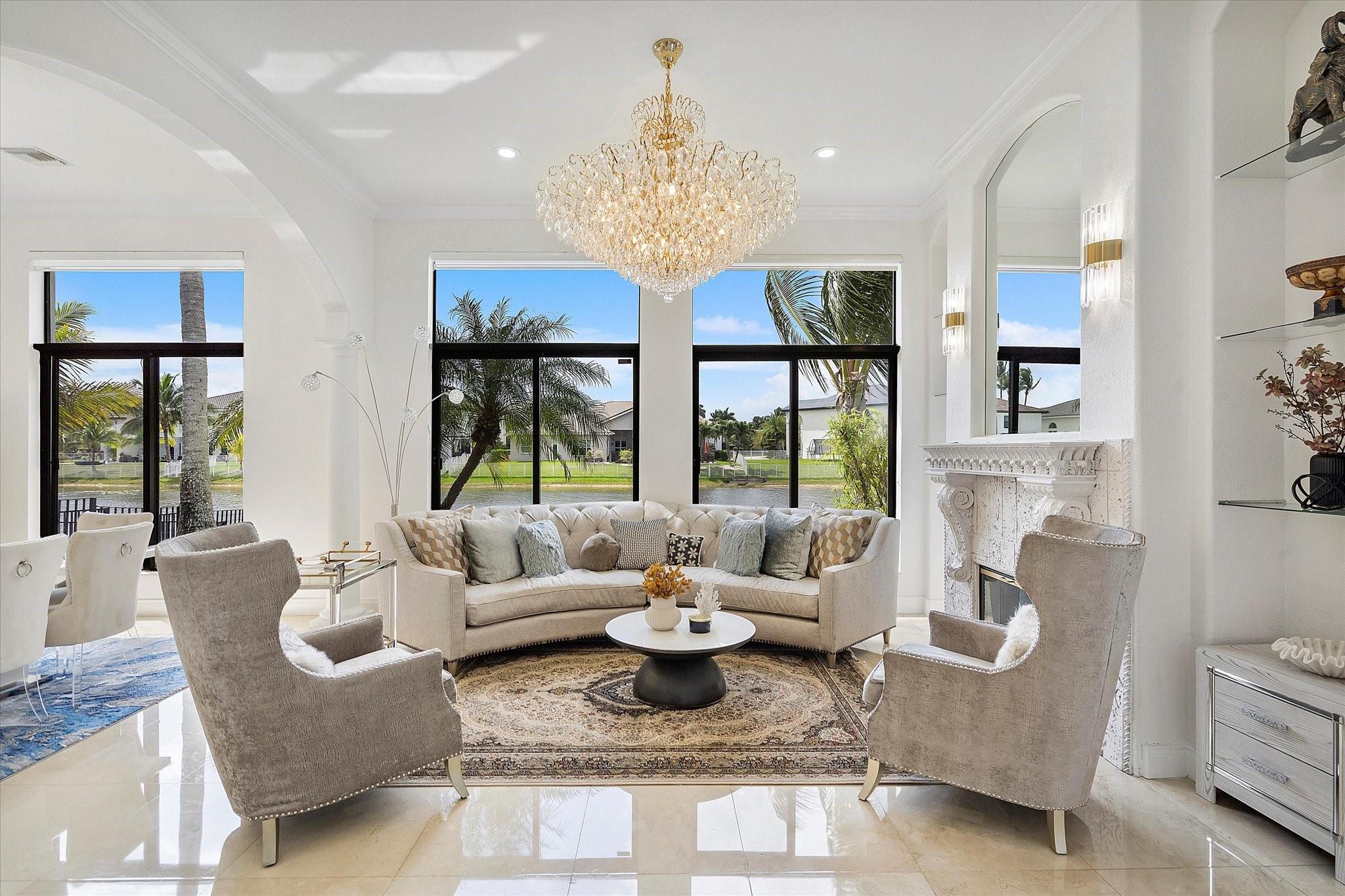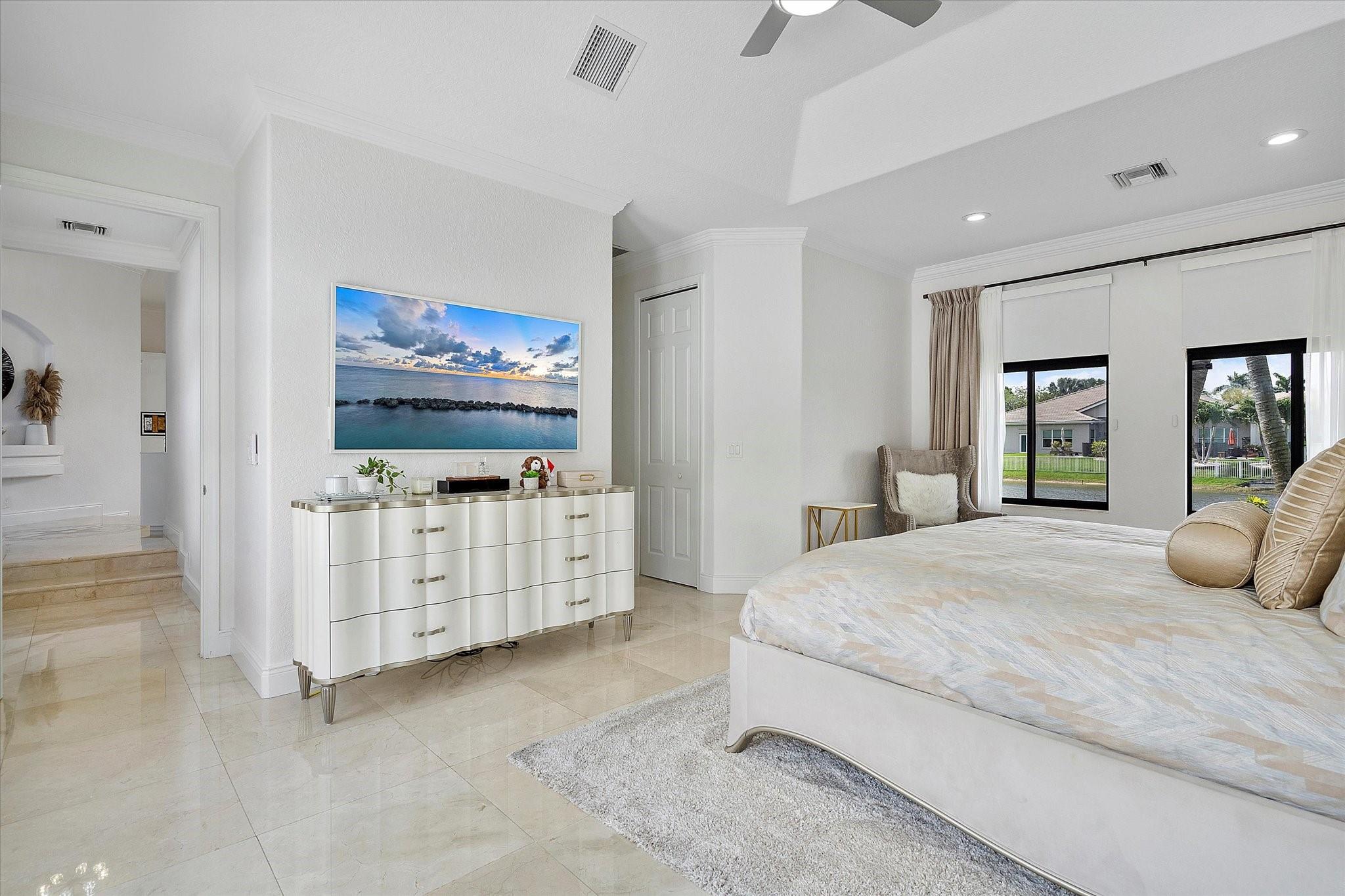 Experience luxury living in the prestigious Sunset Lakes community! This beautifully remodeled lake front home features 7-bedroom, 5-bath, an inviting courtyard with an open floor plan and elegant marble flooring throughout. Recent upgrades include NEW interior and exterior paint, a NEW tile roof, and NEW gutters. Enjoy breathtaking lake and pool views from the NEW balcony. The chef-inspired kitchen boasts modern appliances and Calcutta quartz countertops. An attached guest house with a full bath offers privacy for guests. Attached 3 car garage. Relax in the exquisite marble patio & pergola or the NEW Saltwater pool. Don’t miss this incredible opportunity! See additional features list in photos.