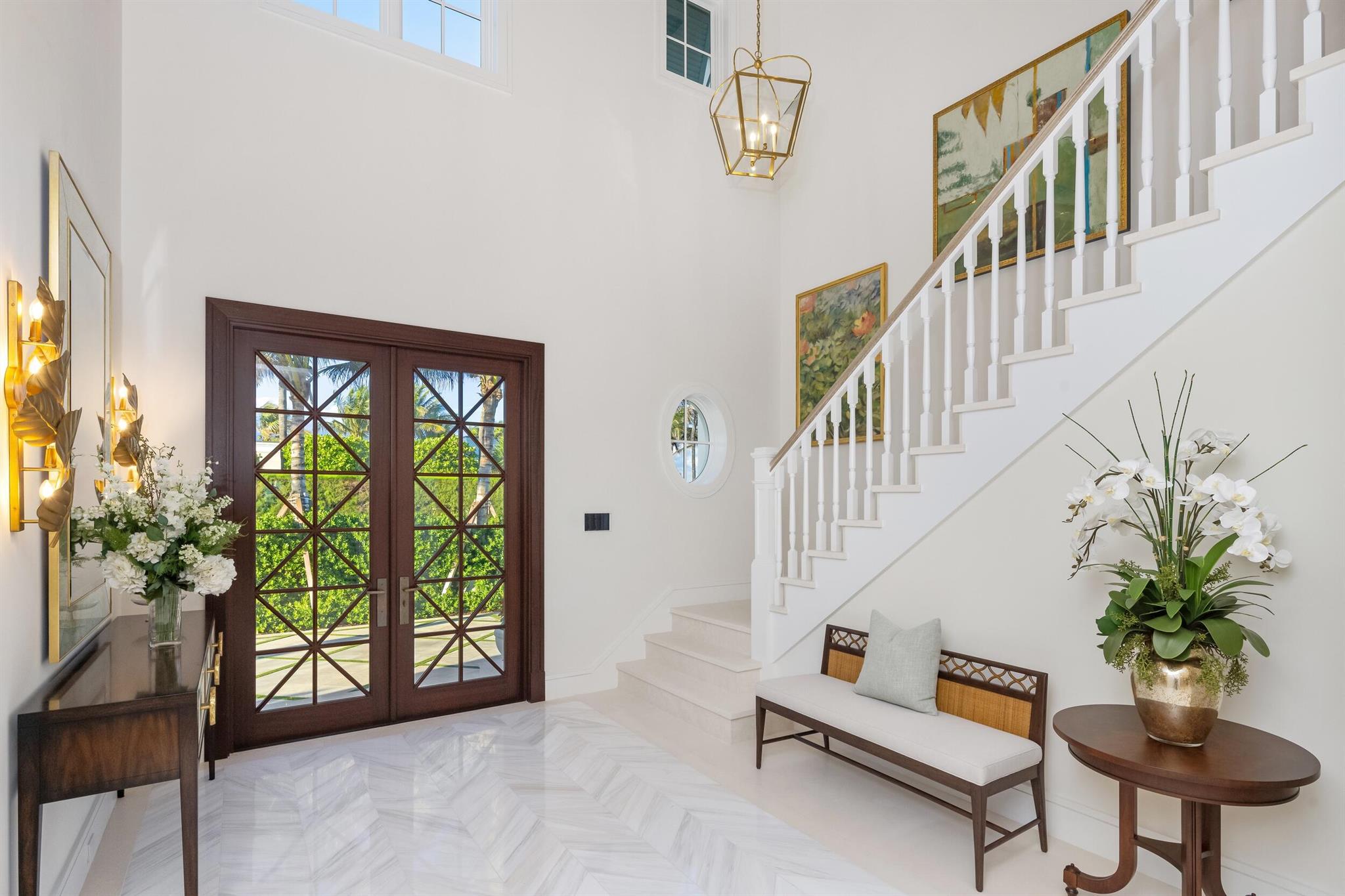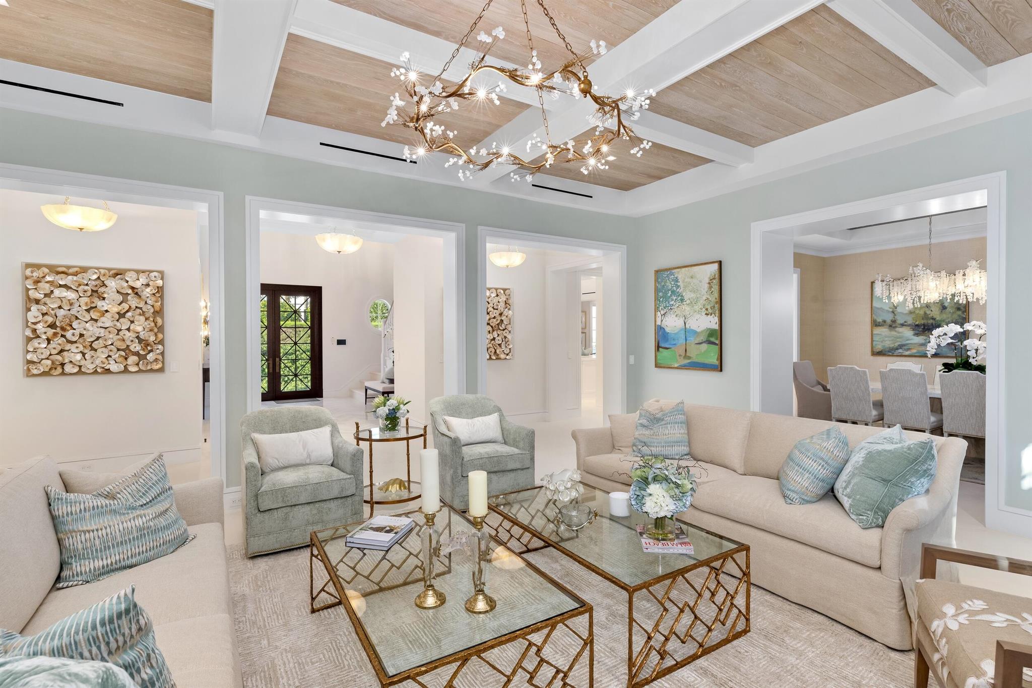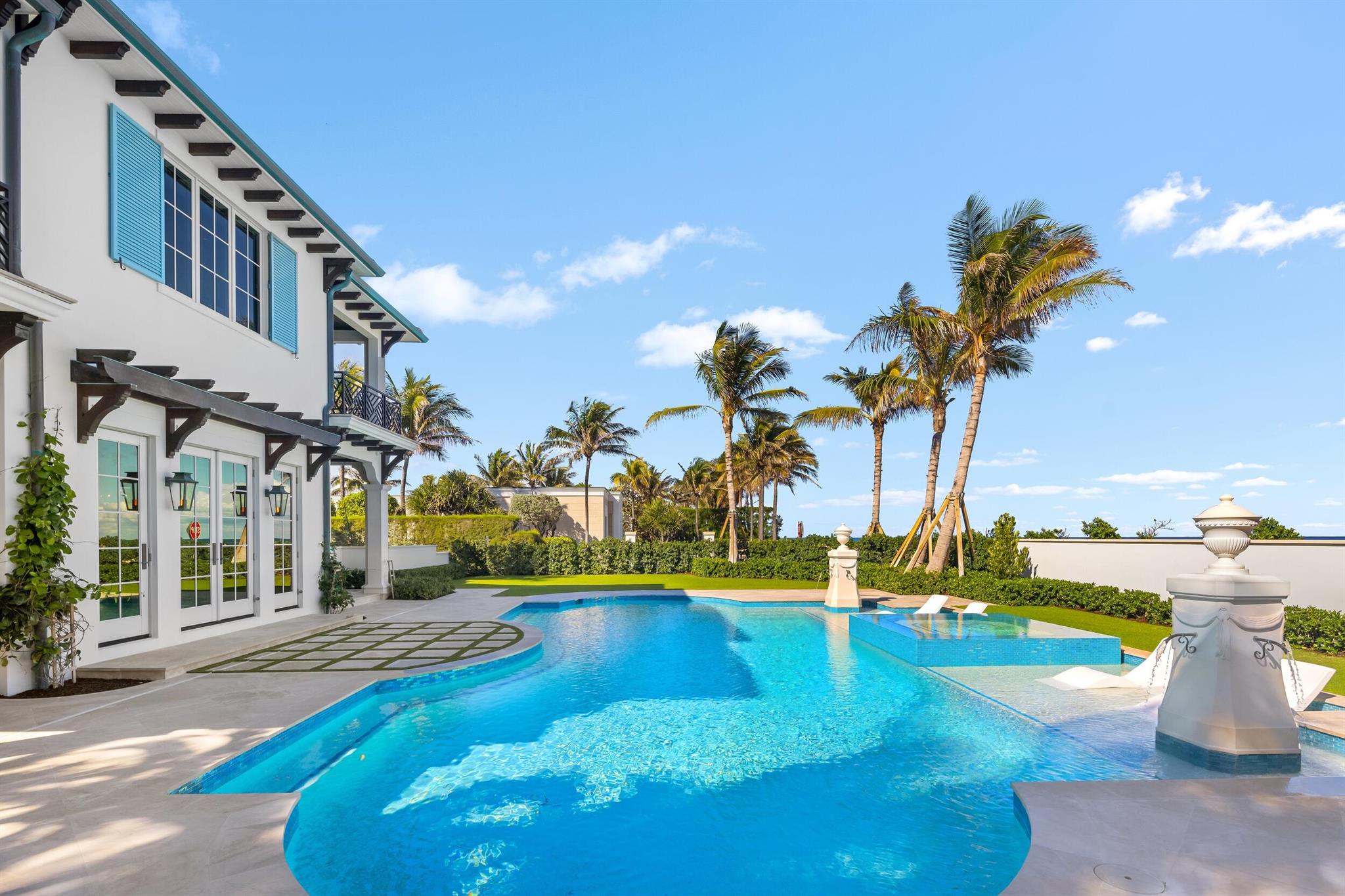 Spectacular, Newly Built Oceanfront Estate with 6 bedrooms, 7 full baths, 1 powder room, and sweeping views of the Atlantic Ocean. This immaculate British West Indies home features beautiful finishes throughout including stunning hardwood and marble flooring, detailed ceilings, and exemplifies the highest standard in craftsmanship and attention to detail. Welcoming foyer leads to the formal living room with gorgeous, beamed ceiling. Chef's kitchen with top-of-the-line appliances, large U-shaped island with seating for 6, and breakfast area with peeks of the ocean. Additional interior highlights include formal dining room, light-filled family room, and office with floor-to-ceiling built-ins. Elegant, oceanfront Primary Suite features sitting room, dual bathrooms, and dual walk-in closets.