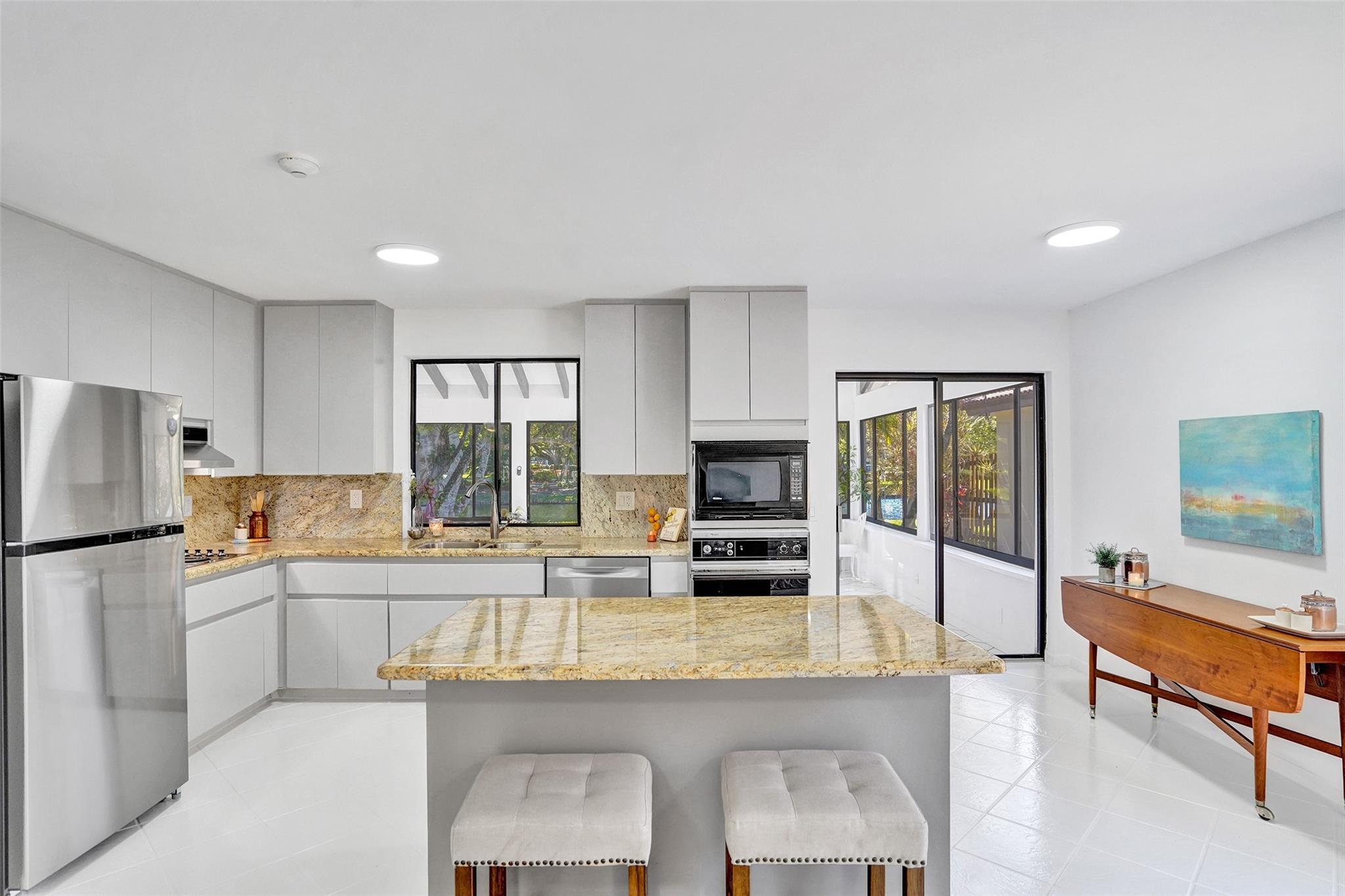 ABSOLUTELY GORGEOUS, light, bright, meticulous 3/2/2CG LAKEFRONT home in historic Country Isles with stunning glass-enclosed tiled SUNROOM w/BRAND NEW AC that extends the living area to 2128 SF! Picturesque backyard overlooks a magnificent park w/huge trees & lake views that glisten in the afternoon sun. NEW 2025 UPDATES include BRAND NEW BATHROOMS, entire interior painted, NEW SMOOTH flat finish ceilings, NEW LED lighting, NEW fans & coach lights, NEW sunroom AC, freshly painted garage floors w/bench, fresh landscape. ALL BRAND-NEW stainless appliances, incl double oven (4/25). W/D 2023, water heater 2019, roof 2006. White tile in living areas. Primary suite has a large walk-in closet; kids wing off family room area. Nearby comm pool, park, Athletic Club, Weston Town Center, top schools!