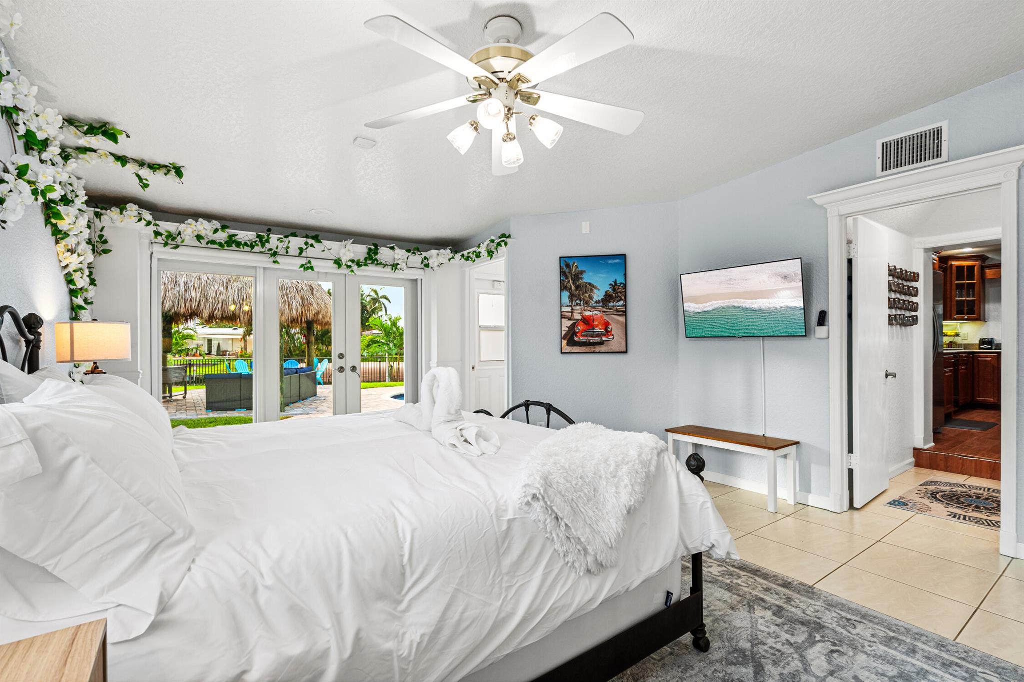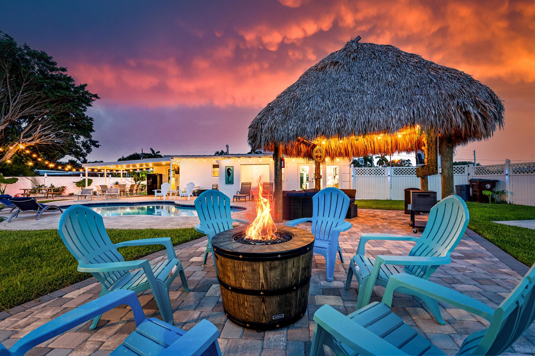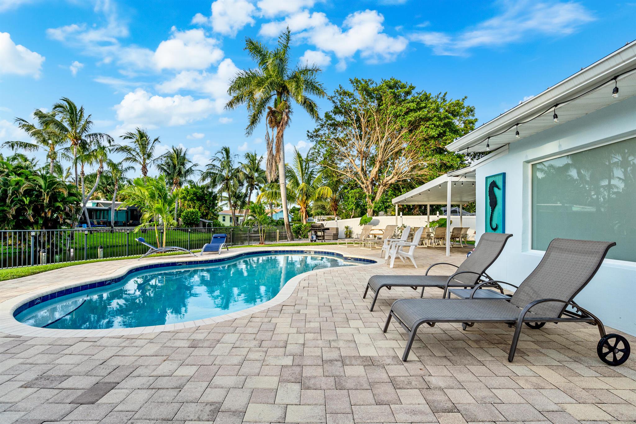 Discover this stunning waterfront 4bd 3bth short-term rental pacing to generate over $120,000 in its first year and more than $50k in future reservations already secured. Recently renovated, it features a heated saltwater pool, tiki hut, custom putting green, covered patio, concrete pad for your boat or RV, 150-foot seawall, dock, impact windows and doors, crown molding, and a newer metal roof. With negotiable furniture, a perfect 5-star rating on Airbnb and VRBO, and prime location minutes from I-95, Downtown WPB, beaches, shopping, and dining, this is a turnkey investment you don't want to miss!