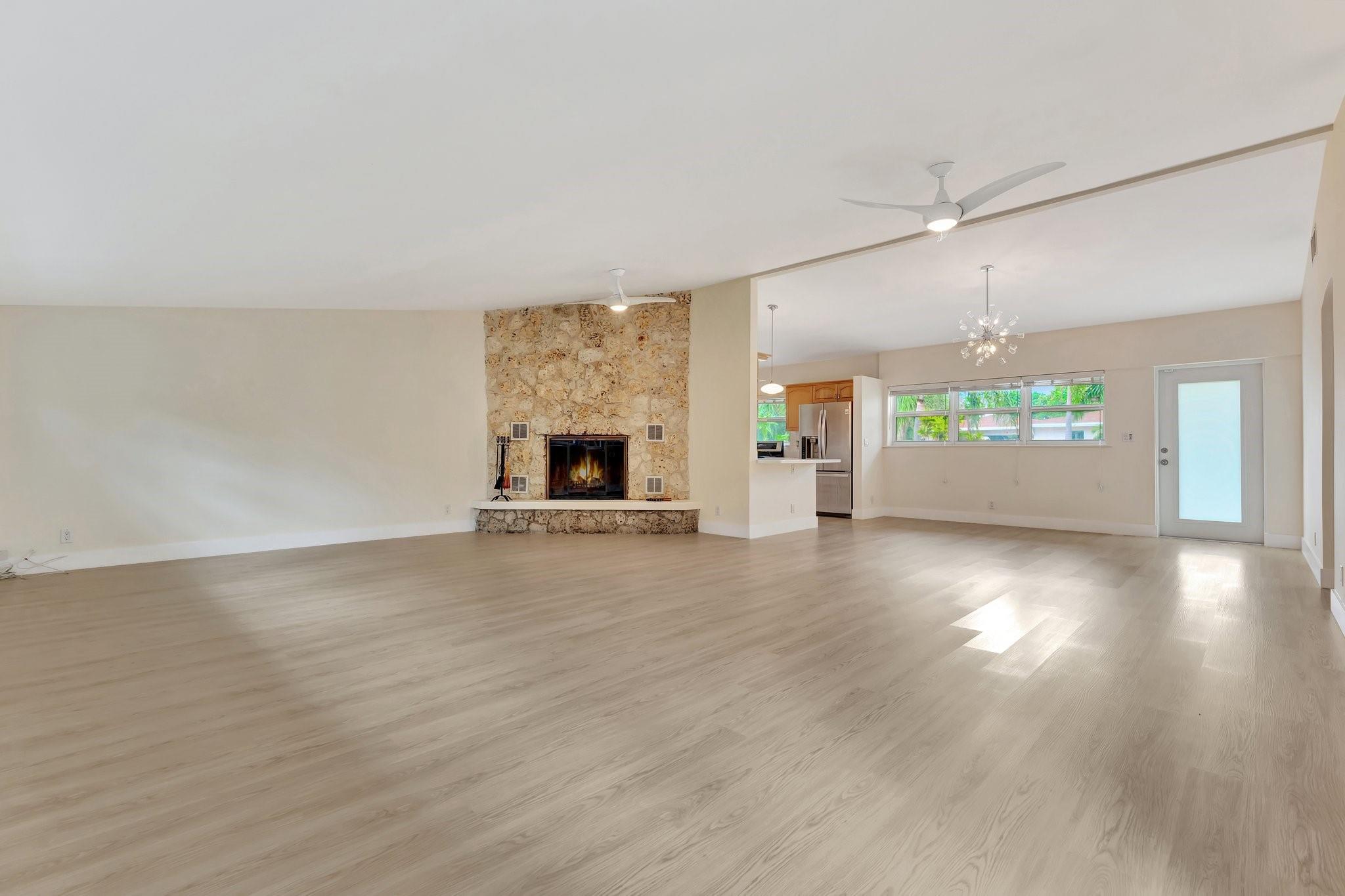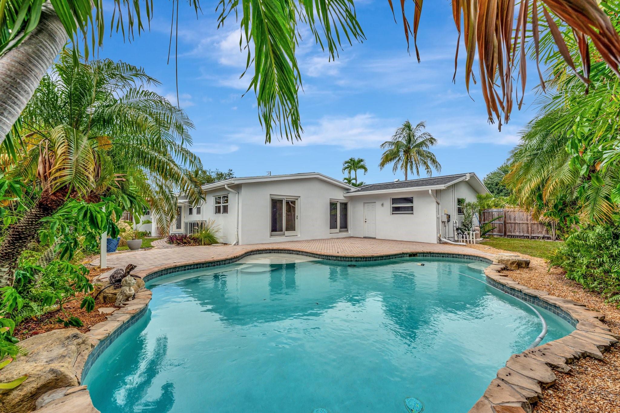 PRICED TO SELL. Amazing Location east of US1, Ideal for Investors! Located 1 mile from the beach, Alsdorf Boat Launch and Pompano Golf Course. This 3-bed, 2-bath home sits on a 10,000+ sq ft lot with no HOA, offering ample parking for your boat, jet skis, and golf cart. The open-concept living area features vaulted ceilings and a stunning coral fireplace. Enjoy a resort-style pool with a large patio, plus room for a tiki hut, outdoor kitchen, or playground. Recent updates include new roof (2022), AC (2014), water heater (2022), and electrical panel (2022). Impact windows/doors, solar pool equipment, and a 2-car garage. Possible 27' boat dock available across the street.
