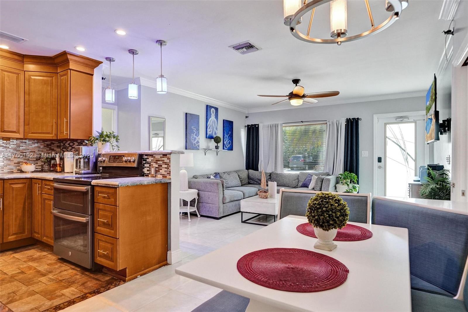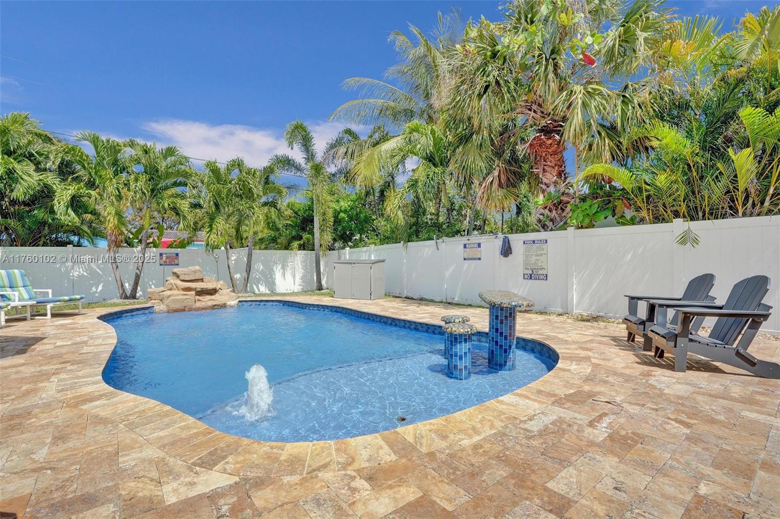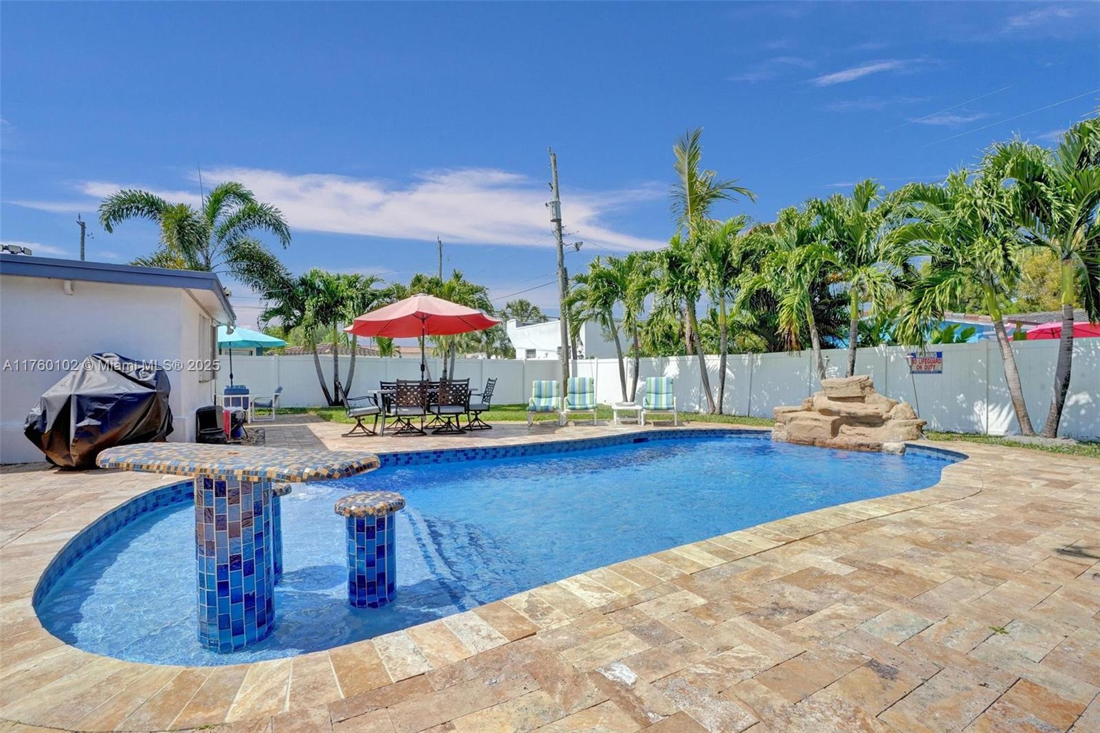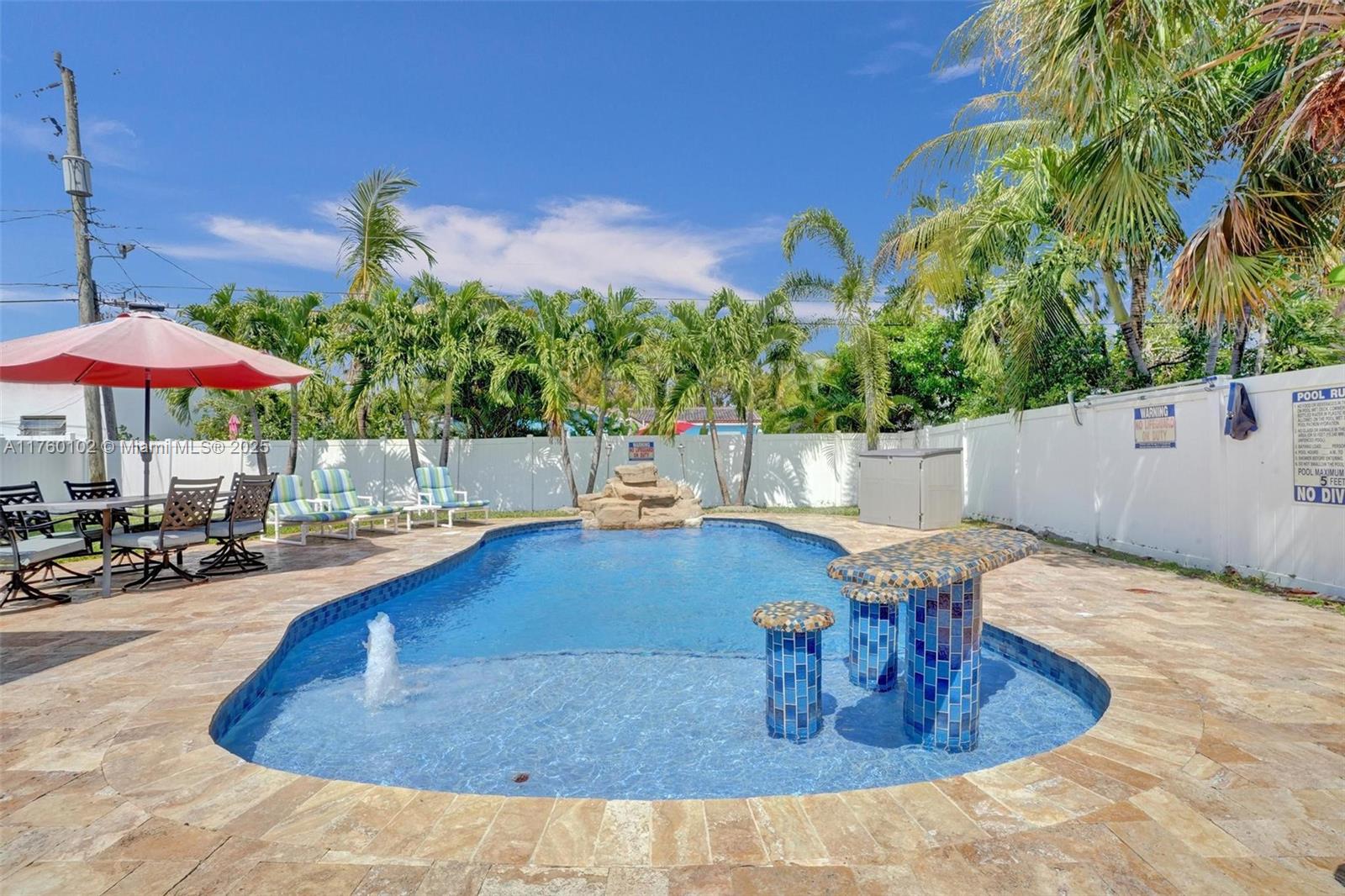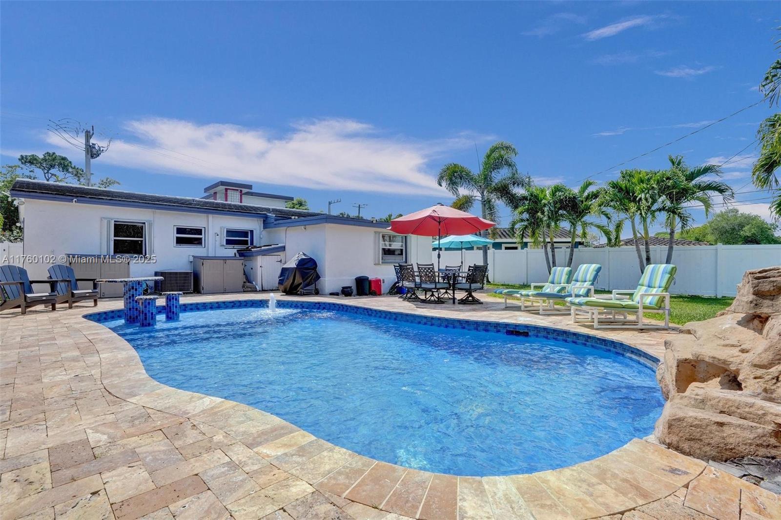 This beautifully updated 4-bed, 4-bath pool home offers modern elegance with a newer Bahama tile roof, AC, fencing, and pavered driveway. Three bedrooms feature private entrances to the pool, while the open floor plan maximizes space and versatility. The sleek, renovated kitchen boasts brand-new appliances, and all four bathrooms have been stylishly upgraded. A double master split layout provides privacy, perfect for multi-generational living or rental potential. The spacious, private backyard is a true South Florida retreat. Conveniently located near highways, shopping, and Wilton Manors’ vibrant scene. Currently functioning as a highly profitable STR demanding $450/night and generating a great cashflow. This home is perfect for someone seeking part-time residence and revenue.