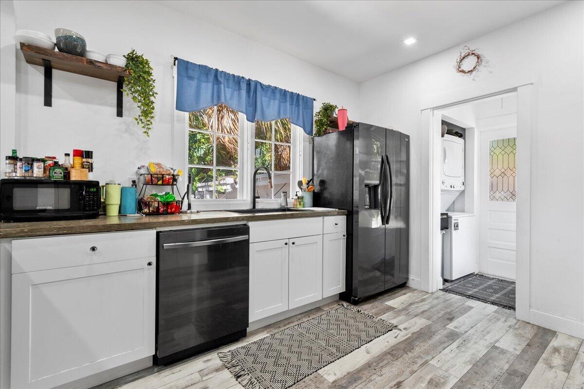 Welcome to your slice of paradise in West Palm Beach! This charming Key West-style home features a spacious floor plan that blends modern comfort with tropical charm. Inside, you'll find rustic floors leading to an opulent living area and a beautifully appointed kitchen with stainless steel appliances and concrete countertops, perfect for entertaining. The home includes three generous bedrooms, a spa-like shower, a half-bath ensuite, under-3-year-old roof, newer HVAC unit, and indoor laundry. Natural light fills the space through large windows. Step outside to your private oasis with a covered porch and lush landscapinga"ideal for gatherings or quiet evenings. Located minutes from pristine beaches, I-95, vibrant dining, and CityPlace shopping. Embrace the laid-back island lifestyle!