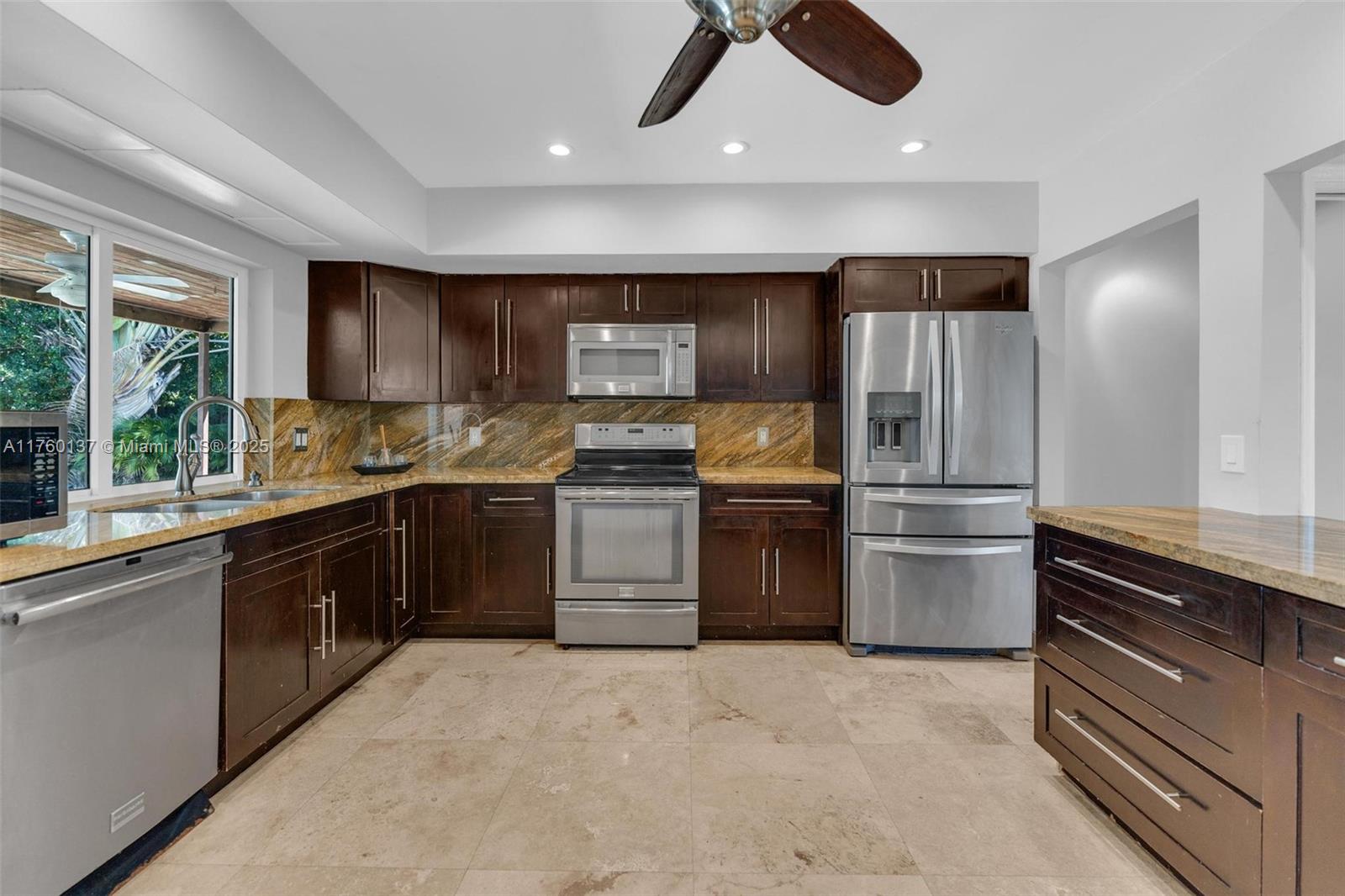 OPPORTUNITY KNOCKS! A true 4-bedroom, 2-bathroom (1 Cabana bath), 1 car garage pool home situated on OVER 10,000+ Sq Ft lot! Interior offers a DESIRED SPLIT BEDROOM DESIGN with marble tile flooring & recessed lighting throughout. Open floor concept with well-appointed kitchen & spacious living. WORRY FREE items include NEW ROOF, NEW A/C, NEW PVC PLUMBING THROUGHOUT, & COMPLETE IMPACT WINDOWS / DOORS. Exterior features a paver circular driveway in the front with a one car garage in the back & plenty of space for an RV or boat. Backyard oasis made ideal for entertaining with a large, covered patio, oversized pool, coral tile & mature tropical landscaping. Centrally located with easy access to all places of interest.