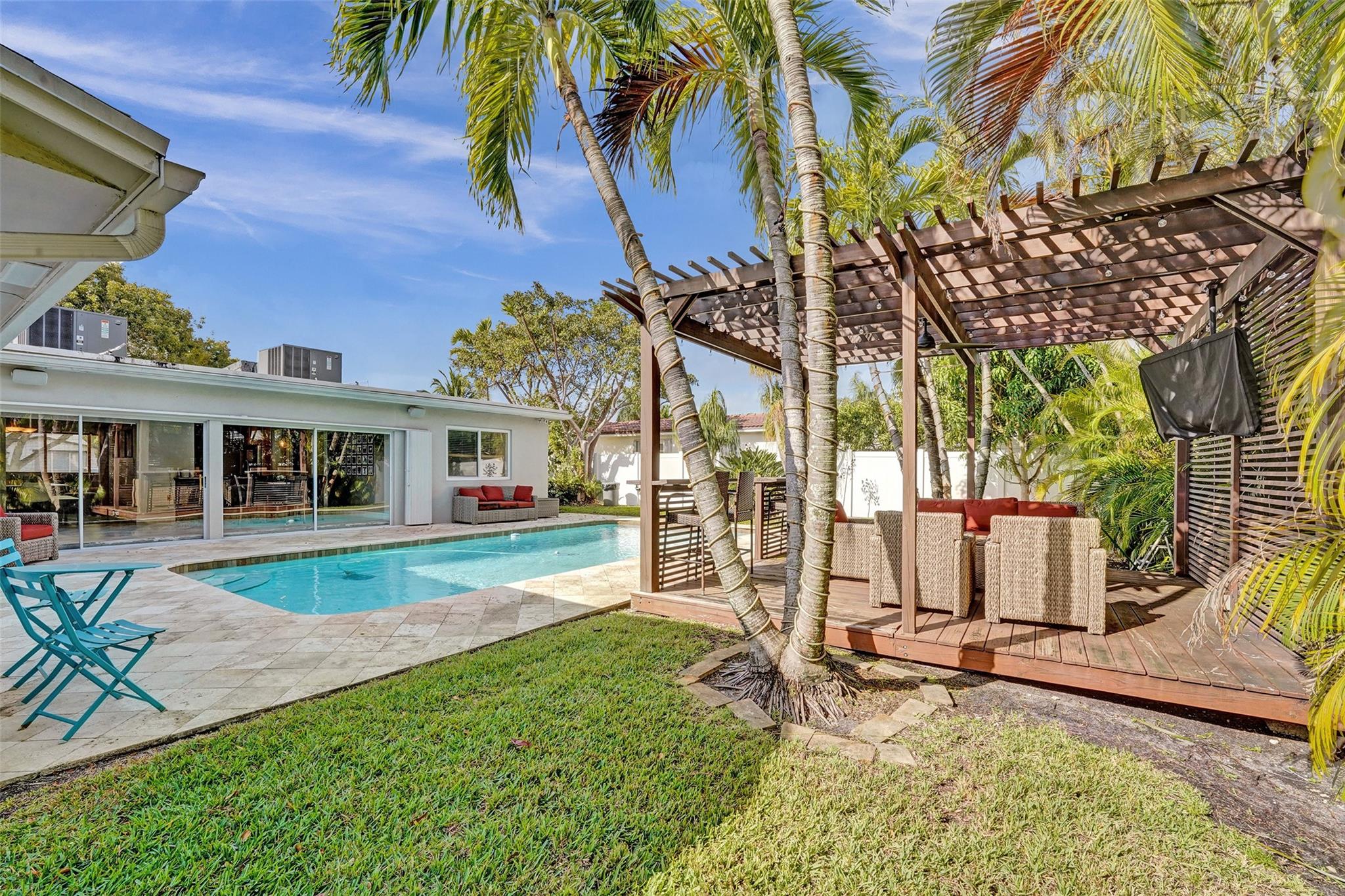 HOLLYWOOD HILLS home on CORNER LOT offers a perfect BLEND OF MODERN UPGRADES & CLASSIC CHARM. The LG backyard is a TRUE OASIS, NEW PERGOLA w/power, ideal for entertaining or enjoying serene outdoors. Inside, the spacious layout enhances flow & functionality. The living areas have TONS of NATURAL LIGHT creating a warm & inviting atmosphere. The primary BD offers 2 closets, including a WALK-IN that provides storage. REMODELED 2nd BR adds a TOUCH OF ELEGANCE w/ its dual sinks & a beautifully designed shower, catering to both comfort & style. Additionally included a NEW AC & DISHWASHER. FANTATSTIC VIEWS of the backyard & thoughtful design, this home is perfect for anyone wanting a VOBRANT NEIGHBORHOOD & a BIT OF PARADISE. Close to Hwys, beaches, grocery, restaurants, airports. SEE NOW!
