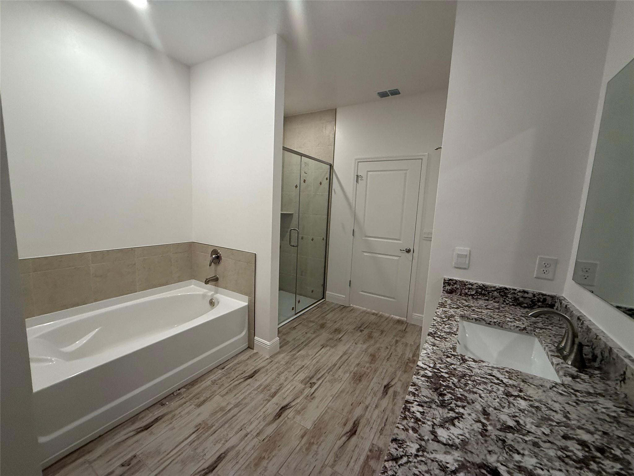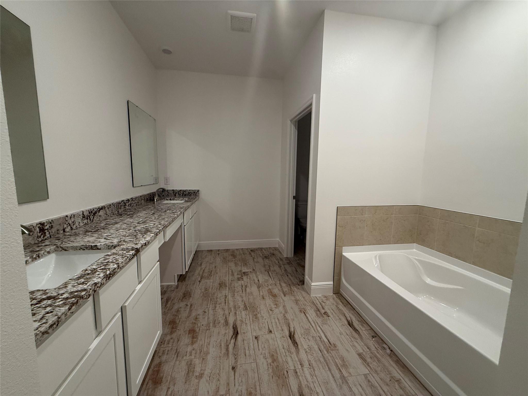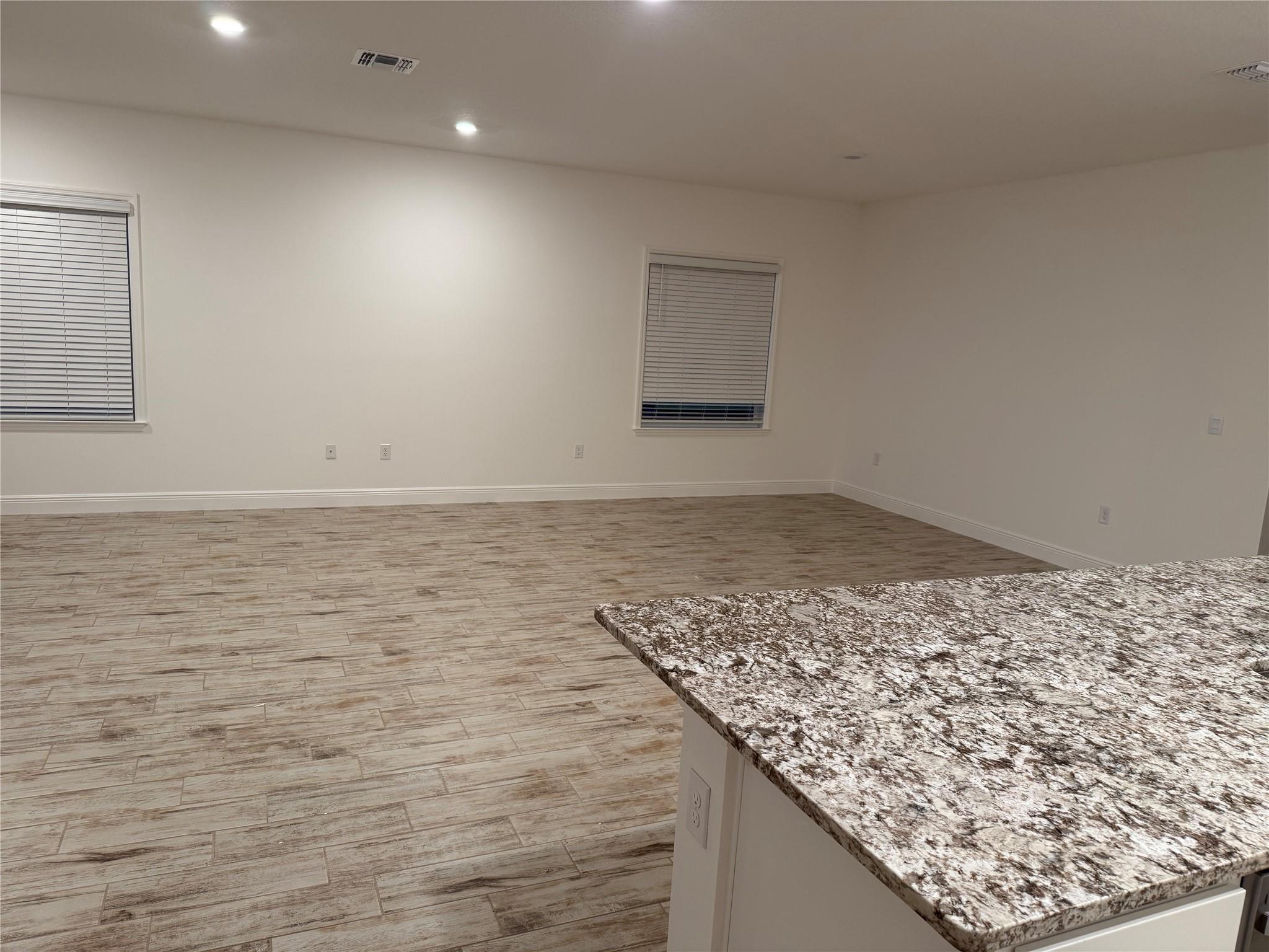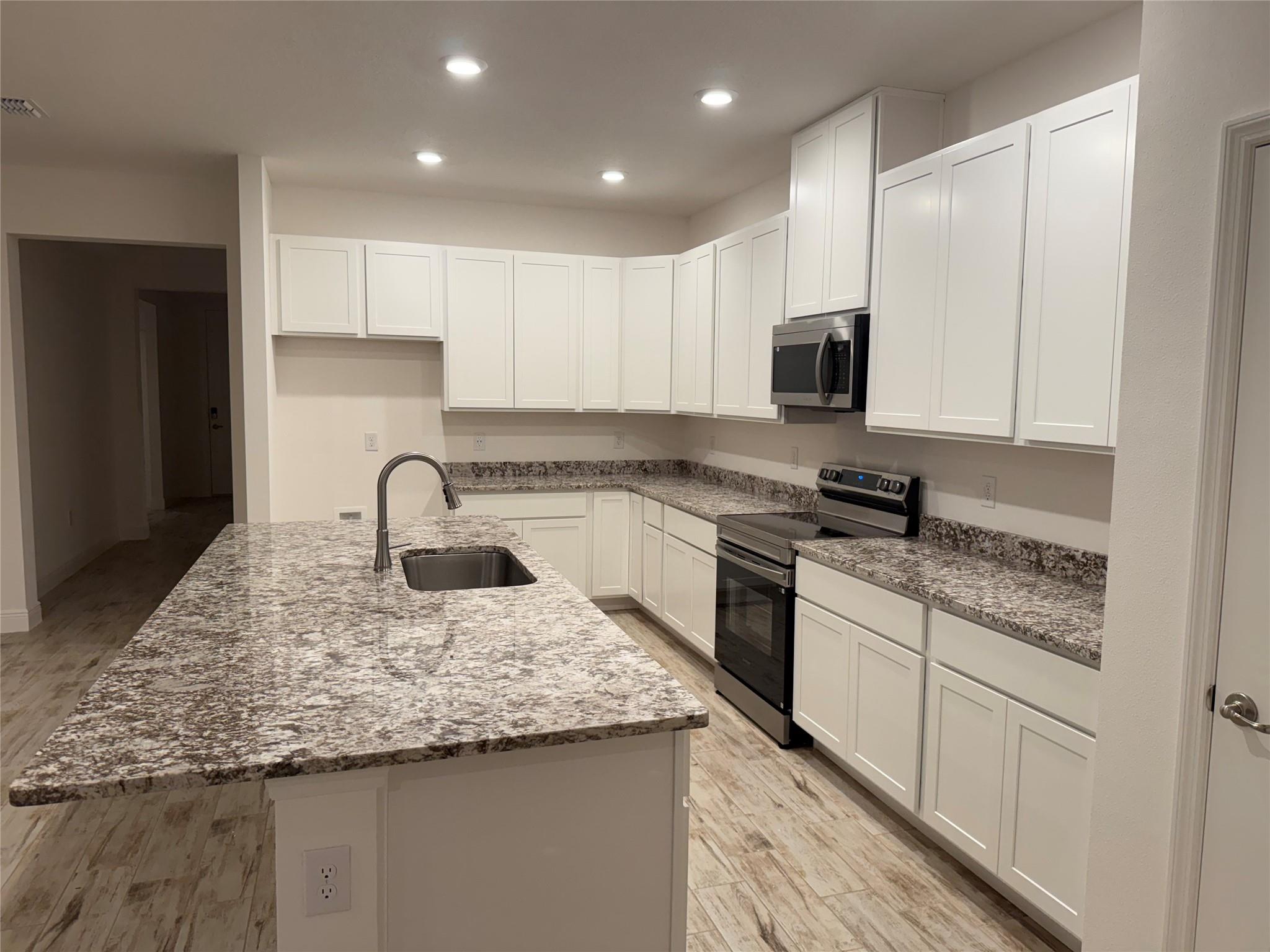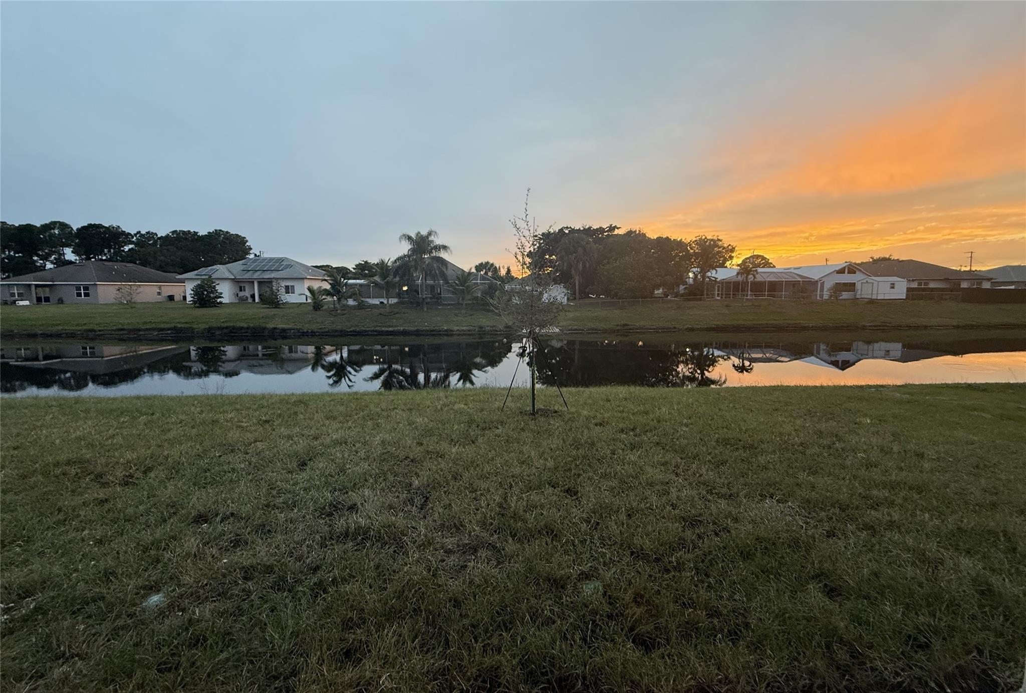 Waterfront canal views set the stage for the breathtaking Miramar, a home that blends elegance, comfort, and modern convenience. Its striking elevation, complete with a covered front entry, welcomes you into an open, airy floor plan featuring soaring 9'4" ceilings & sleek ceramic tile throughout. The great room is shows off natural light from a large window, complemented by LED lights for a bright & inviting atmosphere. The kitchen is a showstopper, boasting gorgeous quartz countertops, perfect for hosting & everyday enjoyment. The master suite is a private retreat, offering a luxurious bath with a tile shower enclosure, a separate soaking tub & a perfectly placed linen closet.