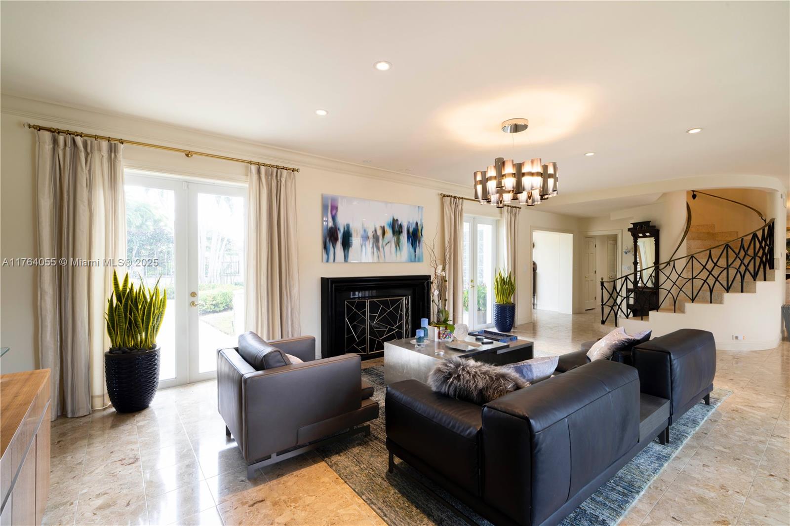 Unmatched waterfront living from this Palm Beach style 6BD, 5.5BA home on prestigious Pinetree Drive Circle! on a coveted quiet street, this home is perfect for entertaining & boasts 4,642 SQ.FT. (larger than tax roll) of living space, an oversized 16,500 SF lot, 102ft of protected water frontage (no fixed bridges), gated backyard w/pool, coral stone facade , huge circular driveway w/ 2-car garage w/electric car charging stations, & courtyard w/fountain. The elegant interiors are replete w/stunning architectural details, a gorgeous spiral staircase, fireplace, high ceilings, impact windows, eat-in gas kitchen w/breakfast bar, & 4 balconies! Amazing family-friendly floor-plan w/4BD/3BA up, & 2BD/2.5BA down (great for office/staff).