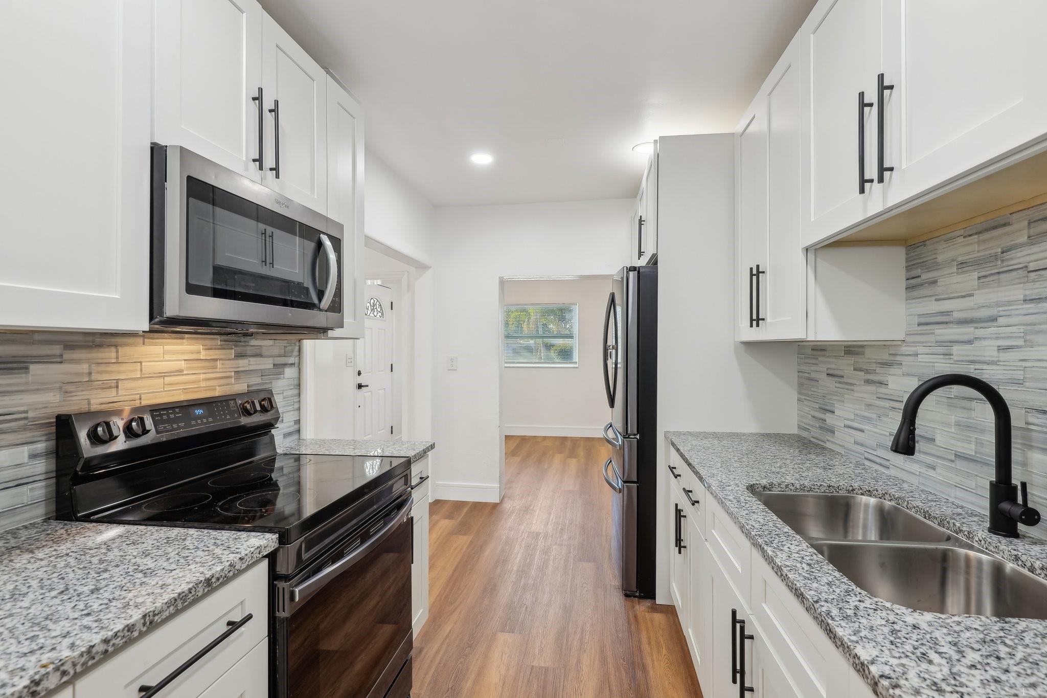 This fully remodeled home offers a fresh, modern living space, ideally located near place of worship and Aventura Mall. Brand new kitchen boasts recessed lighting, sleek white wood cabinetry, and premium quartz countertops, complemented by top-of-the-line stainless steel appliances. All windows have been replaced with energy-efficient and a brand new AC. Updated full-size bath features a complete stylish floating vanity. New luxury vinyl flooring and fresh baseboards further enhance the home's modern aesthetic. The extended driveway provides ample space and the opportunity for customization to suit your needs. Enjoy privacy in the spacious backyard, which backs onto a quiet, secluded rear alley. The roof was replaced in 2006, comes with a seller's credit toward a roof replacement.