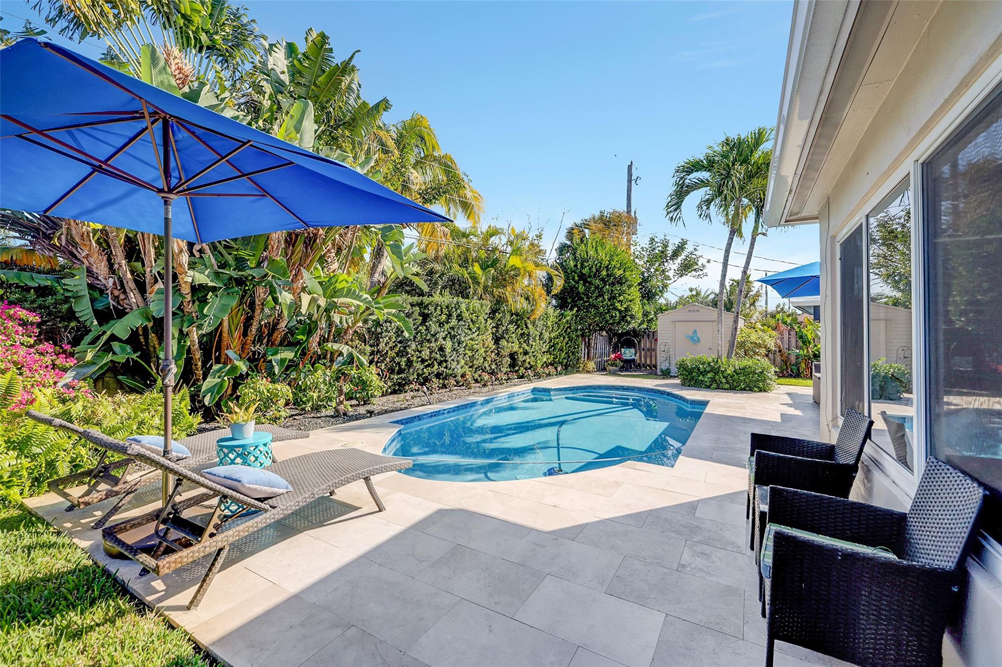 Completely updated pool home in the sought-after Lyons Park community of Pompano Beach! This move-in-ready home features hurricane-impact windows and doors, an open kitchen with white cabinetry, stainless steel appliances, and granite countertops. Both bathrooms are fully updated. Enjoy a beautiful backyard with a travertine pool deck, a pool, and a fully fenced yard—perfect for entertaining. No HOA! Conveniently located near the newly renovated Pompano Beach Pier, shopping, and dining. Sprinkler system on a well. One car carport and shed for storage.