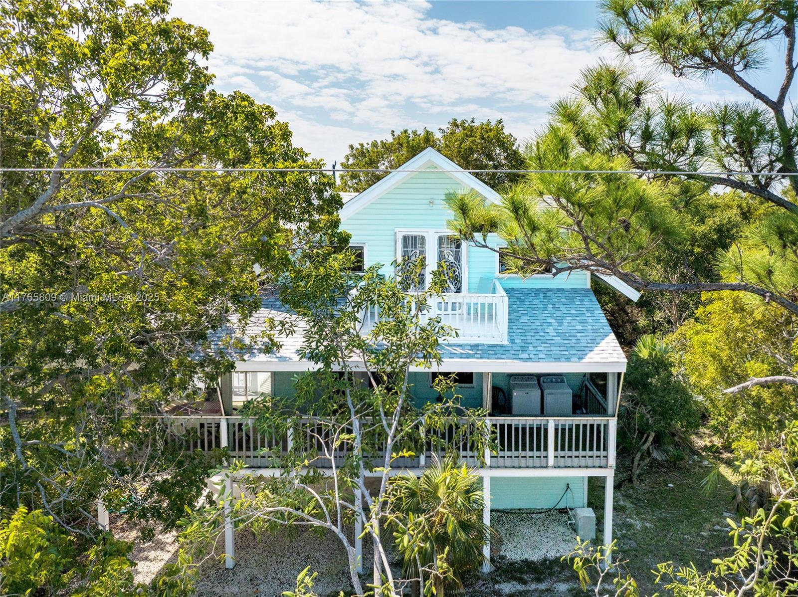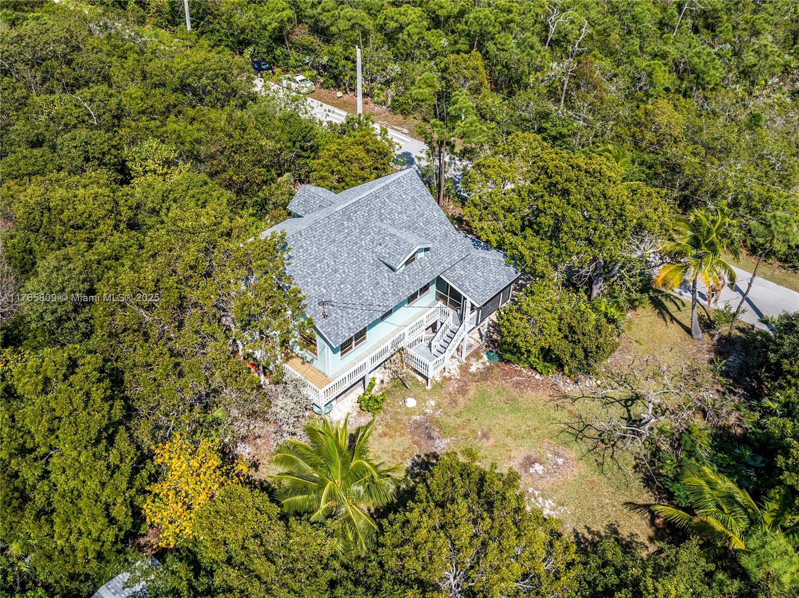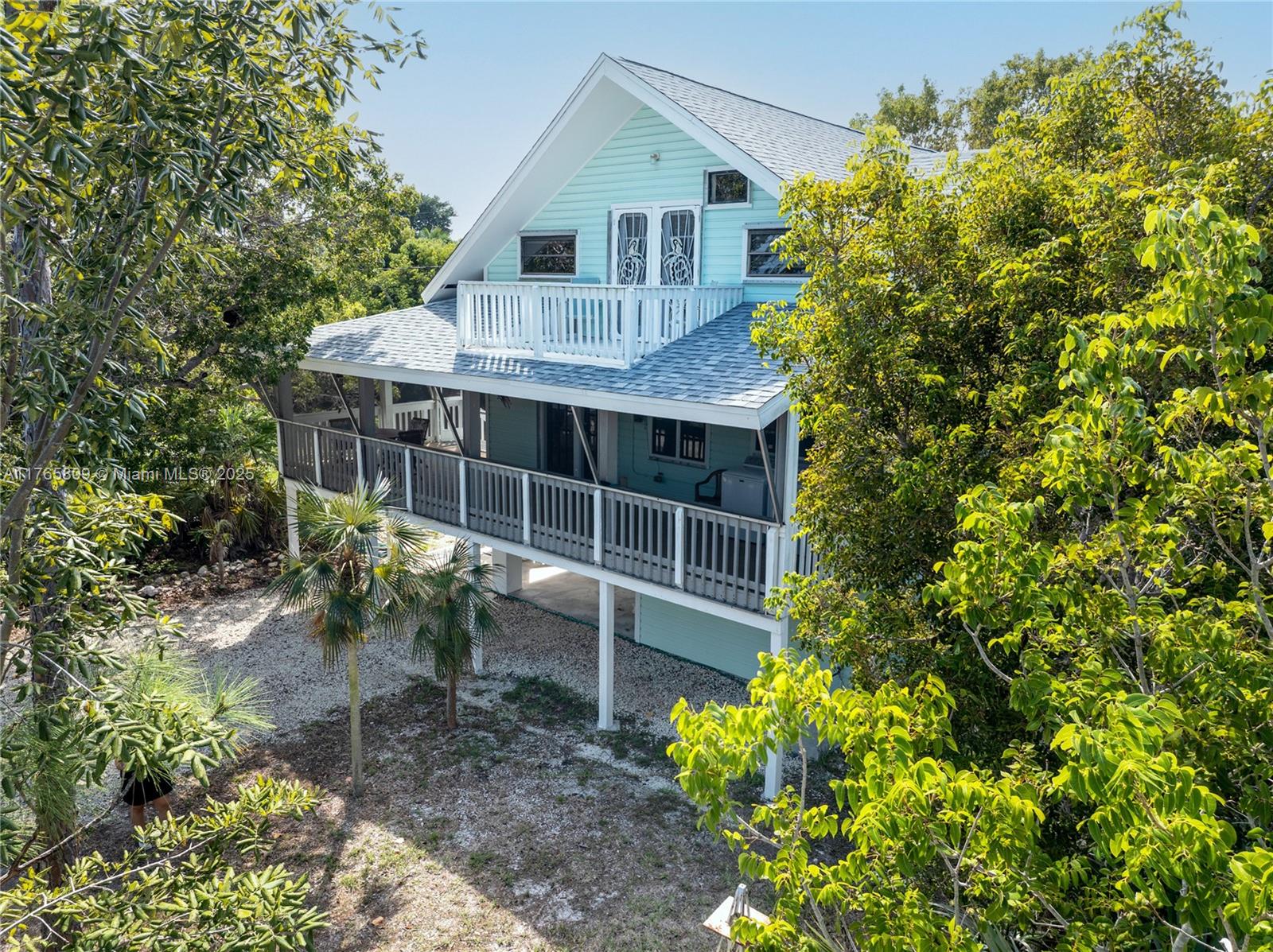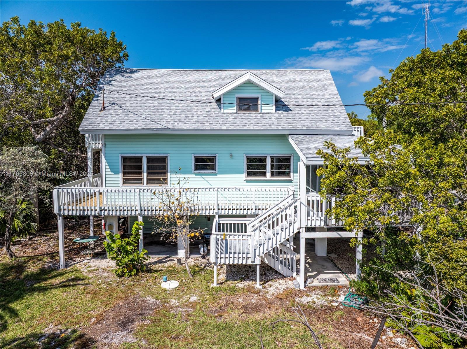 LIVE THE KEYS LIFE SURROUNDED BY NATURE with the conveniences and amenities of Big Pine Key within easy reach. This charming, custom-built home is nestled in the trees on a 14,000 sq. ft. lot that has plenty of space for parking a boat trailer and/or RV. It offers wonderful porches that are great for bird watching from both levels. The abundant windows and French doors allow lots of light to filter inside. A focal point is the soaring cathedral ceiling in the living room and the primary suite / loft walkways of the upper level. The kitchen features custom mahogany and African mahogany counters, as well as a stunning wood ceiling. New roof in 2018; recent central AC. Tented by Hammerhead Termite Control May 2025 and under warranty.