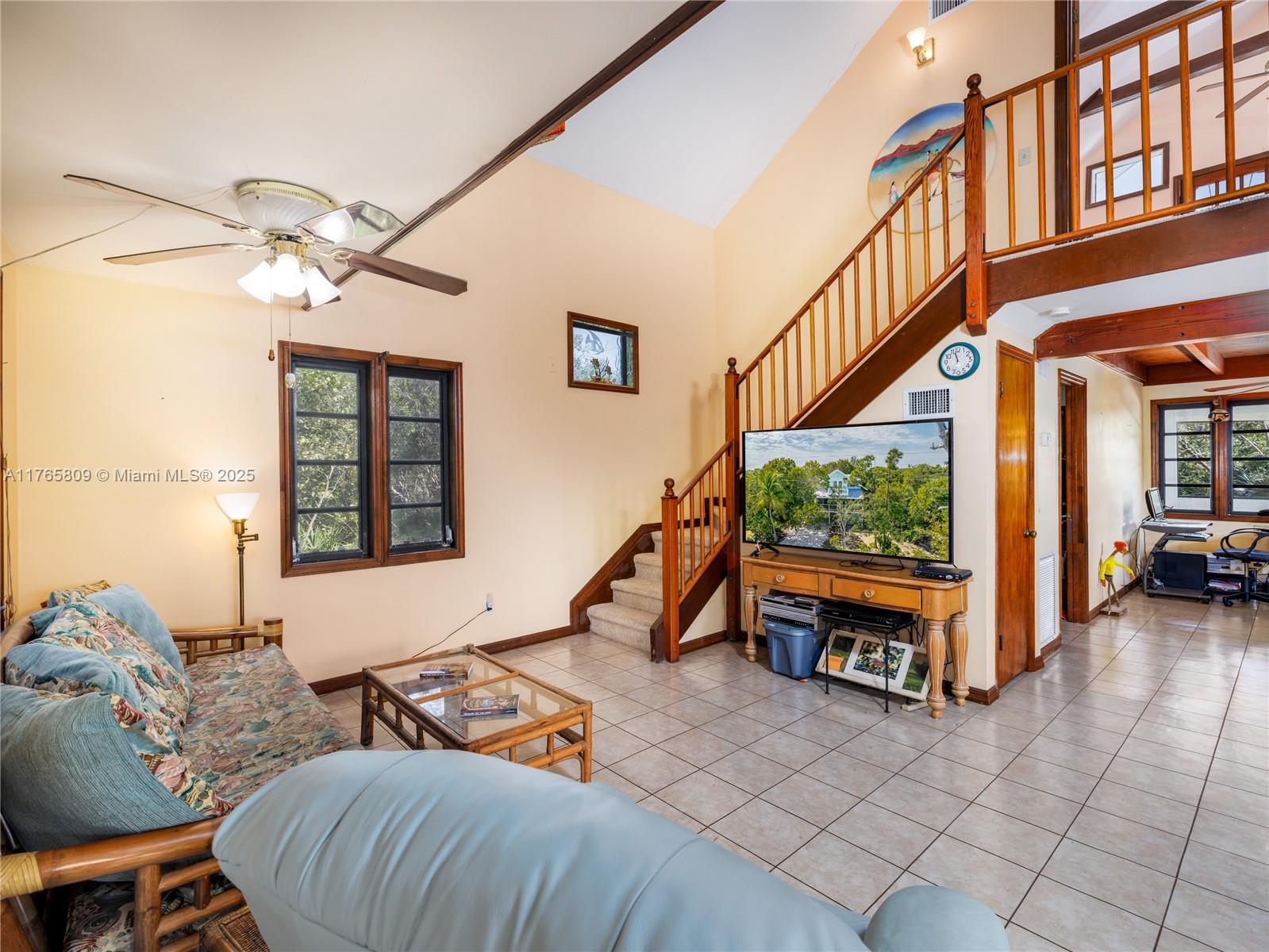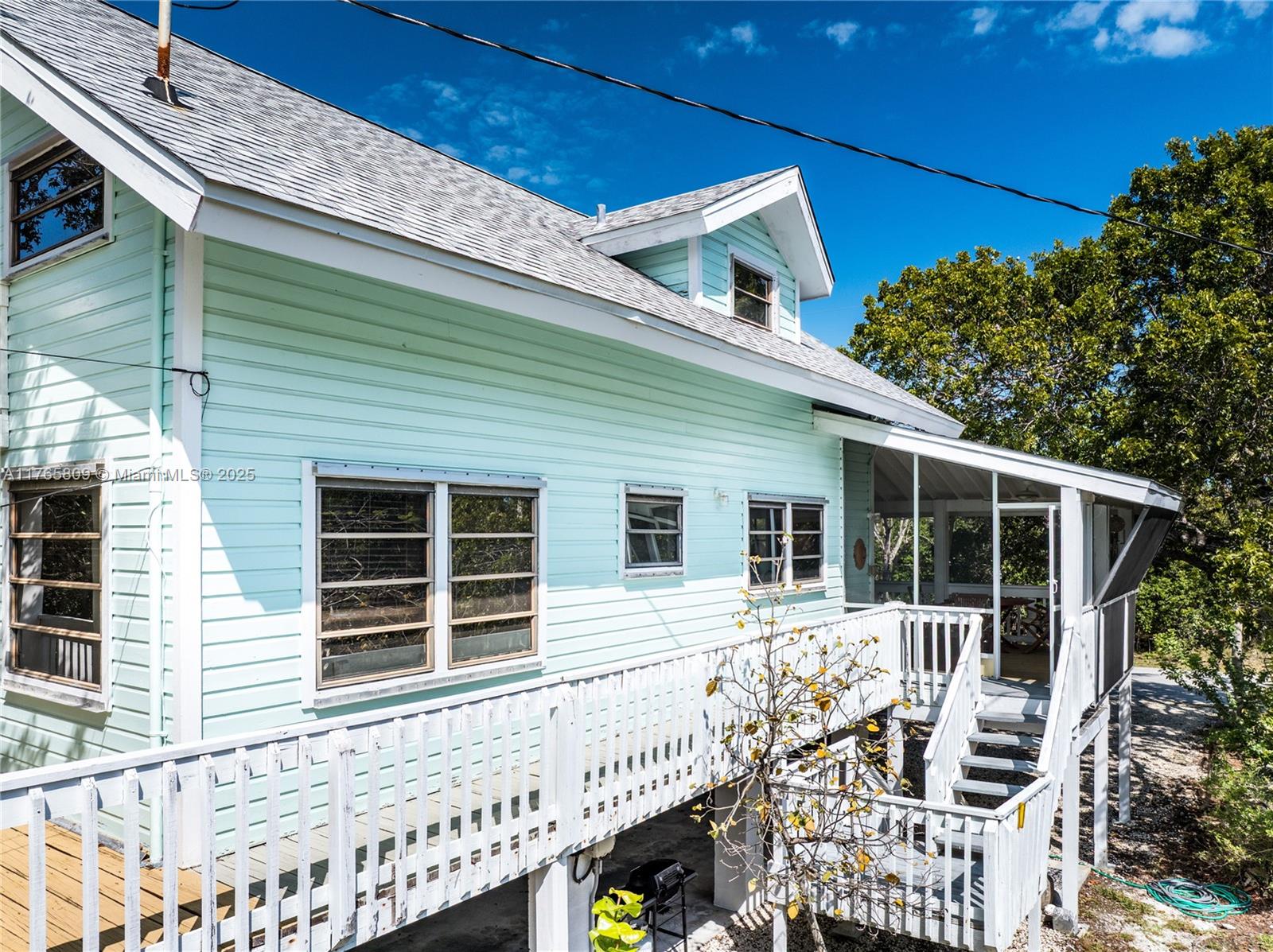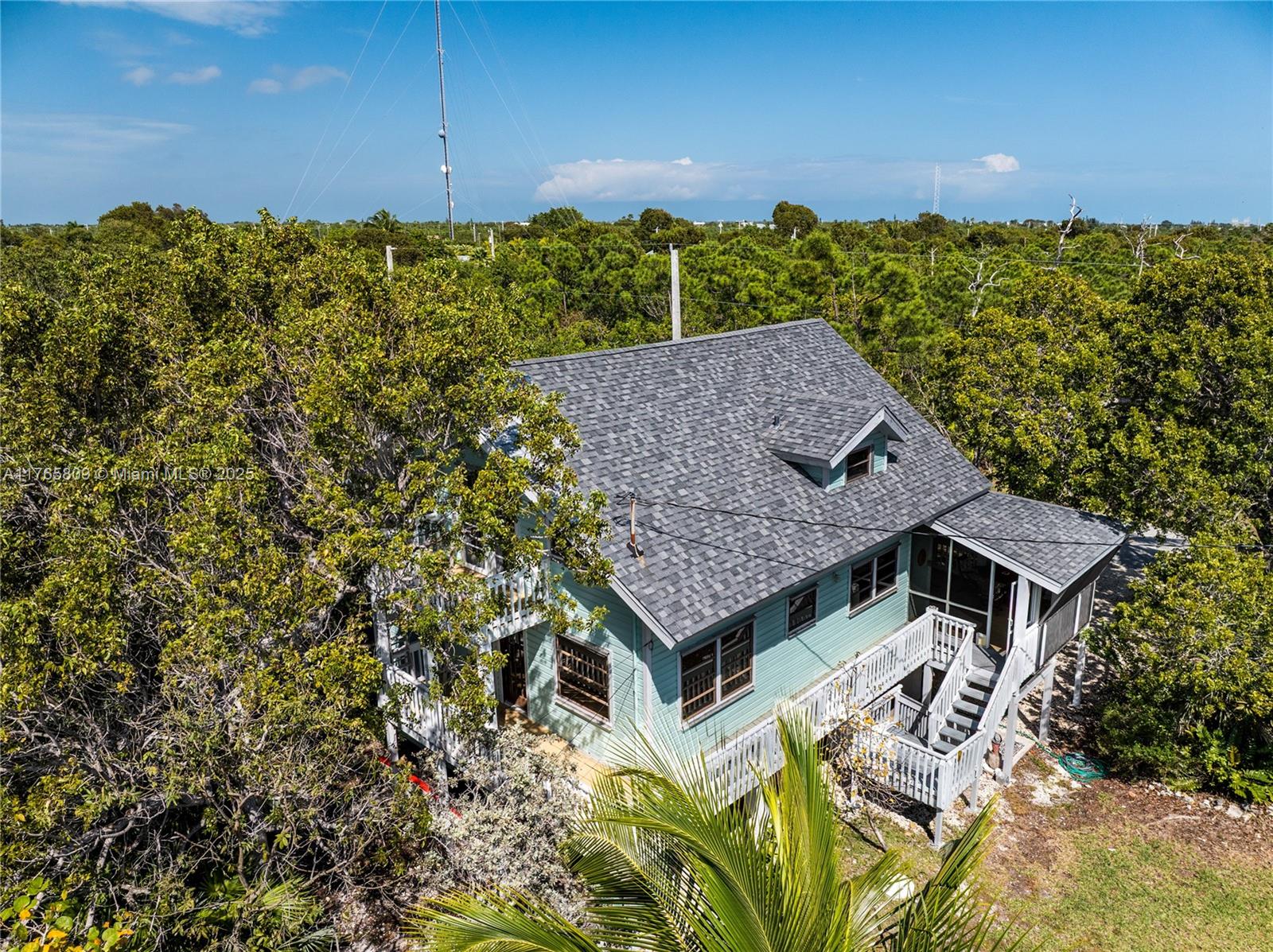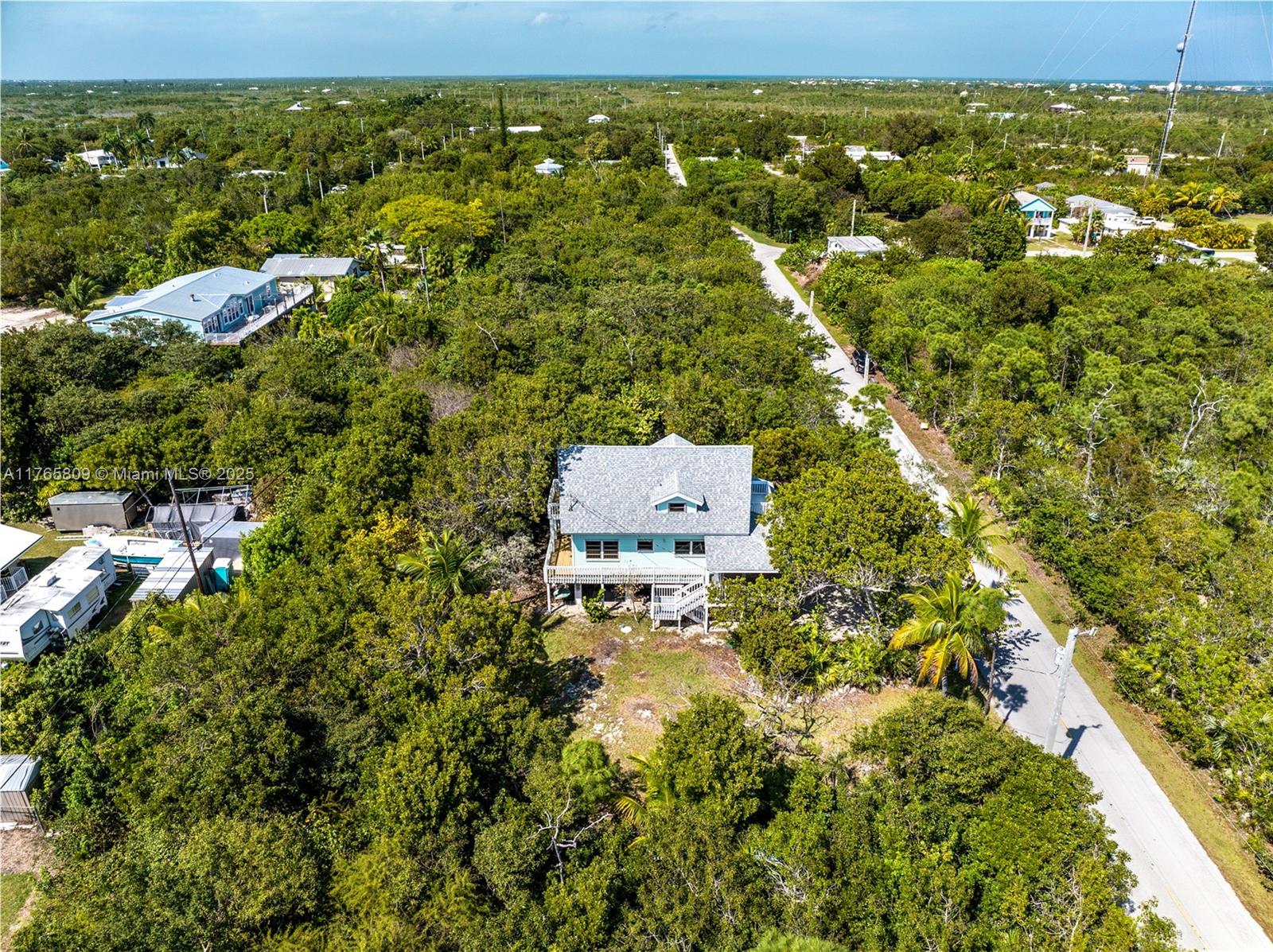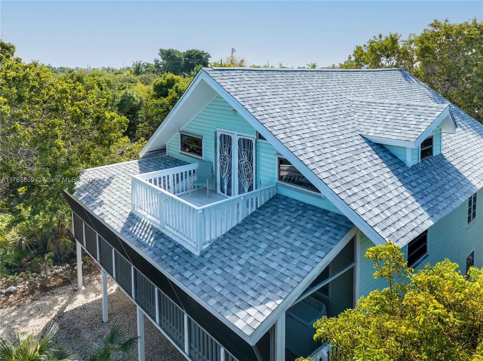 LIVE THE KEYS LIFE SURROUNDED BY NATURE with the conveniences and amenities of Big Pine Key within easy reach. This charming, custom-built home is nestled in the trees on a 14,000 sq. ft. lot that has plenty of space for parking a boat trailer and/or RV. It offers wonderful porches that are great for bird watching from both levels. The abundant windows and French doors allow lots of light to filter inside. A focal point is the soaring cathedral ceiling in the living room and the primary suite / loft walkways of the upper level. The kitchen features custom mahogany and African mahogany counters, as well as a stunning wood ceiling. New roof in 2018; recent central AC. Tented by Hammerhead Termite Control May 2025 and under warranty.