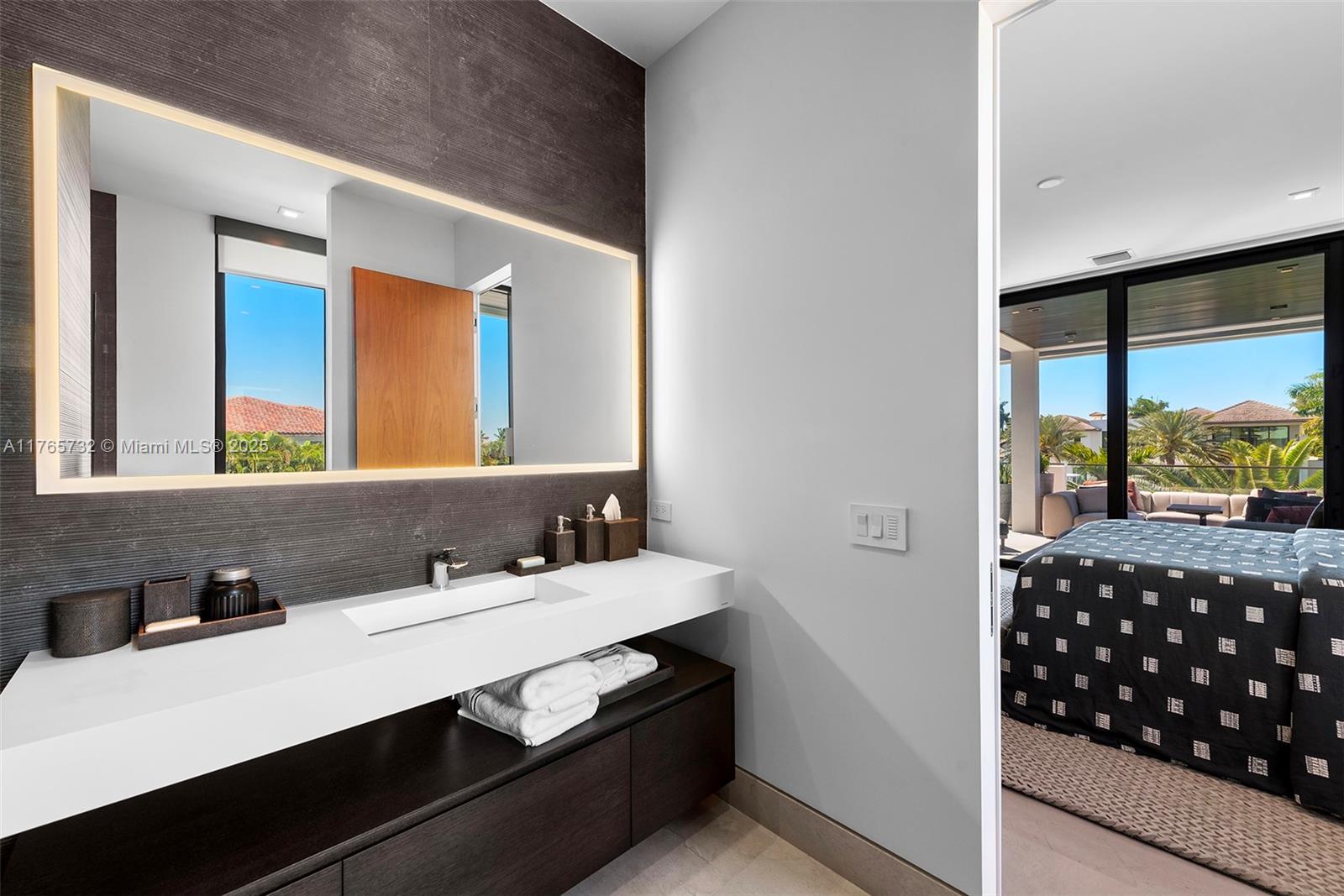 Welcome to 22 Isla Bahia, an unrivaled haven in Harbor Beach, Ft. Lauderdale, the yacht capital of the world offering 100 feet of prime waterfrontage. Designed for both elegance and comfort, the open floor plan features soaring ceilings, abundant natural light, and luxurious finishes, including marble floors, custom doors, and top-tier Wolf appliances. All bedrooms are ensuites, with the first-floor primary suite offering a private retreat. An elevator, climate-controlled wine room, entertainment room, and dedicated office enhance the home’s sophistication. Step outside to a serene outdoor oasis with a saltwater pool, hot tub, and expansive entertaining spaces. With a three-car garage, two laundry rooms, 24/7 security, and private beach access, this estate defines waterfront living.
