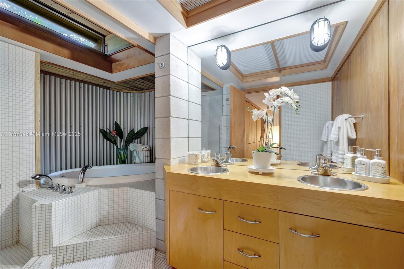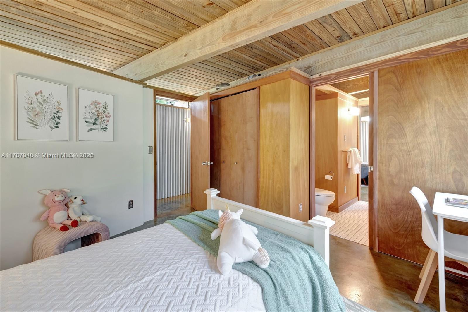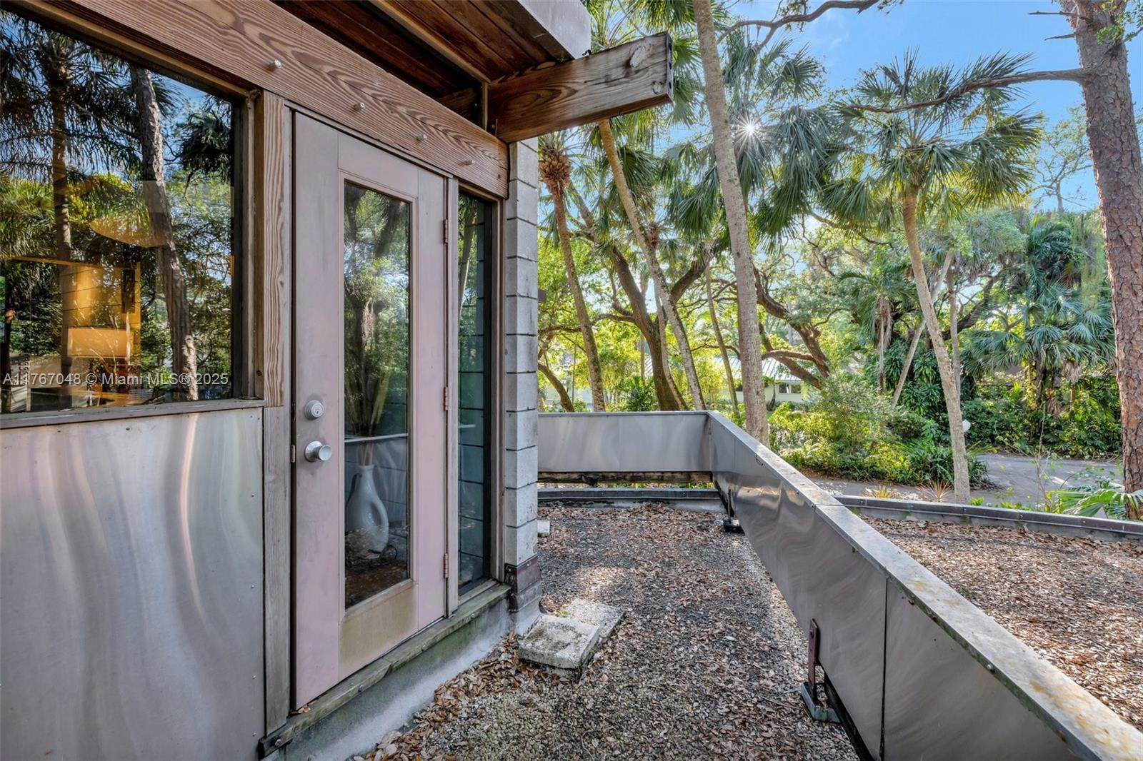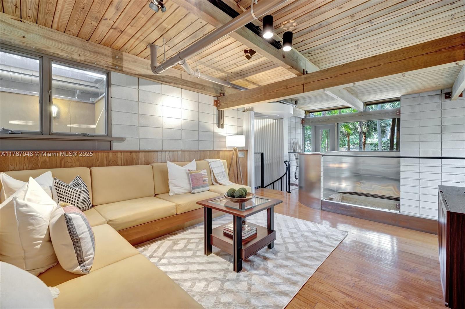 "The Fox Den," an architectural masterpiece by Scott DiStefano, blends contemporary design with organic materials in the Frank Lloyd Wright tradition. This 4-bedroom, 3.5-bath home sits on a 10,500 sq ft wooded lot in Riverland Woods. Features include exposed concrete, timber framing, copper fascia, and stainless steel elements throughout. The versatile floor plan offers a loft space and attached studio/office with separate entrance. Custom built-ins and strategic windows frame views of the landscaped grounds. Distinguished by galvalum cladding and corrugated metal, the home boasts concrete floors and appliances. Located minutes from downtown Fort Lauderdale, this internationally recognized residence represents organic contemporary architecture at its finest.