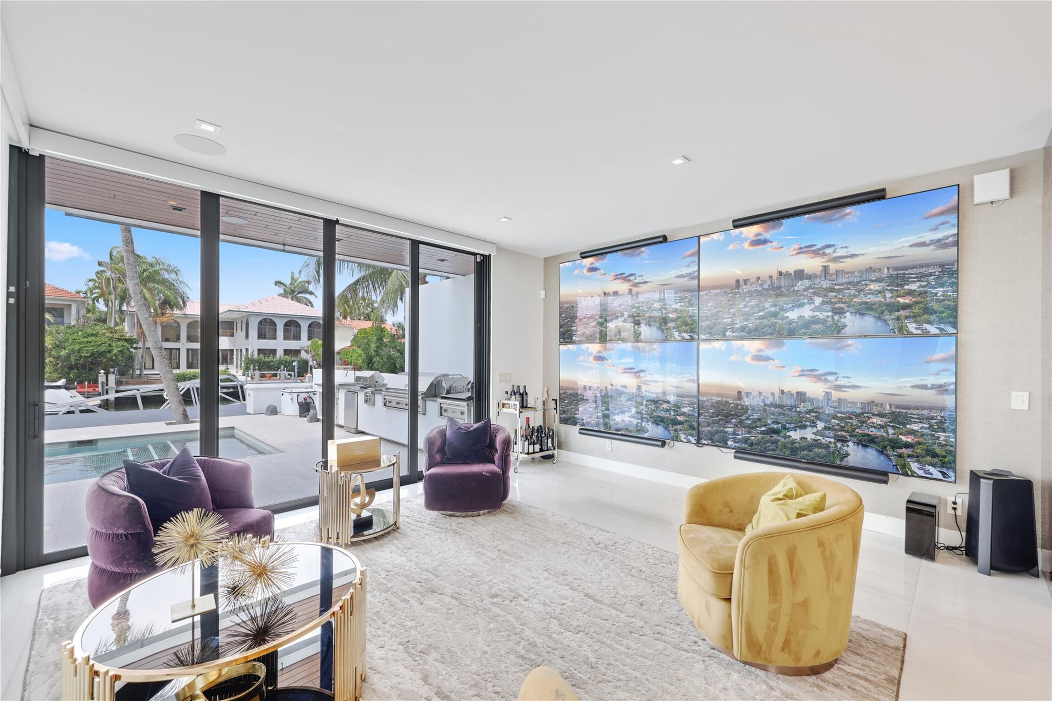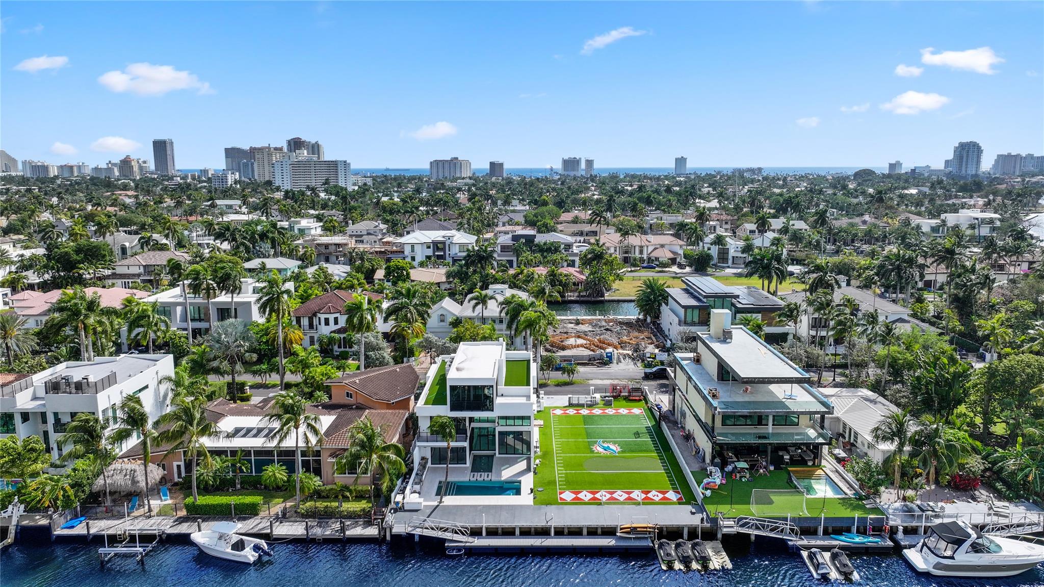 This modern estate on the Las Olas Isles offers 100’ of waterfront on a wide canal with ocean access & no fixed bridges. Spanning 2 lots, the property features a one-of-a-kind field for football, soccer, putting, etc. The home showcases floor-to-ceiling glass with stunning views & includes an elevator for easy access to all levels. The 3rd floor features a wet bar, enclosed gym, open terrace & spectacular views of downtown Fort Lauderdale. The open-concept layout includes a gourmet kitchen with an oversized island, perfect for entertaining & seamless indoor-outdoor living. Fully integrated with Control4 smart home technology, the home also features a resort-style pool, summer kitchen & dock. Plenty of parking with a 2-car garage & 2 driveways. Prime location near shops, dining & beach.
