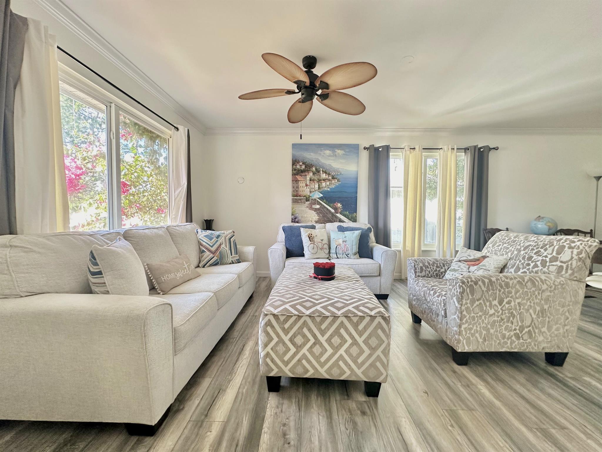 Escape to your private oasis on 1.32 acres at the end of a peaceful road! NO HOA! This stunning 3-bedroom, 2-bath home also features a separate 1-bedroom, 1-bath in-law suite/efficiency in a converted garage--perfect for guests or rental income. Impact windows throughout provide security and energy efficiency, while the charming country-style front porch welcomes you home. Step out back to a massive screened-in porch with a wood deck, ideal for entertaining or relaxing while overlooking the fully fenced backyard.Inside, the home boasts a beautifully updated eat-in kitchen with newer stainless steel appliances, a spacious formal living room, and a split-bedroom floor plan for added privacy.