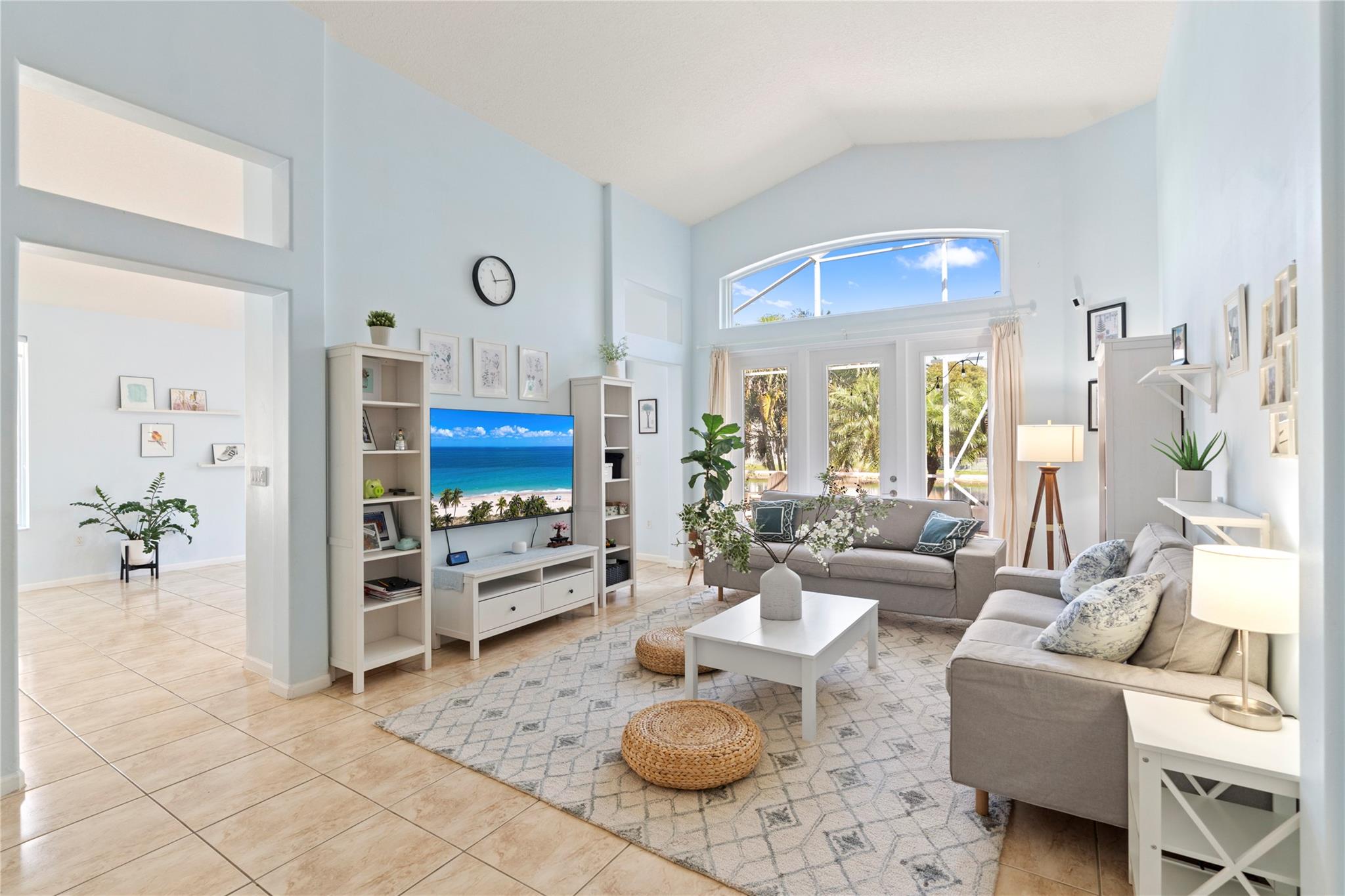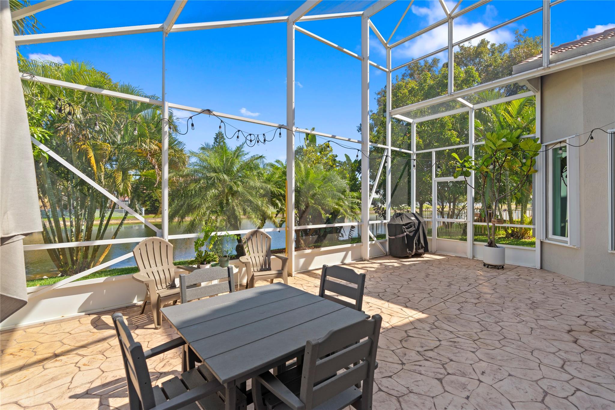 Impeccable and bright one story house with upgraded kitchen, quartz countertops, new bathroom, impact windows and doors, new washer and dryer, wood and tile floors throughout the property. Enjoy the screened patio surrounded with mango ,avocado and more fruit trees with a peaceful lake view. Association fee includes internet, cable, alarm and the facilities of a 5 star clubhouse with fitness center, tennis , basketball, volleyball courts, heated pool.