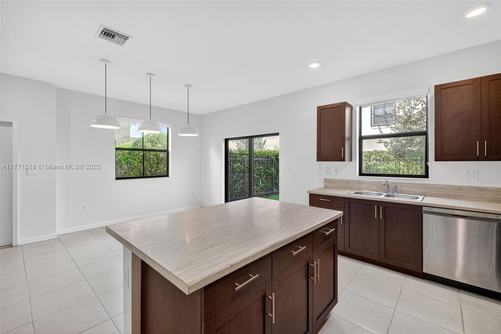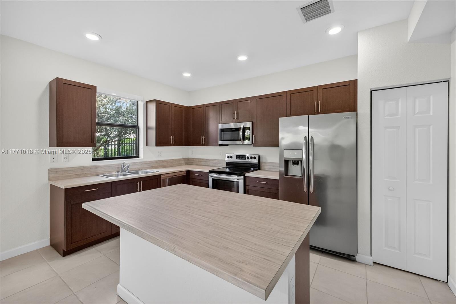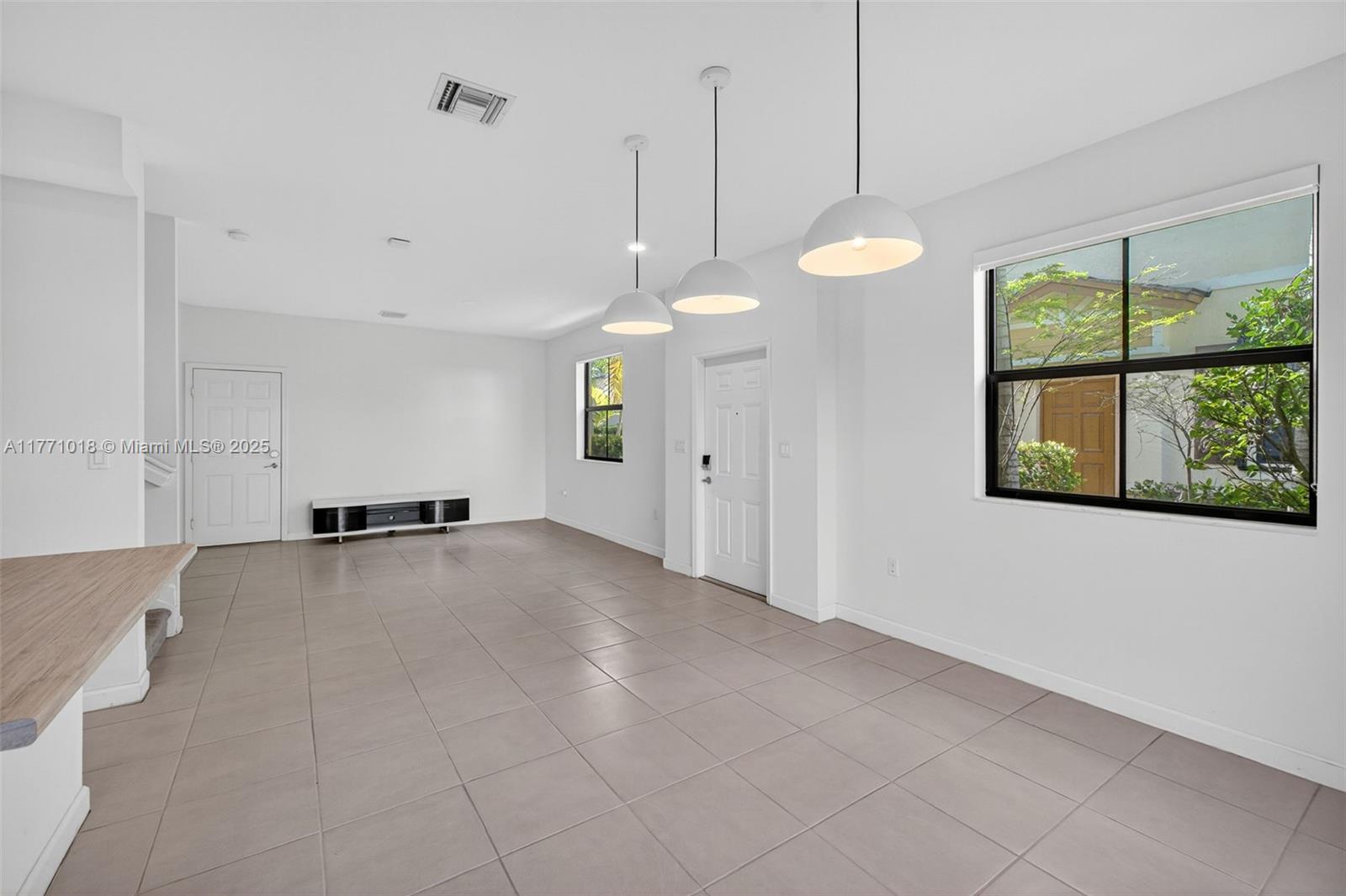 Just under 1900 sq ft of living space in this open concept 3/2.5 + den/office/or 4th bedroom. High ceilings and tile flooring throughout the first floor. Expansive kitchen featuring large center island, wood cabinets, and s/s appliances overlooking the spacious family room. Large primary suite with big walk-in closet and updated primary bath featuring dual sinks and walk-in shower. Big secondary bedrooms. Enjoy BBQ or morning coffee on your fenced in backyard patio. Full Hurricane protection, Low HOA, and minutes to 595 and Turnpike.