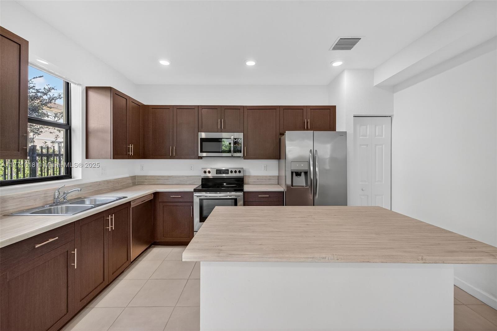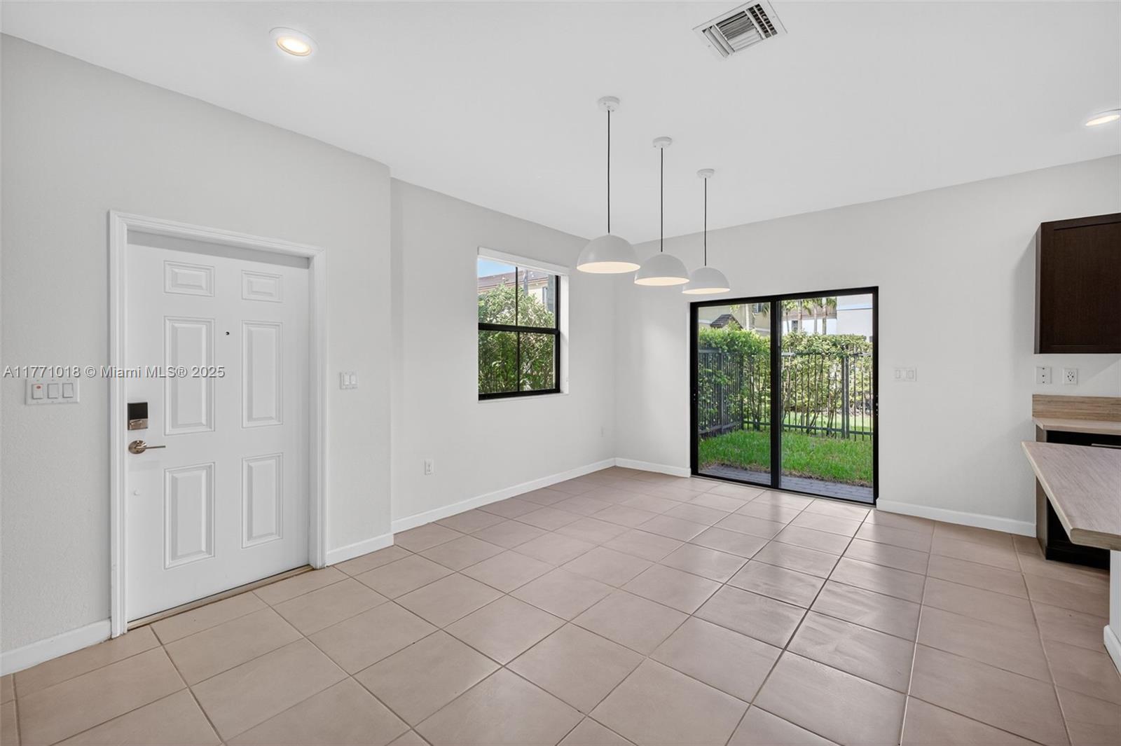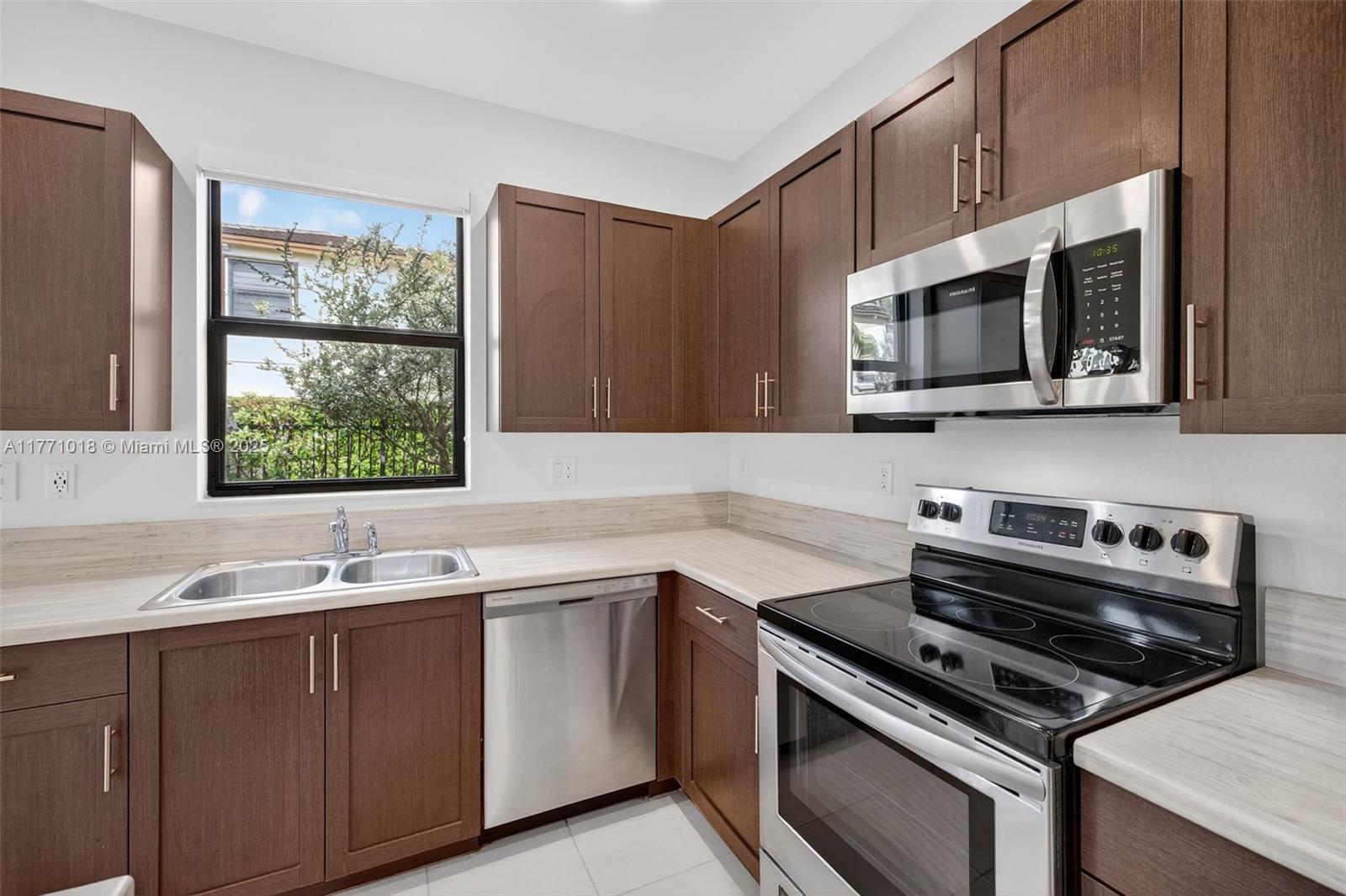 Just under 1900 sq ft of living space in this open concept 3/2.5 + den/office/or 4th bedroom. High ceilings and tile flooring throughout the first floor. Expansive kitchen featuring large center island, wood cabinets, and s/s appliances overlooking the spacious family room. Large primary suite with big walk-in closet and updated primary bath featuring dual sinks and walk-in shower. Big secondary bedrooms. Enjoy BBQ or morning coffee on your fenced in backyard patio. Full Hurricane protection, Low HOA, and minutes to 595 and Turnpike.