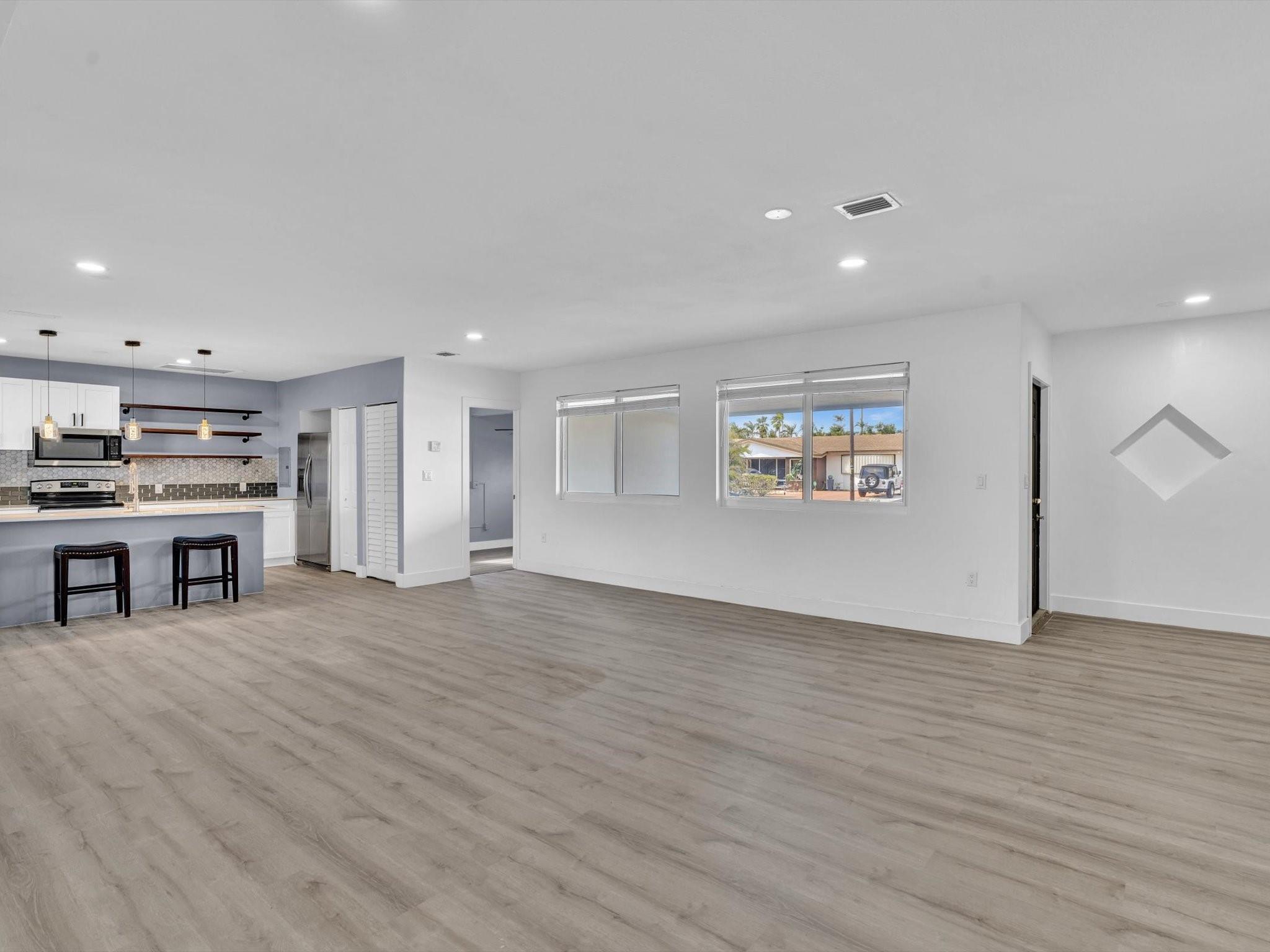 This charming single family home located in the beautiful city of Miramar features 4 bedrooms, 2 bathrooms. The home has new vinyl flooring throughout, a beautiful eat in kitchen with quartz countertops, stainless steel appliances, open concept, with all the luxurious finishes. The massive Primary suite is equipped with custom His and Hers closets, and bathroom with His and Hers sinks. Step outside to a covered patio made for entertaining. Conveniently located minutes from shopping, parks, restaurants, major highways, and HardRock stadium. This home is a true gem.